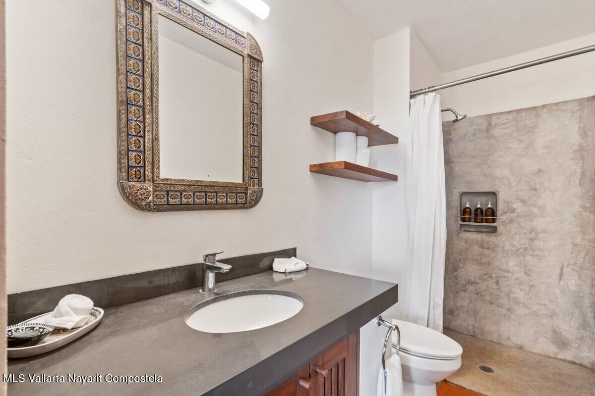 Casa Achara is a turnkey investment in the heart of Sayulita with secured bookings and year-round demand. The 2BR penthouse offers a private rooftop pool, palapa lounge, and sweeping views--one of Sayulita's most desired rentals or an ideal owner residence. The second-floor 1BR features a king bedroom, full kitchen, and garden patio with strong repeat guests. The ground floor hosts a fully renovated commercial bar with a secured 5-year lease. Prime location, proven occupancy, and multiple income streams make this an exceptional opportunity.