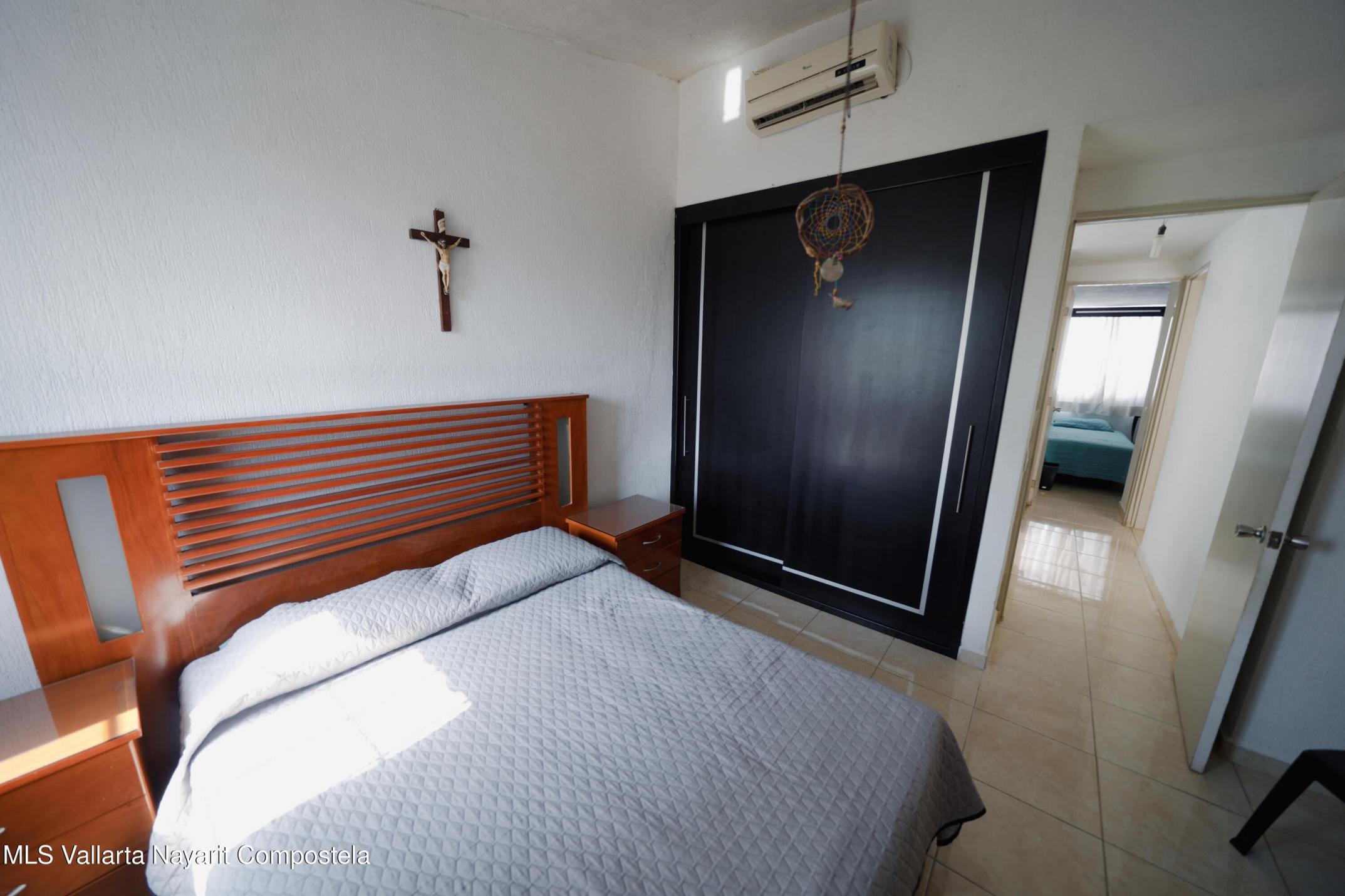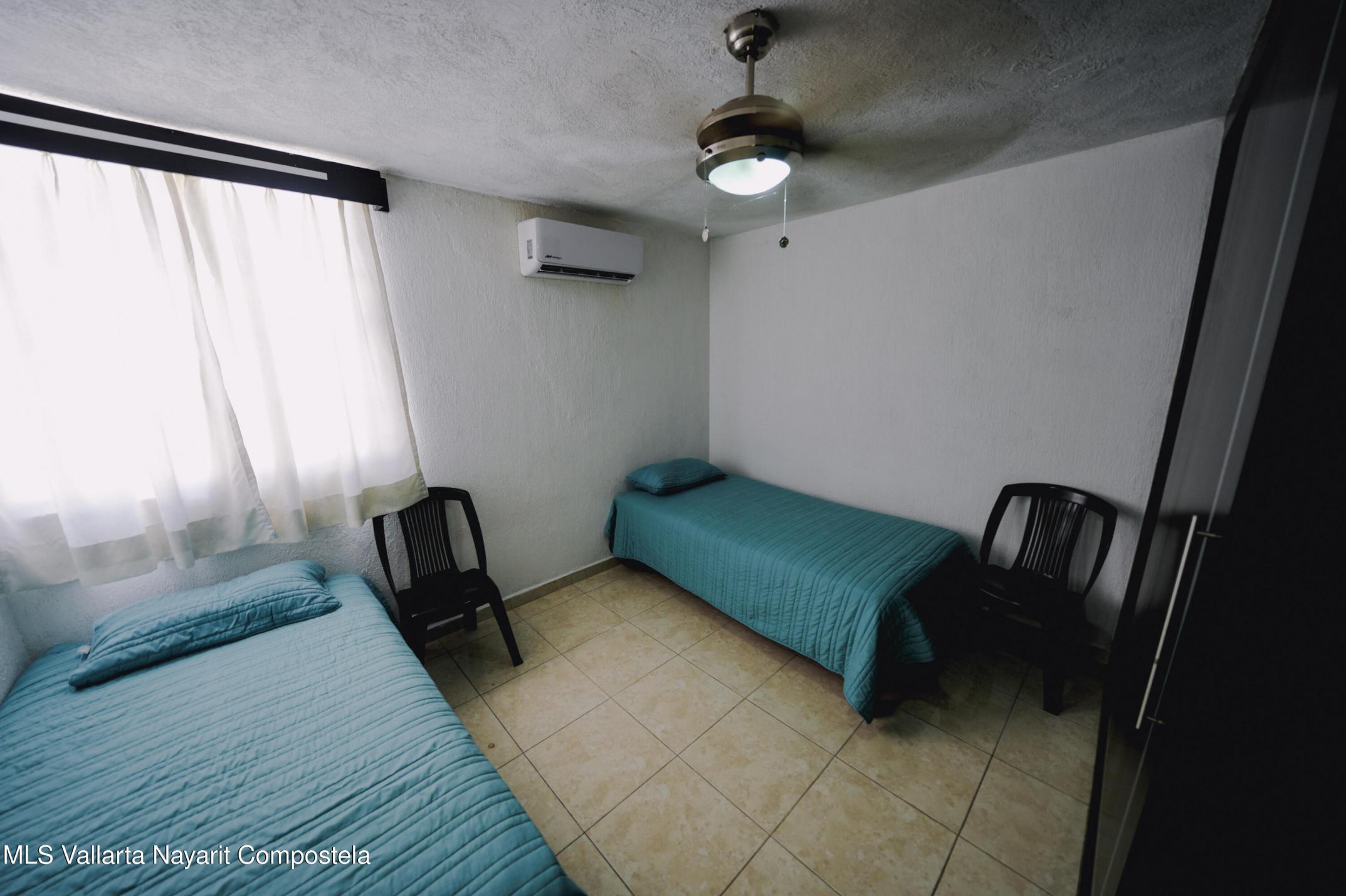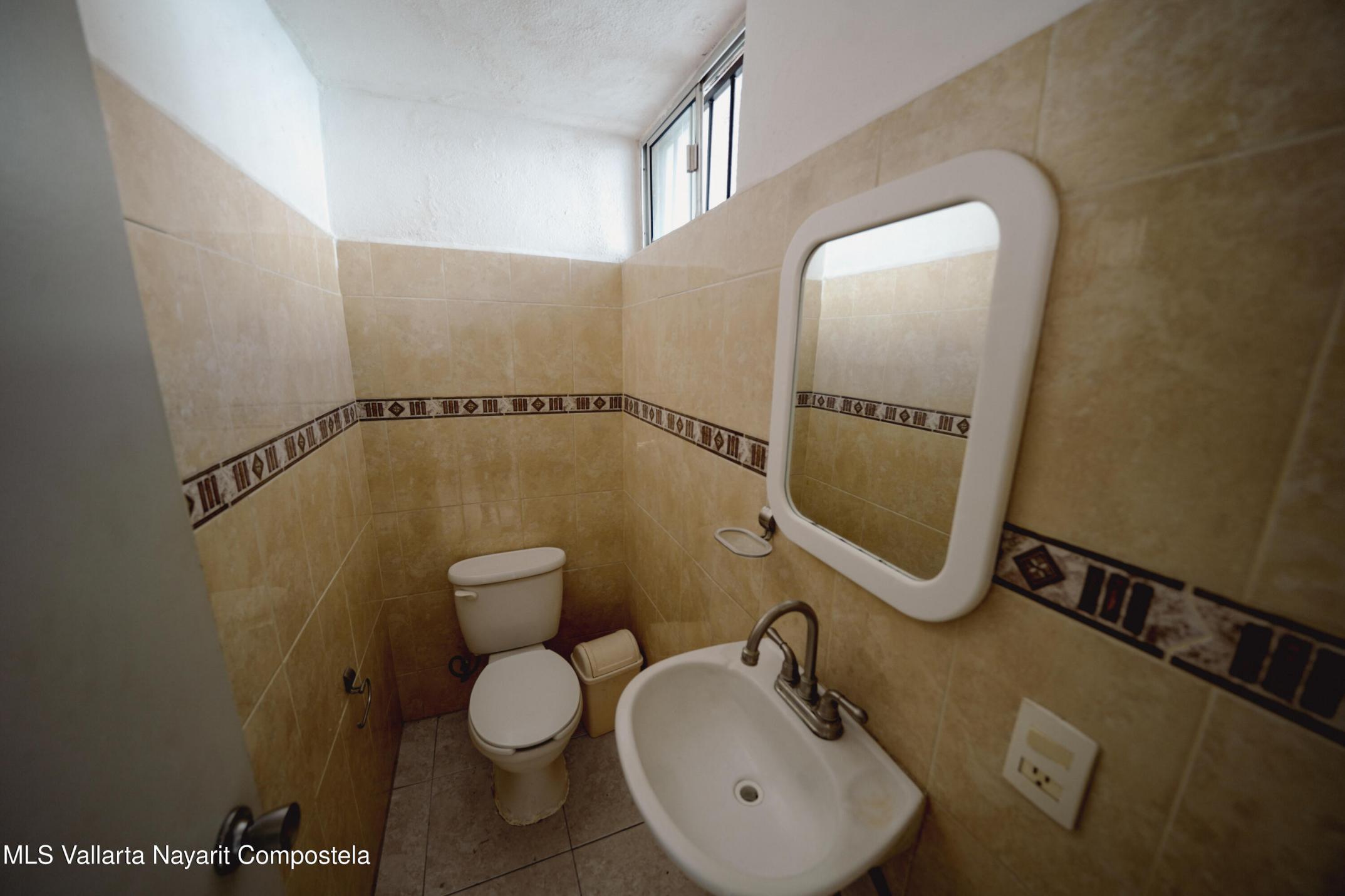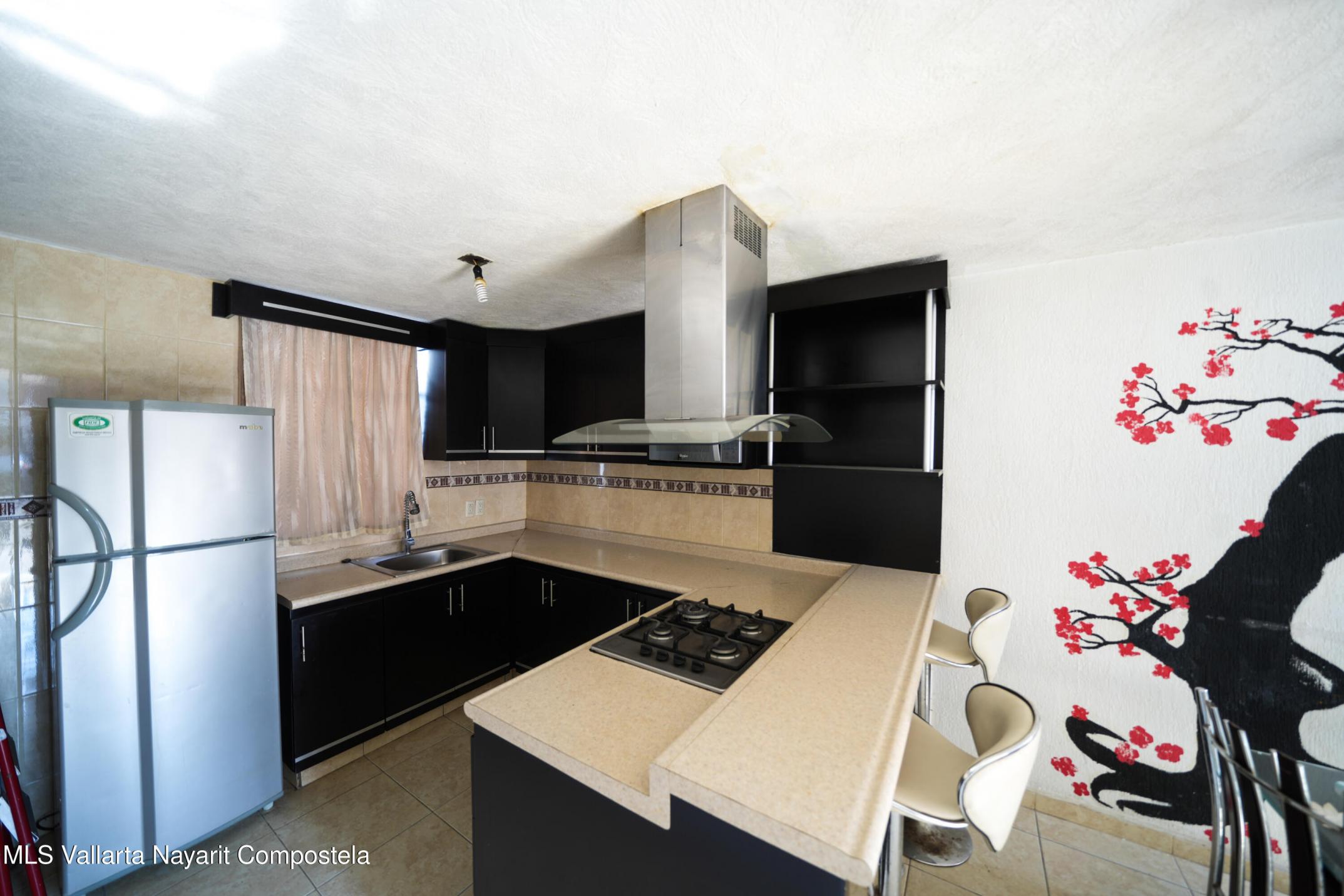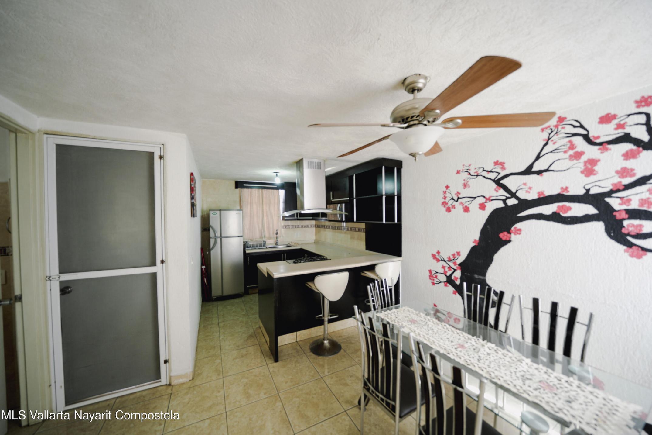 This house is located just 20 meters from the main avenue, Tlaxcala. It is a 5-minute drive to the Lago Real shopping center and 20 minutes to the nearest beach in Nuevo Vallarta. It is situated in one of the most accessible neighborhoods in Bahia de Banderas, featuring alternate routes with three different entry and exit points. The house has two levels, featuring 3 bedrooms and 1.5 bathrooms. The ground floor includes a living-dining area and a spacious backyard. The living room is very spacious, offering enough room to build a fourth bedroom in the future if desired. The kitchen is fully equipped, and there is one parking space. It is worth noting that the house is sold fully furnished. It also comes equipped with a water heater, 3 air conditioning units, ceiling fans, solar panels