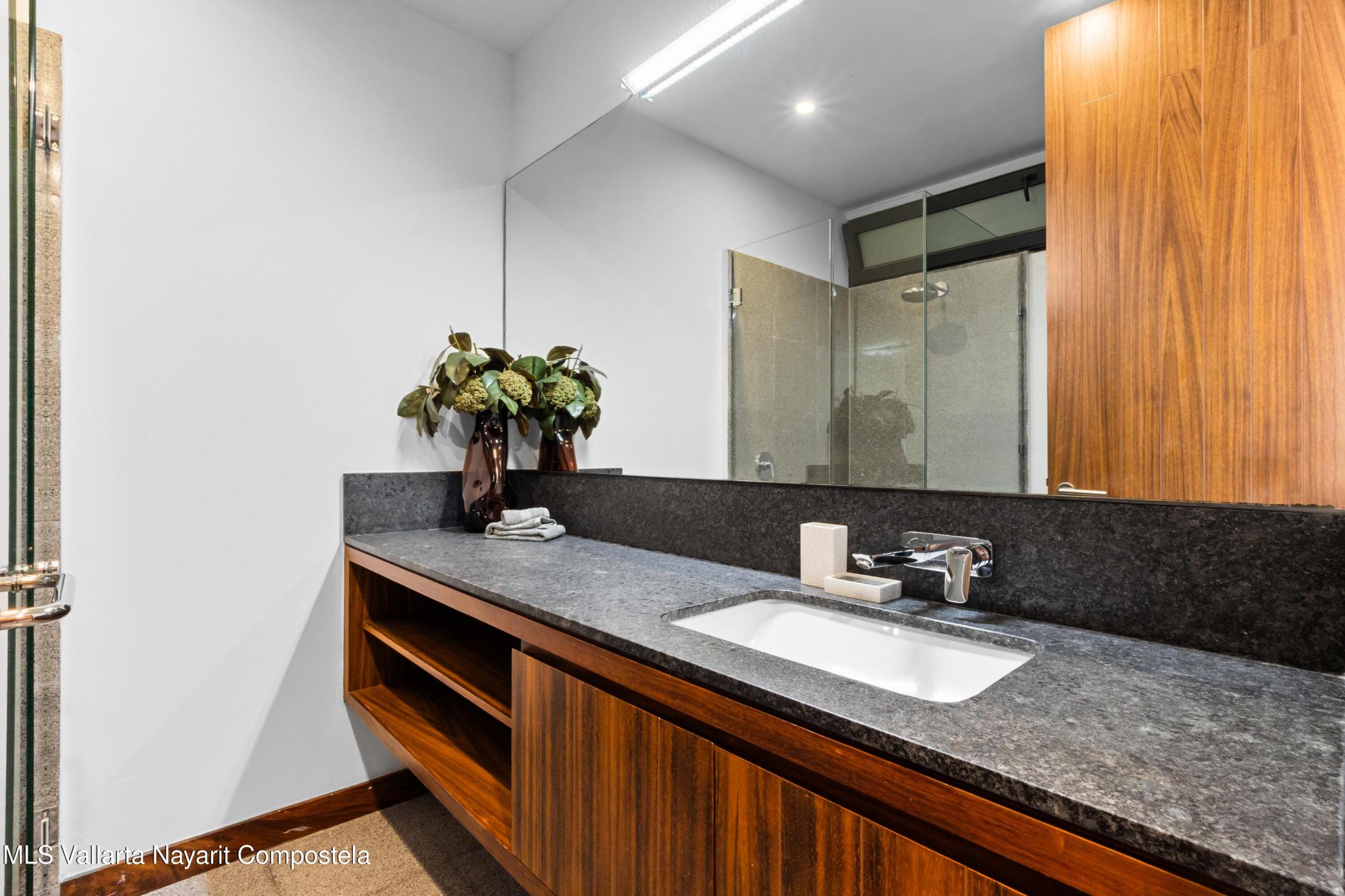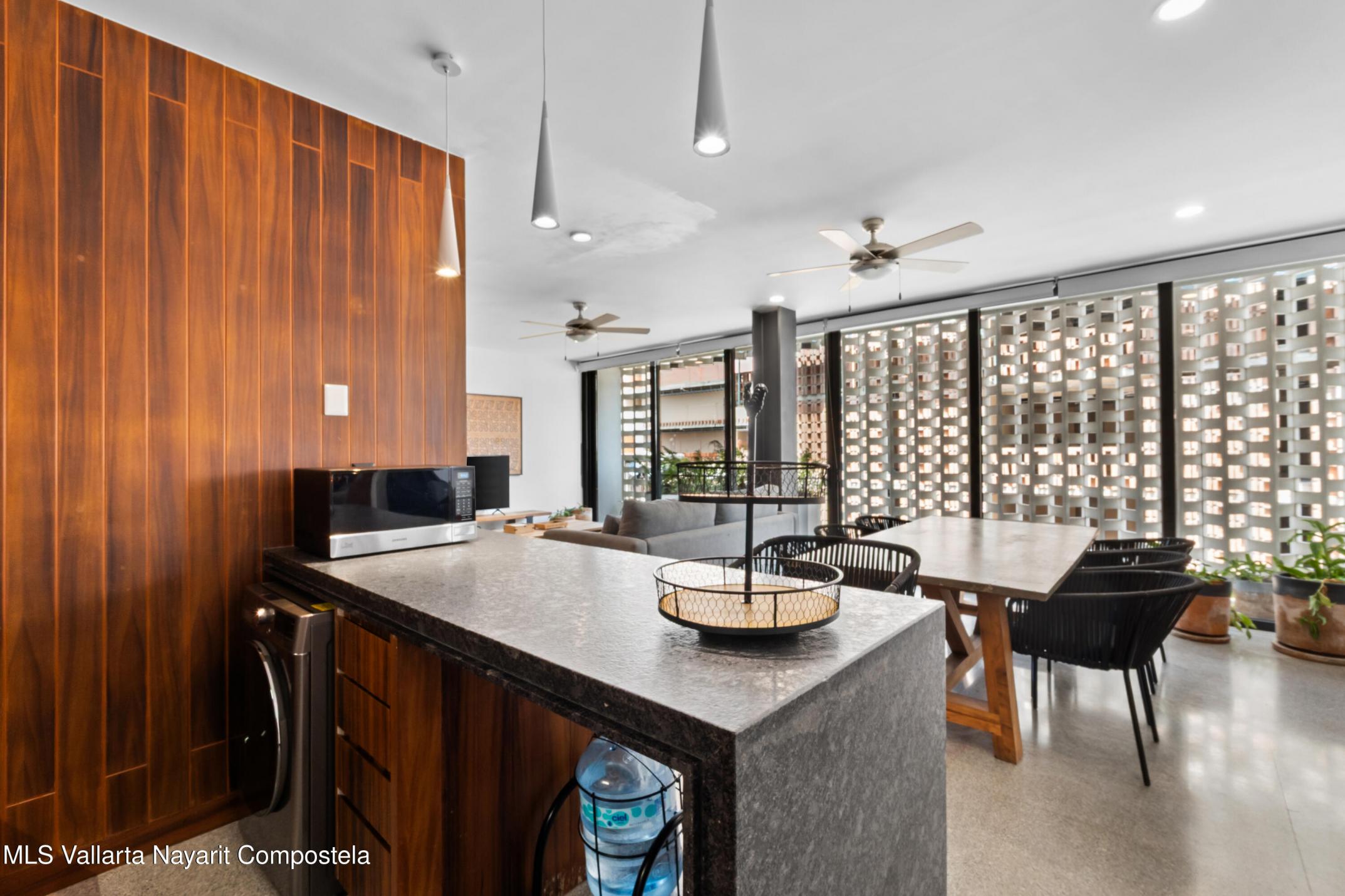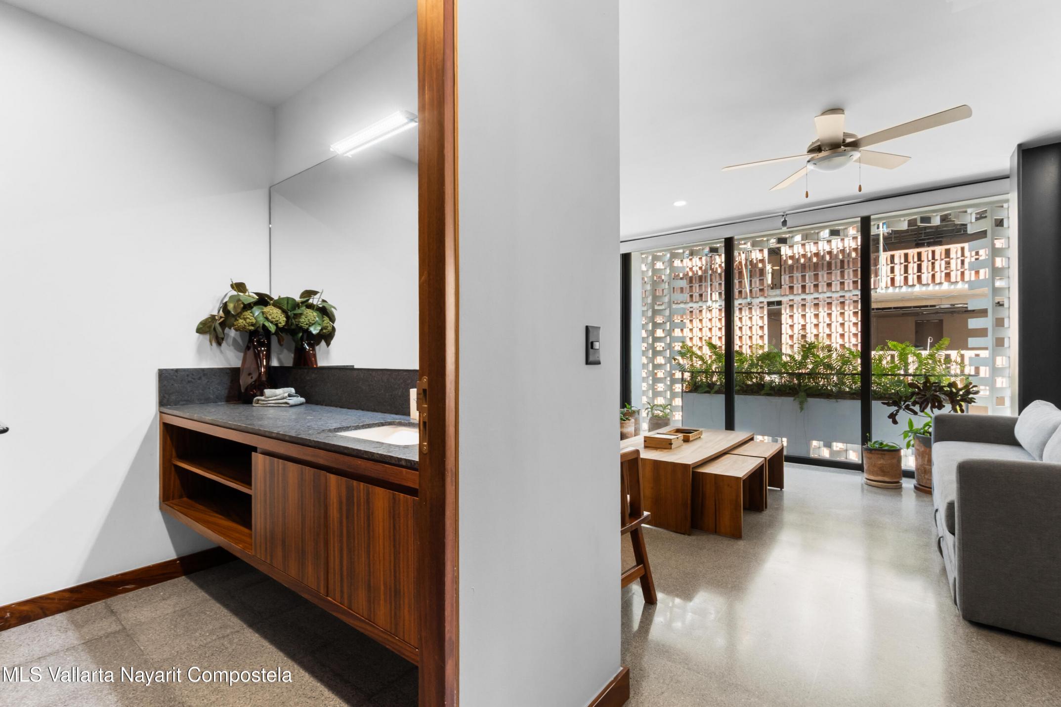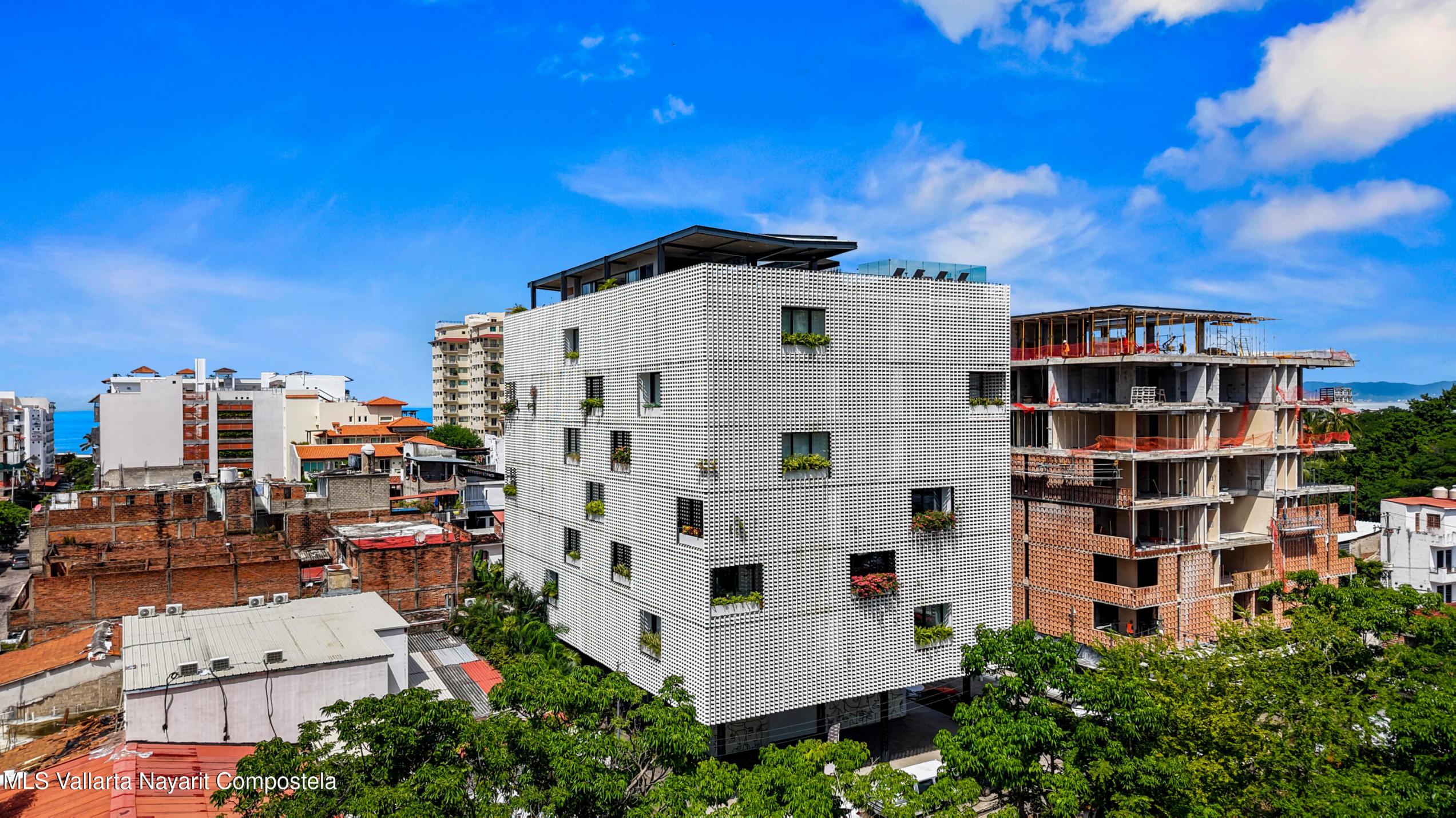 Ubicado a tres calles de la playa Los Muertos y una del rio Cuale, RINCON DE ALMAS esta en el corazon de la vibrante Zona Romantica de Puerto Vallarta. El edificio fue disenado por dos de los arquitectos mas experimentados y creativos de Mexico: Derek Dellekamp y Frida Escobedo. Su unico diseno de celosia perimetral, realizado con analisis bioclimatico, permite la entrada de luz natural y el flujo de aire fresco del rio, al tiempo que mantiene la privacidad de todas las unidades. Acabados de concreto, metal y ceramica en todo el edificio. Esta unidad es una pieza de arte unica donde tus sentidos cobran vida. Increibles vistas de 360 grados desde su terraza al aire libre con piscina semiolimpica, gimnasio, area de descanso y BBQ. Estacionamiento y bodega subterraneos.