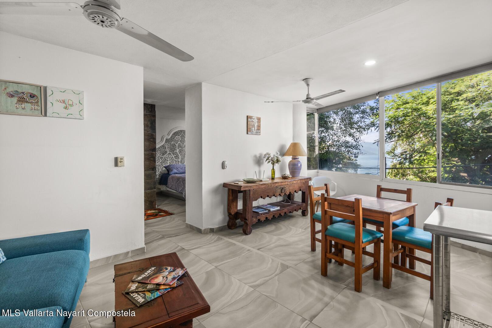 Condominio en Conchas Chinas remodelado, llave en mano y completamente amueblado con Electrodomesticos de cocina de acero inoxidable, madera tropical de Parota en todas partes y ventiladores en cada habitacion. El dormitorio es una acogedora suite con una cama king-size y un bano con ducha y tina separada. El condominio esta inundado de luz natural, ofreciendo impresionantes vistas al mar y aire fresco con la brisa del oceano y la montana. Su ubicacion proporciona facil acceso a la playa y a la Zona Romantica.RemodeladoVista al MarAcceso a la playa y a ZR a poca distancia a pie.Se ofrece amueblado con electrodomesticoscama king size, estufa con horno a gas, ventiladores y unidad de ac en la recamara.