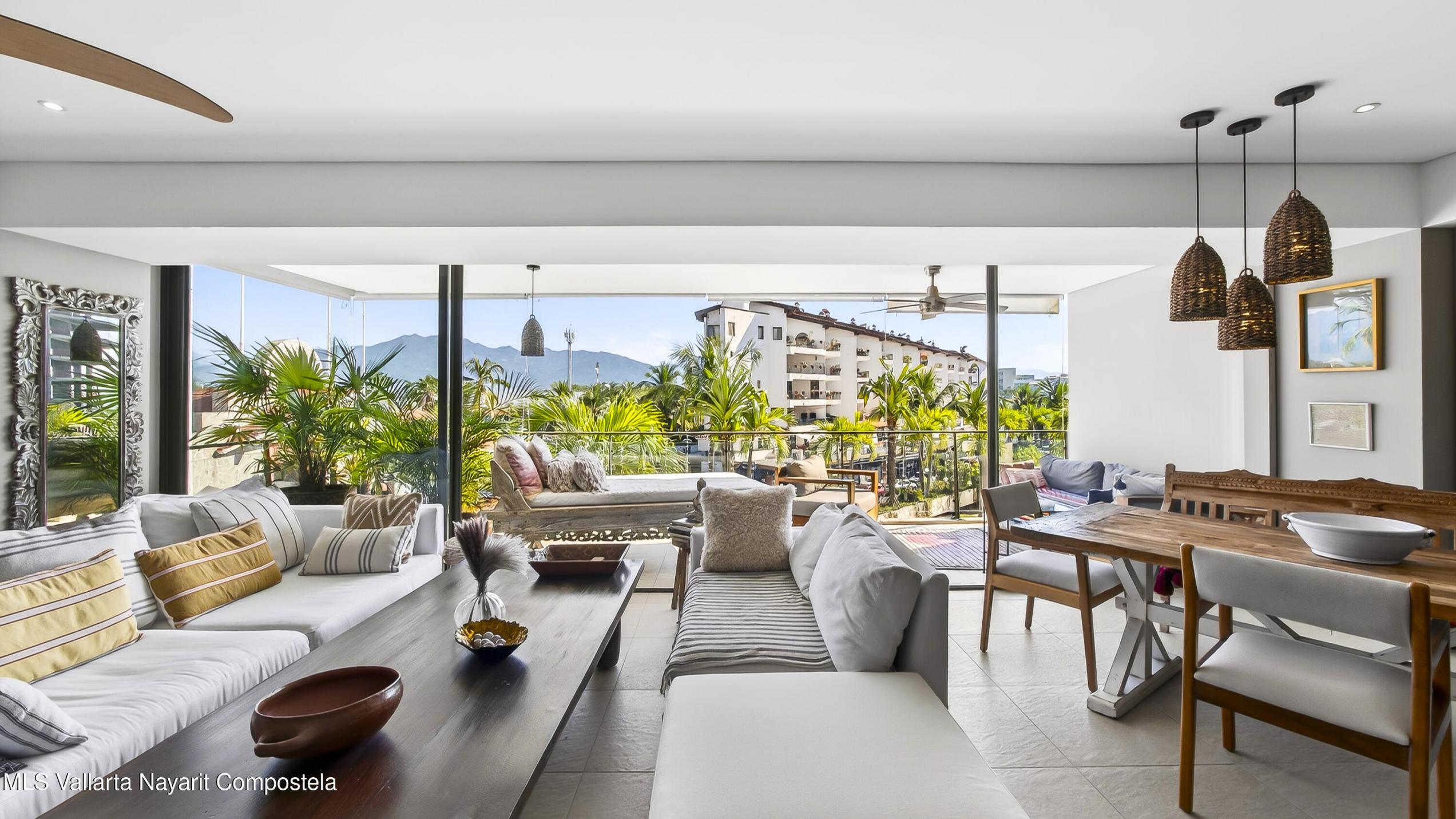 Experience the ultimate in tropical living at Nima Bay, Marina Vallarta's premier condos along side the renowned 350-slip marina. This beautifully furnished 2-bedroom, 2-bath condo blends contemporary design with Mexican Boho elegance. Enjoy seamless indoor-outdoor living w/ a spacious private terrace. Resort-style amenities include 24-hour security, two heated pools, a state-of-the-art fitness center, concierge service, & a chic poolside bar. Perfectly situated across from the Golf Course & steps from the marina's waterfront promenade lined with fabulous restaurants, boutiques, salons, and spas. An exceptional choice for full-time living, a seasonal escape, or a luxury investment opportunity!