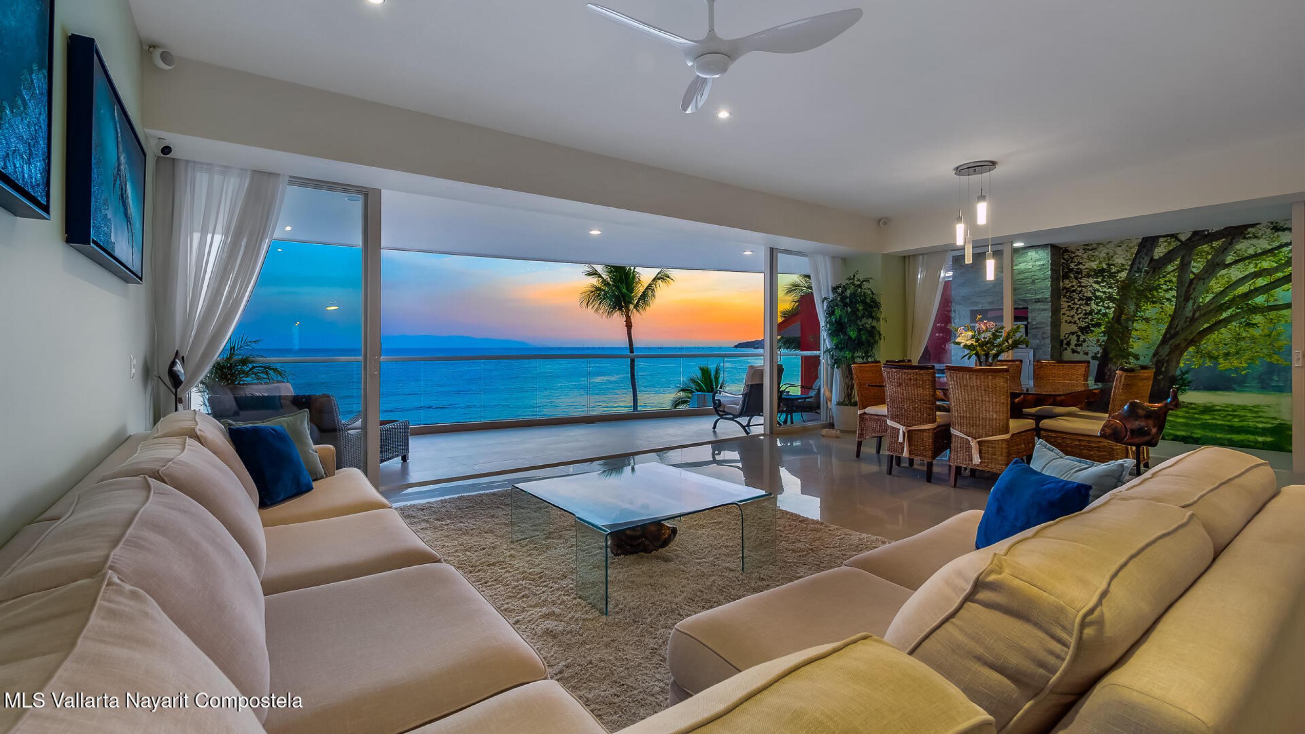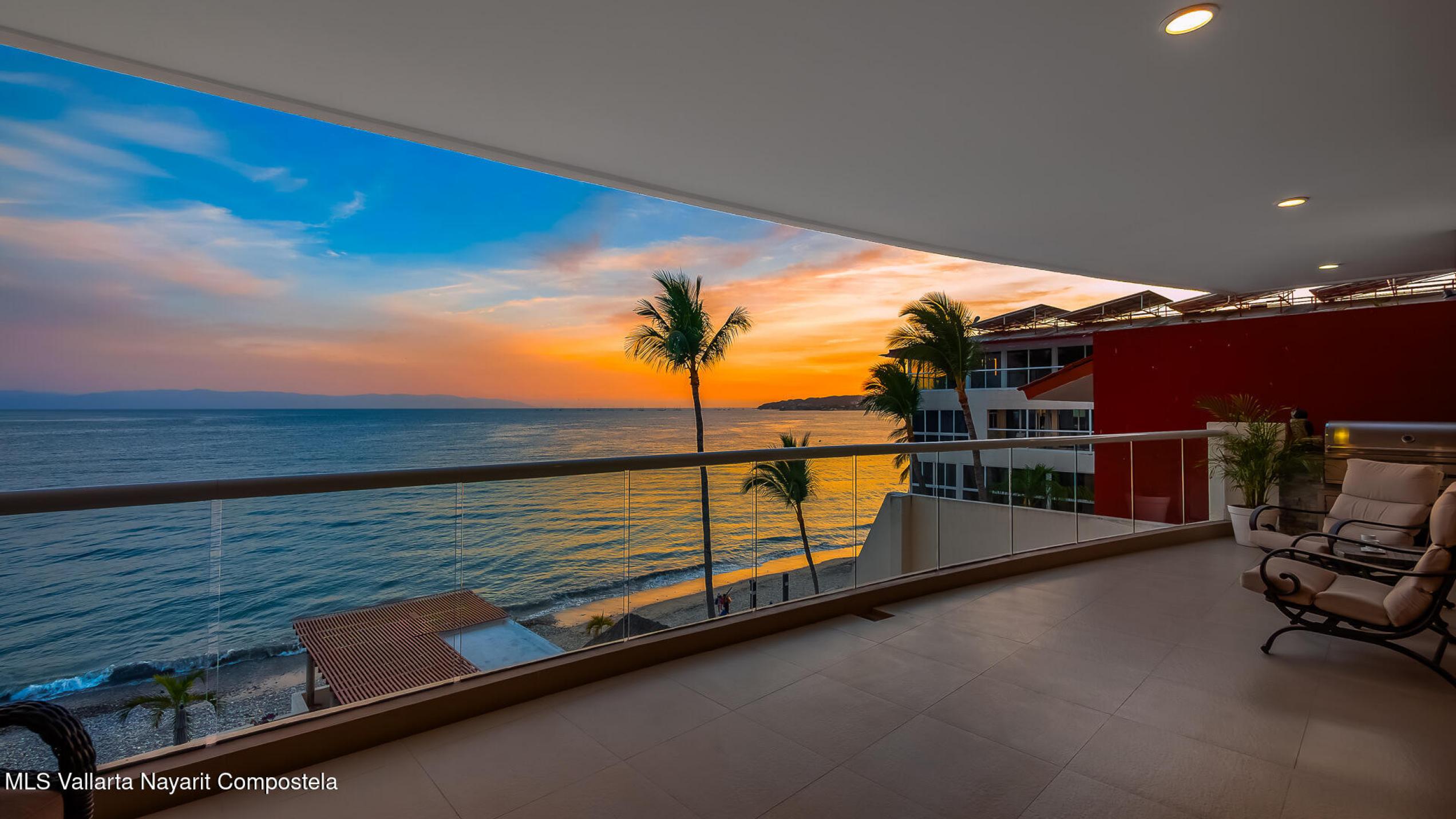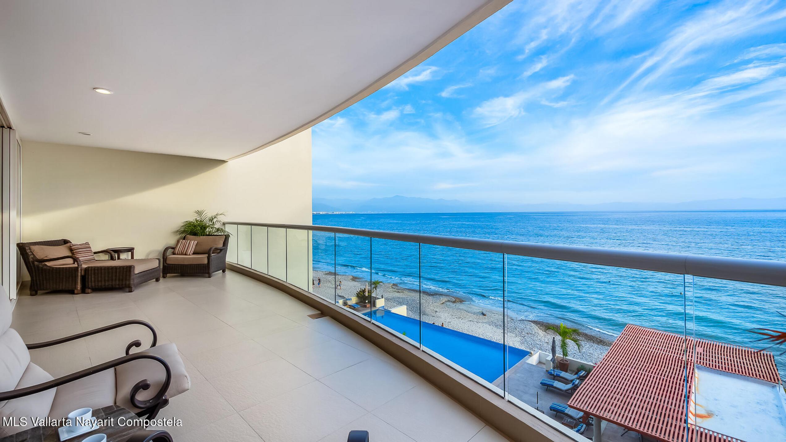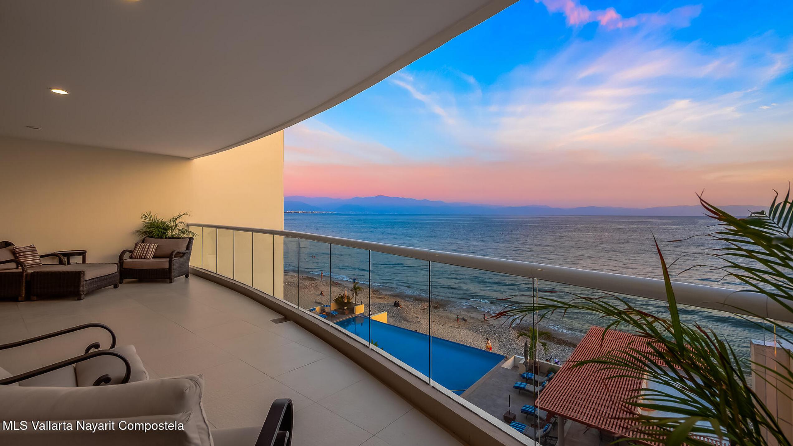 Experimente una vida incomparable frente al mar con impresionantes vistas de la Bahia de Banderas. Este exclusivo condominio ofrece la sensacion de una casa privada y las comodidades de un condominio de lujo. Cuenta con: cine, cocina de chef customizada, madera de parota de primera calidad, electrodomesticos de alta gama y area de cocina gourmet al aire libre. Tres suites principales mas una oficina, WIC, gimnasio privado y balcon envolvente. 2 estacionamientos en garaje + 2 bodegas. Una piscina infinita climatizada, filtracion de agua, elevador, yoga, acceso privado a la playa, seguridad 24-7, Bodega en la playa, lobby, edificio boutique 4 cuadras al centro.Turnkey furnished rare corner beachfront condo that feels like a home. Many upgrades, financing available.