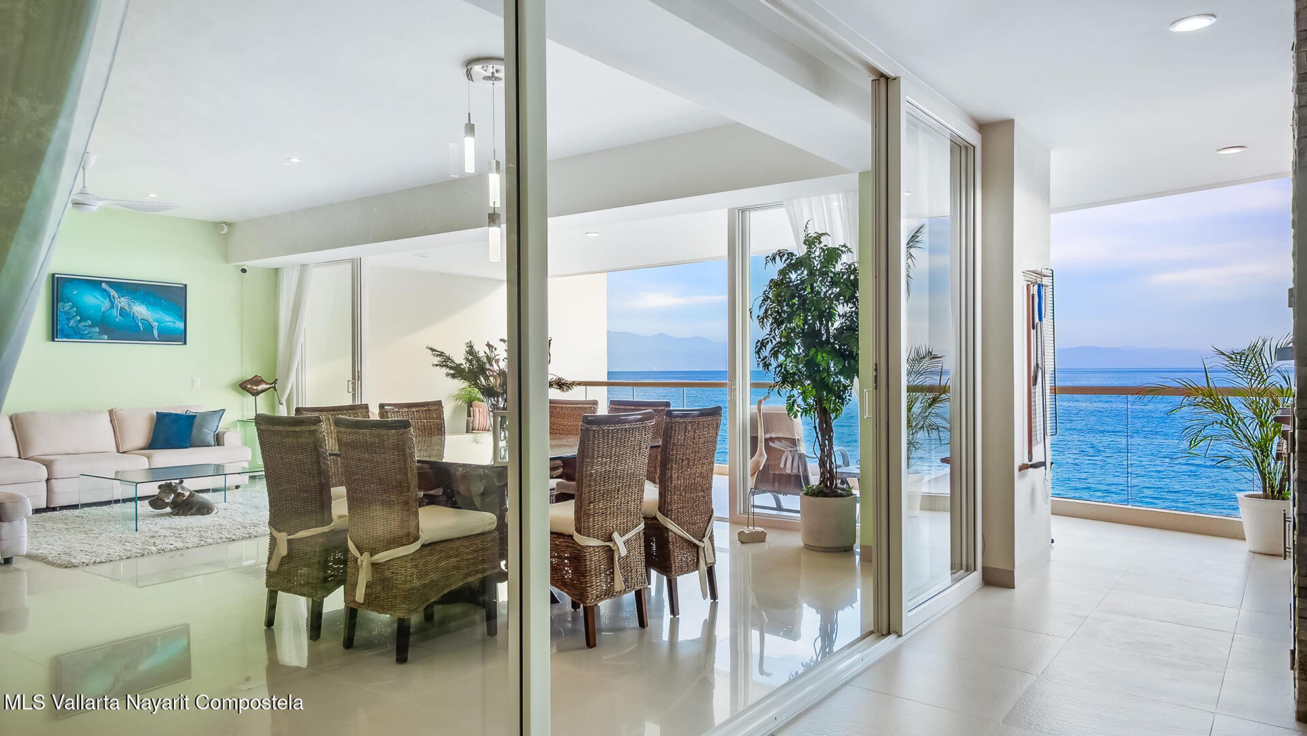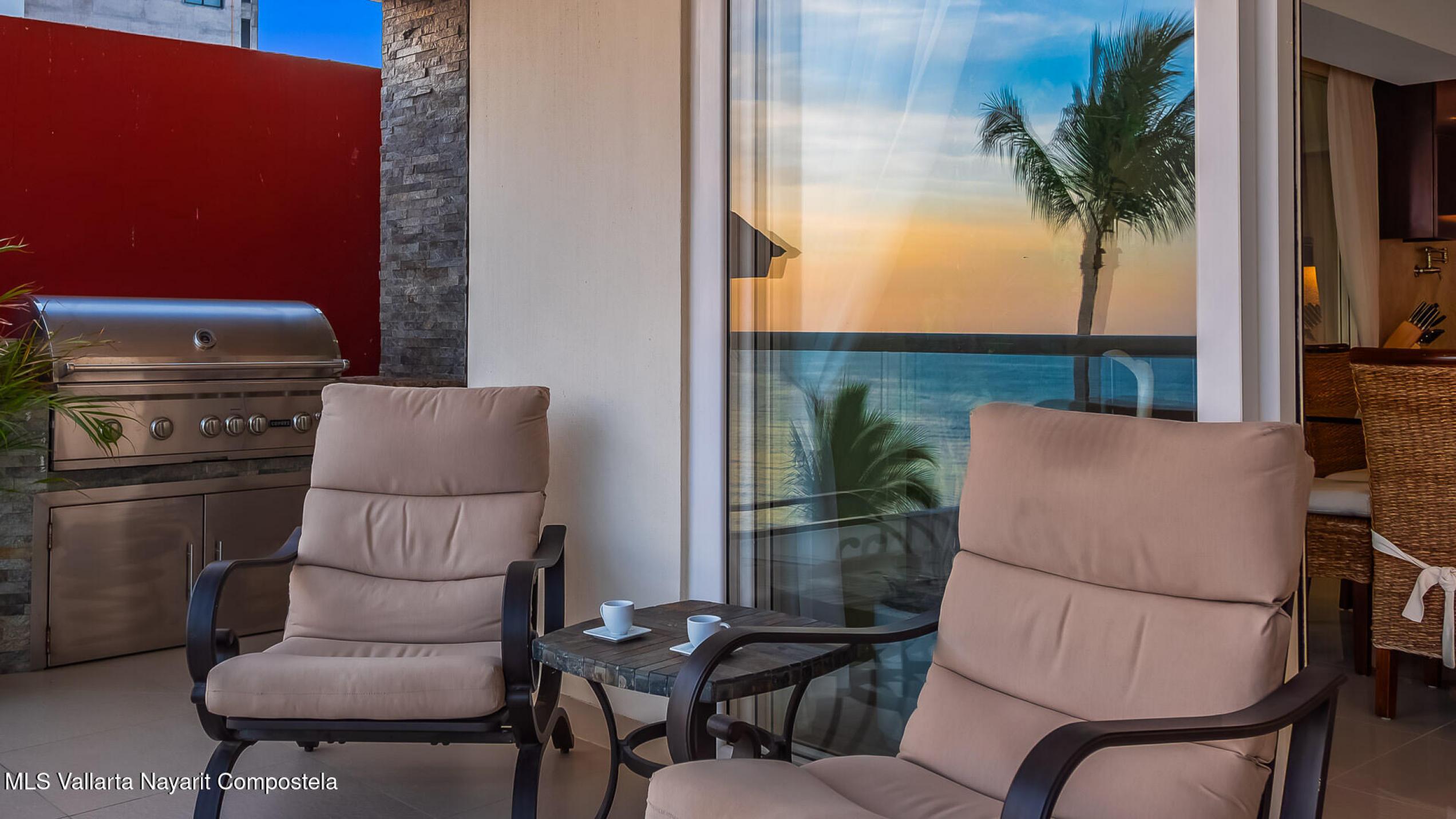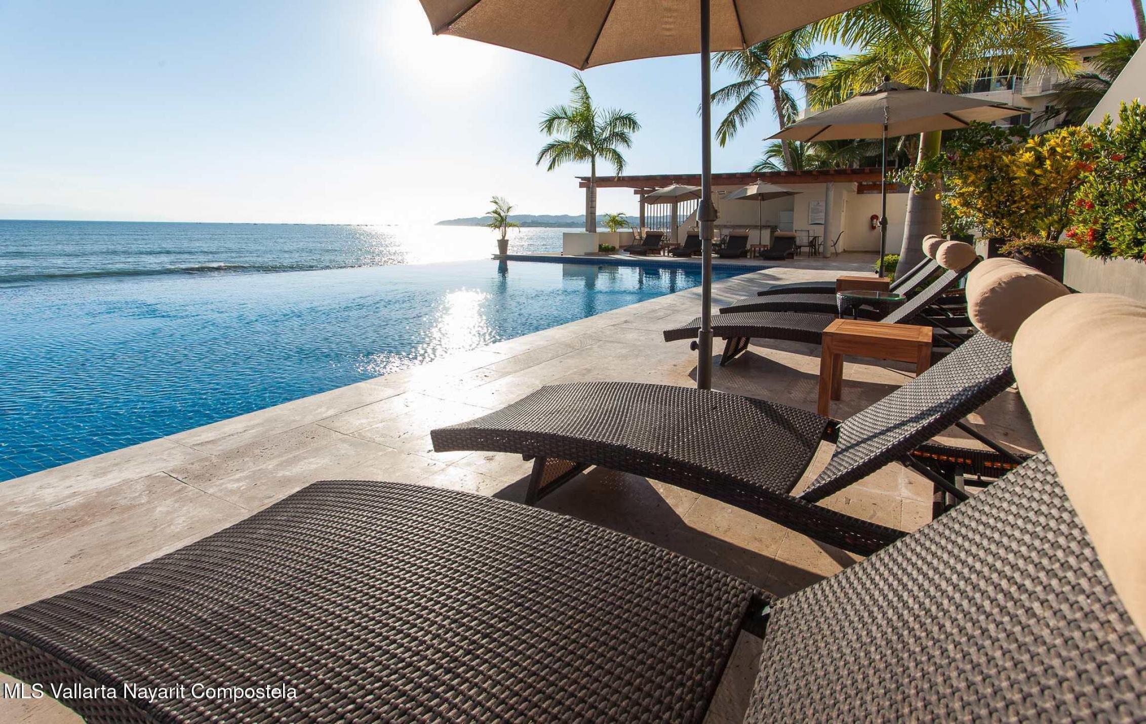Experimente una vida incomparable frente al mar con impresionantes vistas de la Bahia de Banderas. Este exclusivo condominio ofrece la sensacion de una casa privada y las comodidades de un condominio de lujo. Cuenta con: cine, cocina de chef customizada, madera de parota de primera calidad, electrodomesticos de alta gama y area de cocina gourmet al aire libre. Tres suites principales mas una oficina, WIC, gimnasio privado y balcon envolvente. 2 estacionamientos en garaje + 2 bodegas. Una piscina infinita climatizada, filtracion de agua, elevador, yoga, acceso privado a la playa, seguridad 24-7, Bodega en la playa, lobby, edificio boutique 4 cuadras al centro.Turnkey furnished rare corner beachfront condo that feels like a home. Many upgrades, financing available.