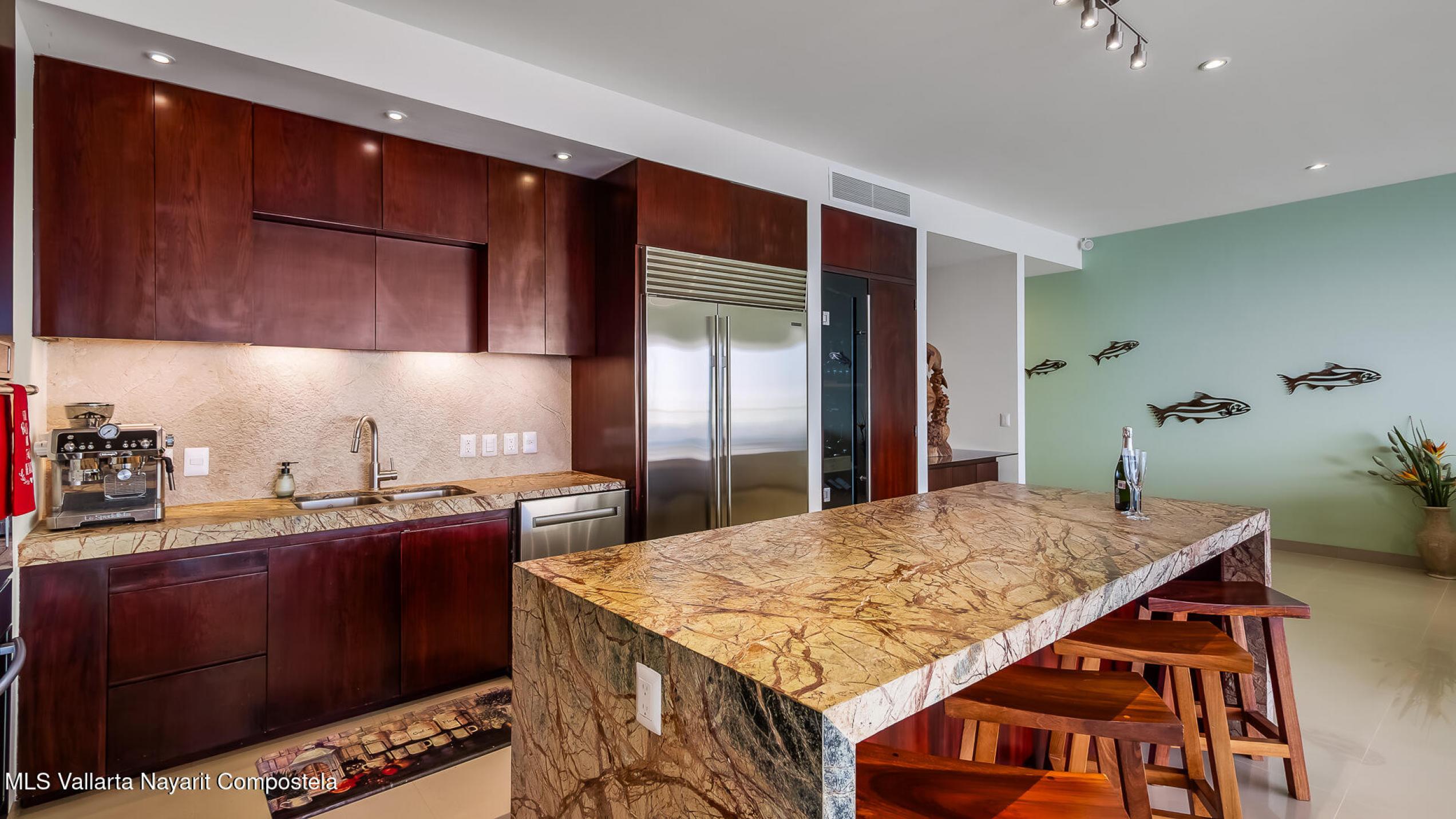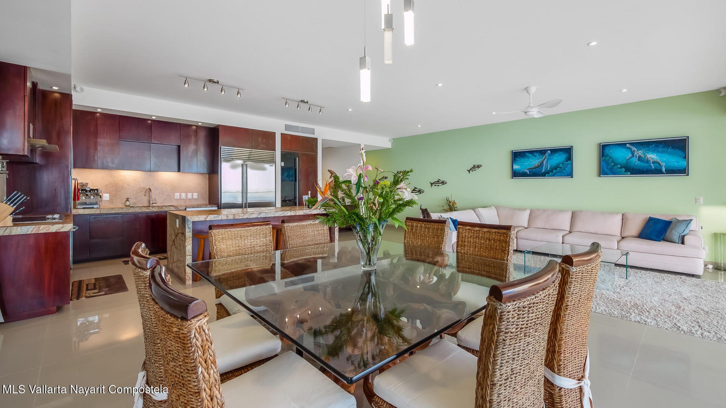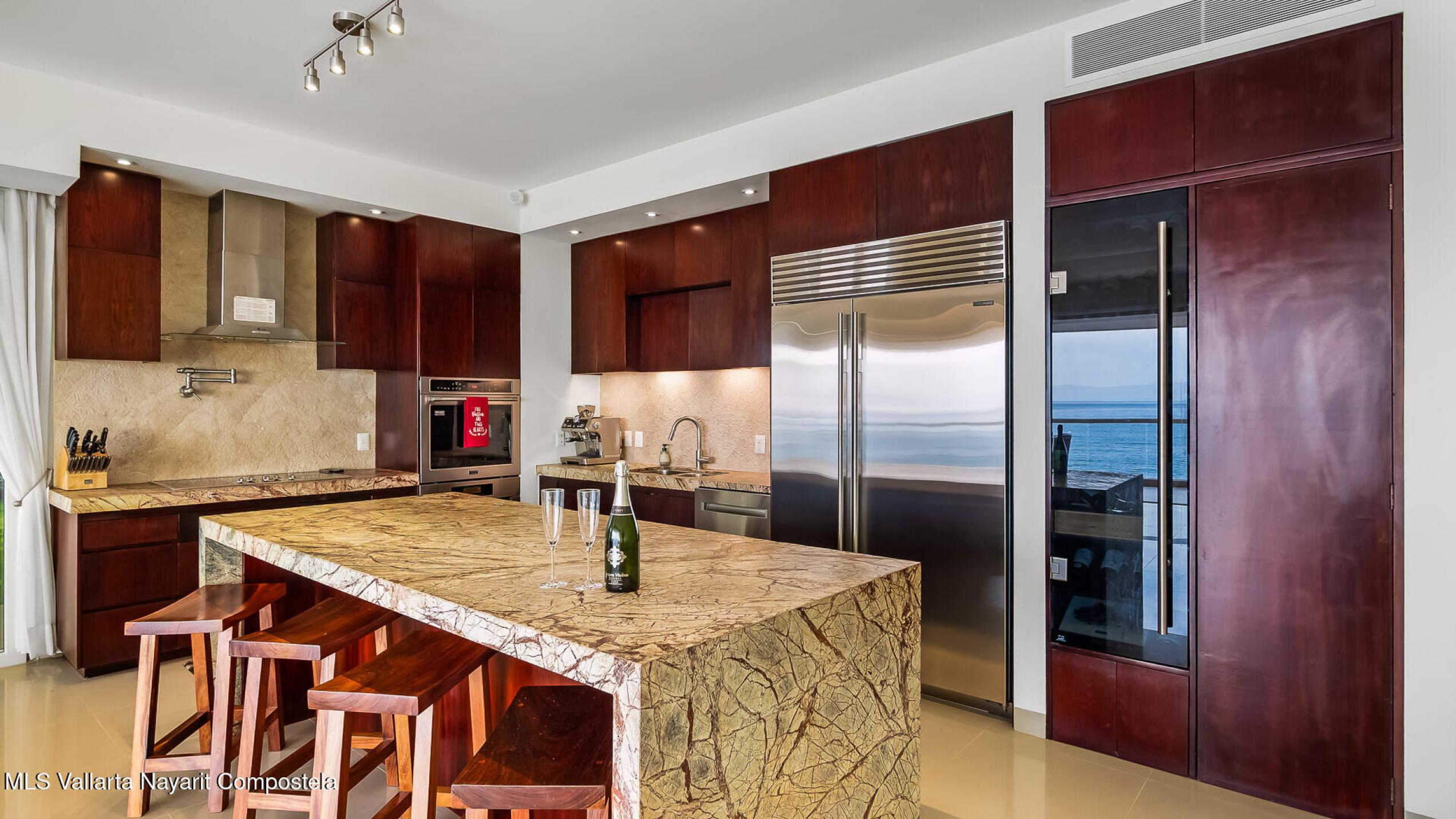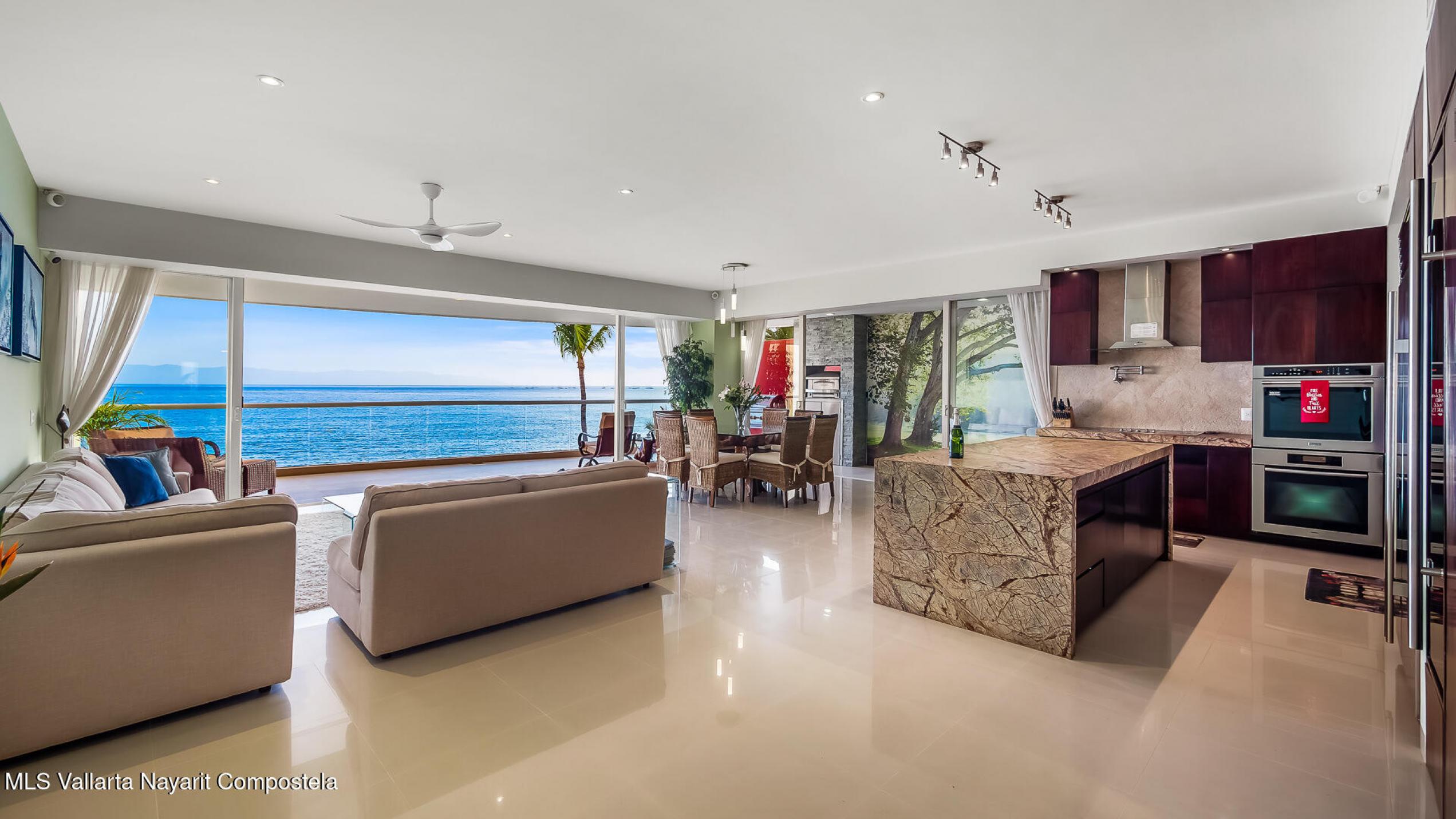 Experimente una vida incomparable frente al mar con impresionantes vistas de la Bahia de Banderas. Este exclusivo condominio ofrece la sensacion de una casa privada y las comodidades de un condominio de lujo. Cuenta con: cine, cocina de chef customizada, madera de parota de primera calidad, electrodomesticos de alta gama y area de cocina gourmet al aire libre. Tres suites principales mas una oficina, WIC, gimnasio privado y balcon envolvente. 2 estacionamientos en garaje + 2 bodegas. Una piscina infinita climatizada, filtracion de agua, elevador, yoga, acceso privado a la playa, seguridad 24-7, Bodega en la playa, lobby, edificio boutique 4 cuadras al centro.Turnkey furnished rare corner beachfront condo that feels like a home. Many upgrades, financing available.