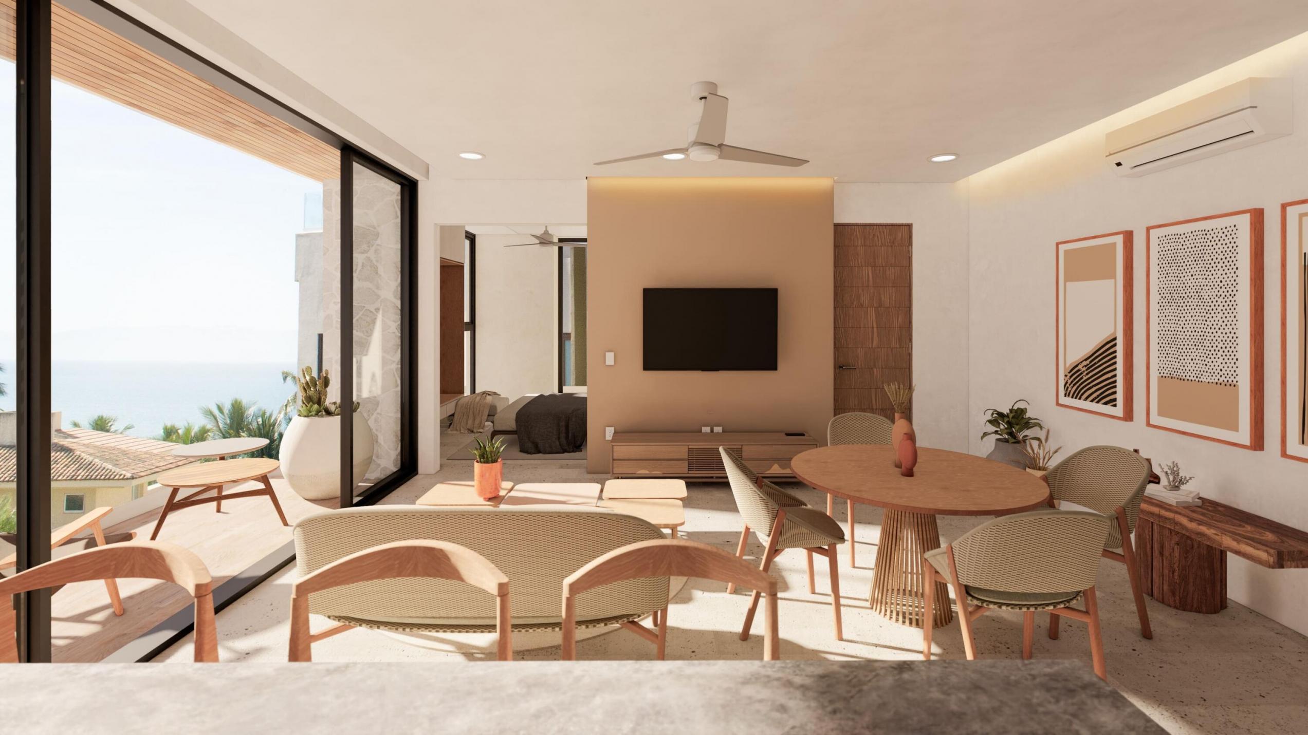 Discover your paradise at Nalua, where luxury meets affordability in the heart of the Golden Zone of Bucerias, just steps from the beach. Nalua offers 37 residential units with 7 unique layouts to choose from, each designed for modern and comfortable living. From spacious layouts perfect for entertaining to a rooftop terrace with breathtaking views, every detail has been carefully designed to enhance your lifestyle.The condominium showcases refined touches including marble flooring, porcelain tile flooring in the bedroom, and melamine cabinetry with granite countertops in the kitchen. Appliances such as microwaves and gas ovens add to the allure of the space.