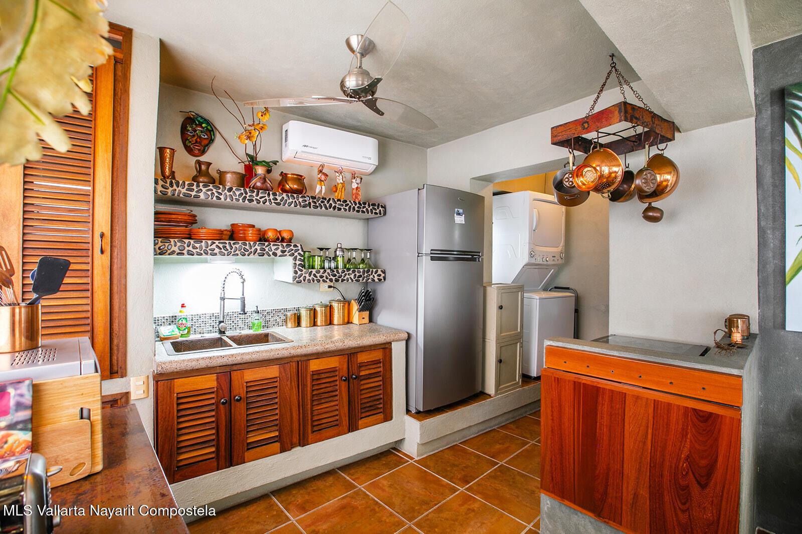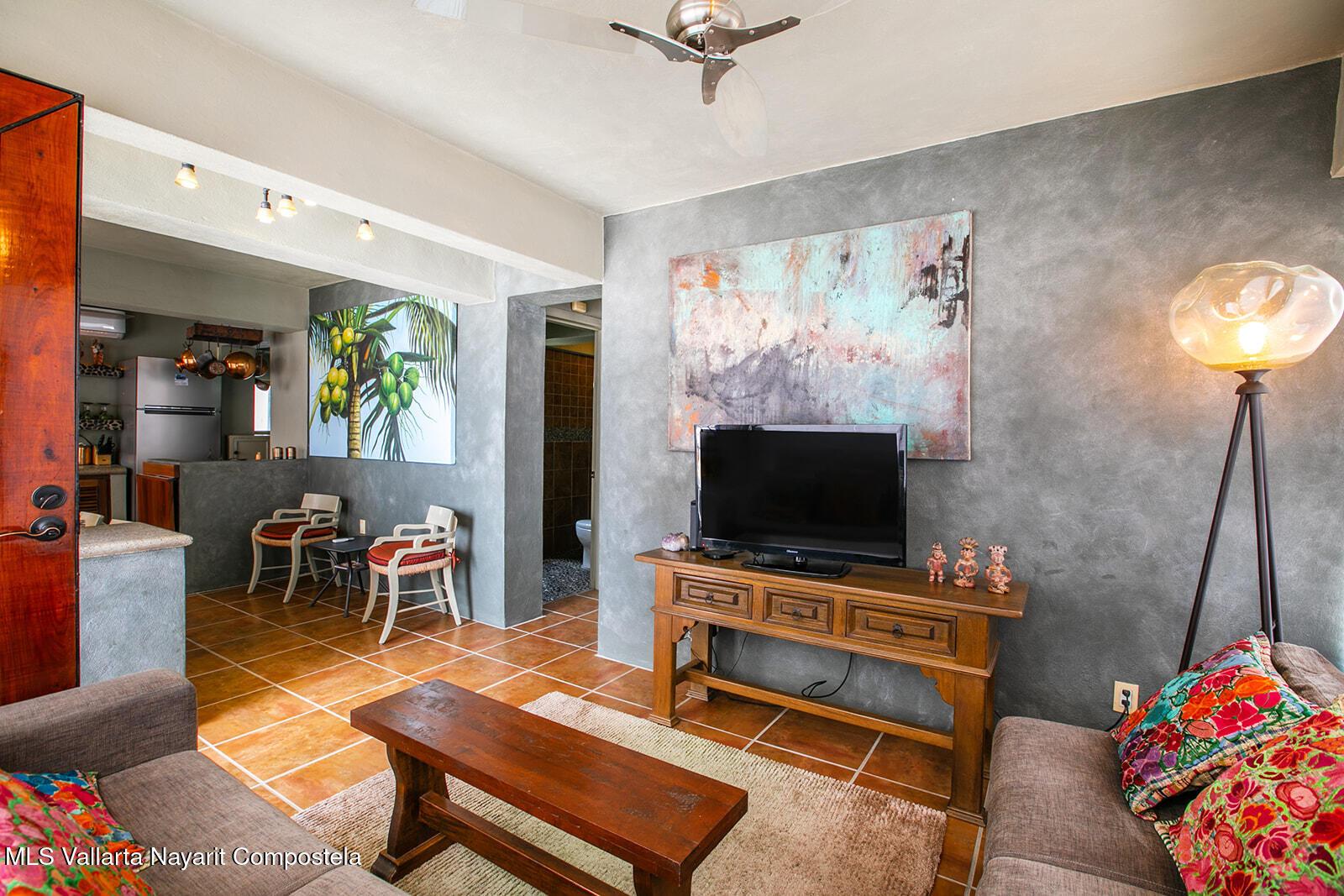 Exquisitely fun, Condo Copper is a ground floor 1 bedroom, ready for rental income, in the popular lower Amapas, 2 blocks above the famous Playa Los Muertos. All items including all furniture, art, and appliances are included. A covered and secure parking stall is designated to this unit. No HOA fees. Perfect vacation rental location a short 5 minute walk to the beach.