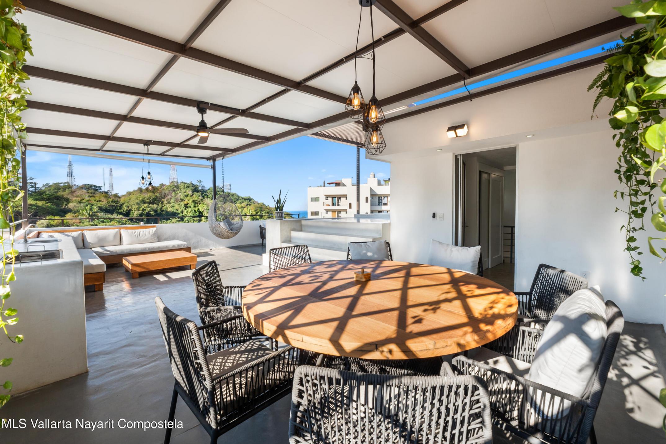 English BelowREFORMA DE AZOTEA TERMINADA!''Suba al tercer nivel para descubrir un impresionante oasis de 875 pies cuadrados en la azotea. Este refugio, meticulosamente terminado, cuenta con una estacion de parrilla integrada, elegantes areas de comedor y sala de estar, y una piscina privada con hidromasaje. Disenado para la comodidad con cualquier luz, el espacio incluye persianas enrollables para proteccion solar y privacidad, asi como un practico medio bano''.Y sin aumento de precio!Experimente lo ultimo en espacios amplios y lujosos.Este penthouse de 3 niveles se extiende por mas de 3500 pies cuadrados y se transforma en una mina de oro para alquileres vacacionales.Perfectamente ubicado en el centro de Puerto Vallarta, a solo 15 minutos a pie del iconico Malec
