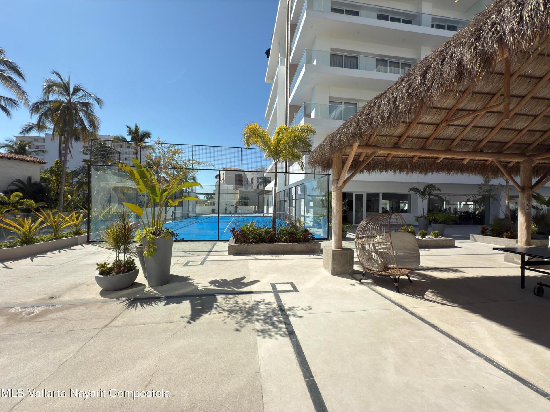 Departamento nuevo amueblado, de 2 recamaras 2 banos, listo para estrenar, en Paseo de los Cocoteros en Nuevo Vallarta, a solo 5 minutos caminando de la playa, cuenta con seguridad las 24 horas, estacionamiento en el sotano, roof top con alberca, area de BBQ, alberca en planta baja, canchas de padel, gimnasio, muelle para embarcaciones. Brand new furnished 2-bedroom, 2-bathroom apartment, ready to move into, on Paseo de los Cocoteros in Nuevo Vallarta, just a 5-minute walk from the beach. It features 24-hour security, basement parking, a rooftop pool, a BBQ area, a ground-floor pool, paddle tennis courts, a gym, and a boat dock.