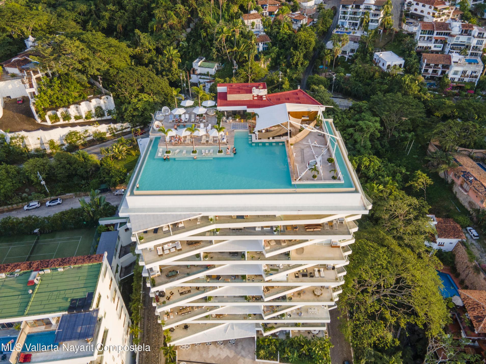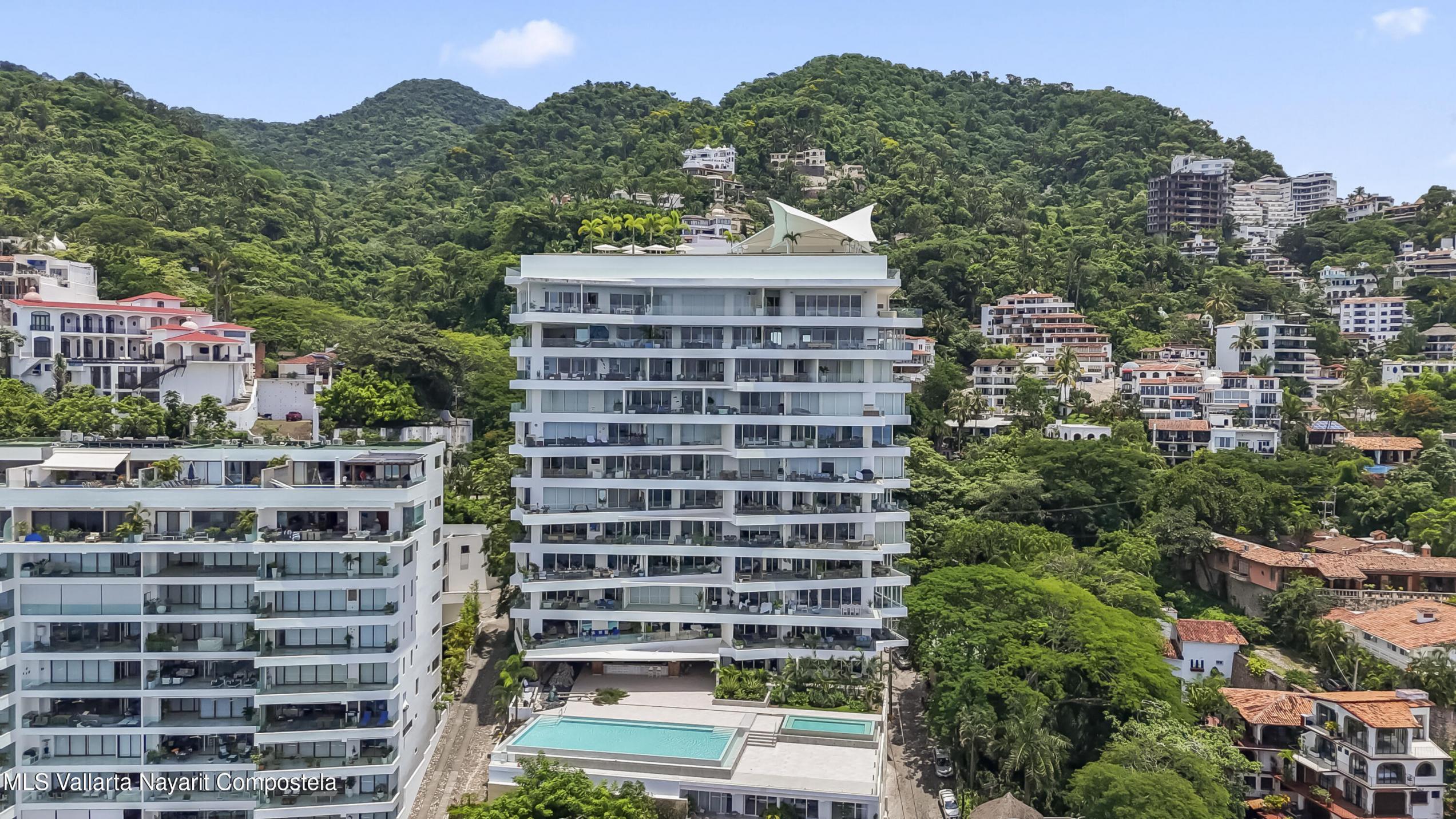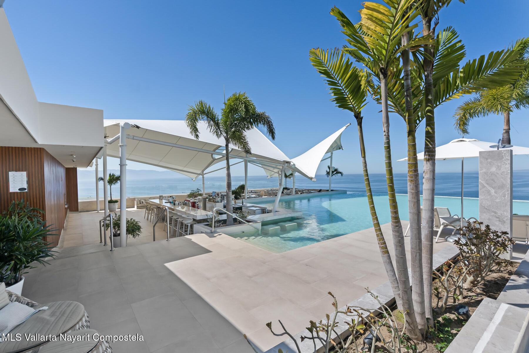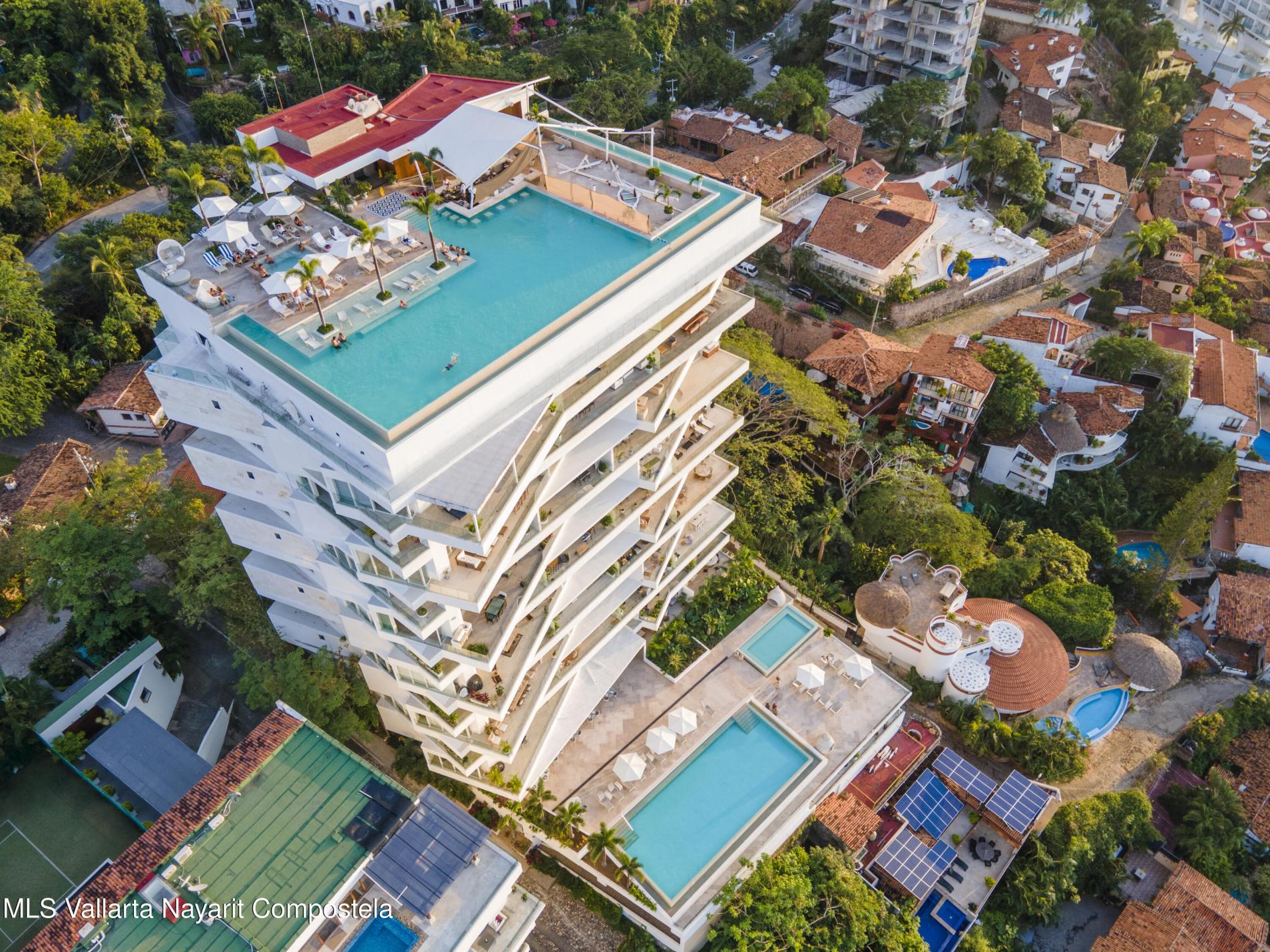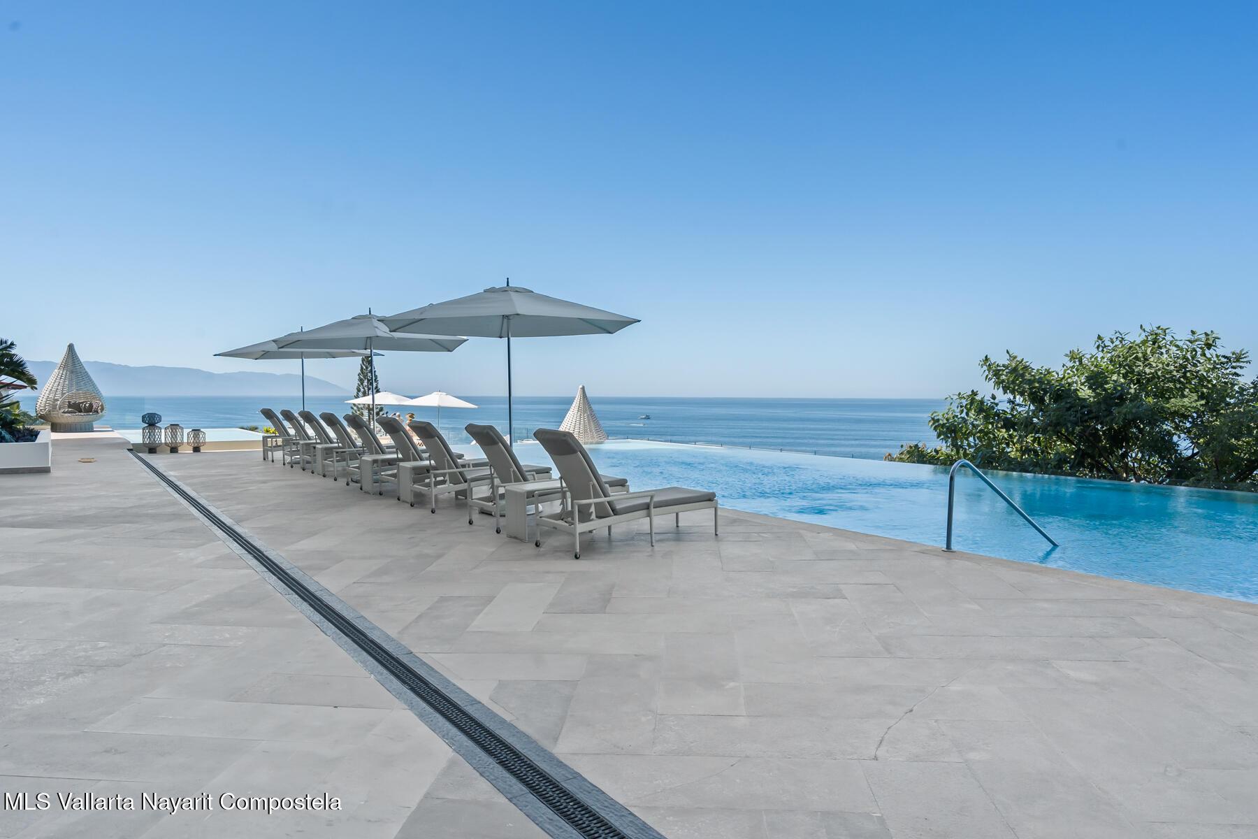 Beautiful corner 5 Bedroom PH unit located in beautiful Conchas Chinas, Puerto Vallarta most renowned area. Situated in the exclusive enclave of Conchas Chinas. framed by expansive floor to ceiling glass doors and complemented by thoughtfully curated interiors and custom furnishings. The entire south-west corner of the home vanishes with the sliding doors opening entirely to the ocean views . Each bedroom features a high-end modern feel, en-suite bathroom, enhancing providing both luxury and confort.