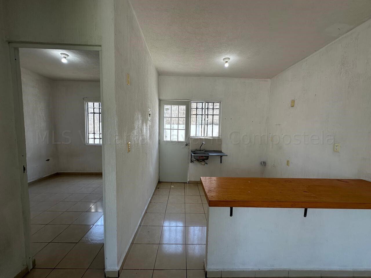 Ubicado en el fraccionamiento Altavela, en Mezcales, Nayarit; Dentro de una zona muy transitada y tranquila donde podemos encontrar distintos restaurantes, bares, negocios, etc. La casa cuenta con un piso el cual ofrece, cochera con jardin para un auto, al entrar tenemos el area de sala-comedor con preparacion para instalar a/a, area de cocina con barra y tarja, 1 bano completo con traga-luz y 2 habitaciones con preparacion para a/a, patio con lavadero, boiler y ya cuenta con herreria al igual que todas las puertas y ventanas. Una excelente oportunidad de inversion a un muy buen precio