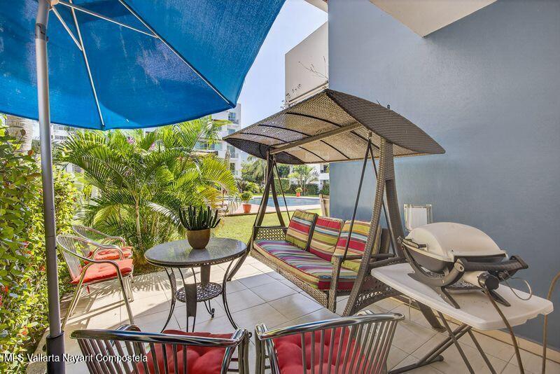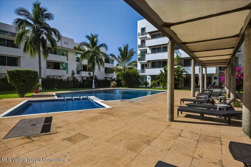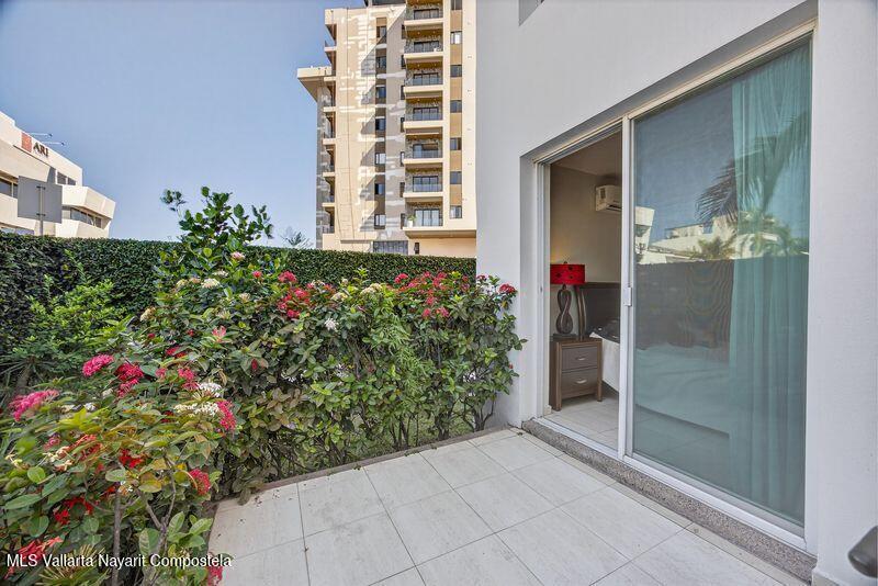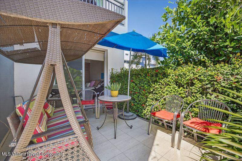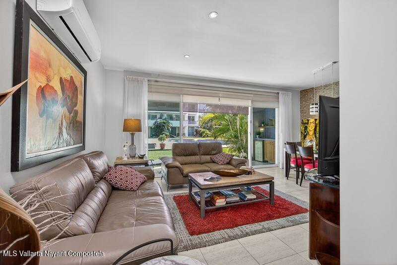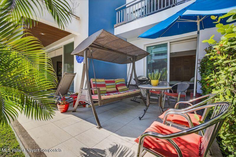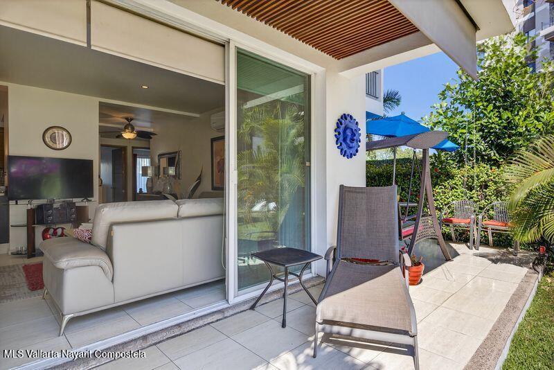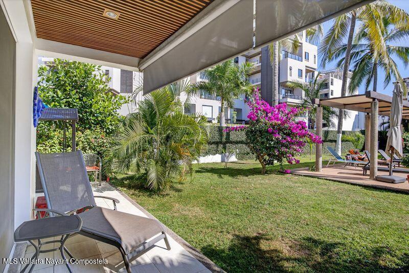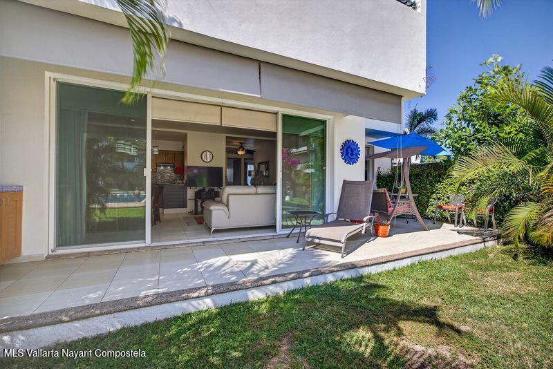 Beautiful large 3 bedrooms 2 bathrooms ground floor corner unit located in one of the most desirable area of Puerto Vallarta. Close by Shopping Mall, Restaurants, Stores, COSTCO. Comes fully furnished TURN KEY. High End finishes with tropical wood, granite counter top and marble vanities. Large wrap around terrace with a shade area. Easy access. Features 2 private parking space with electric gate opener.