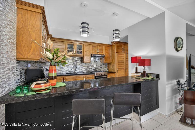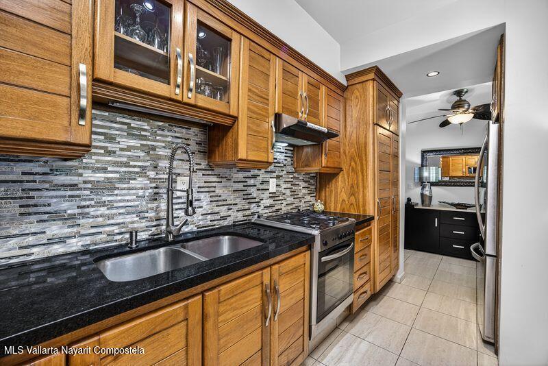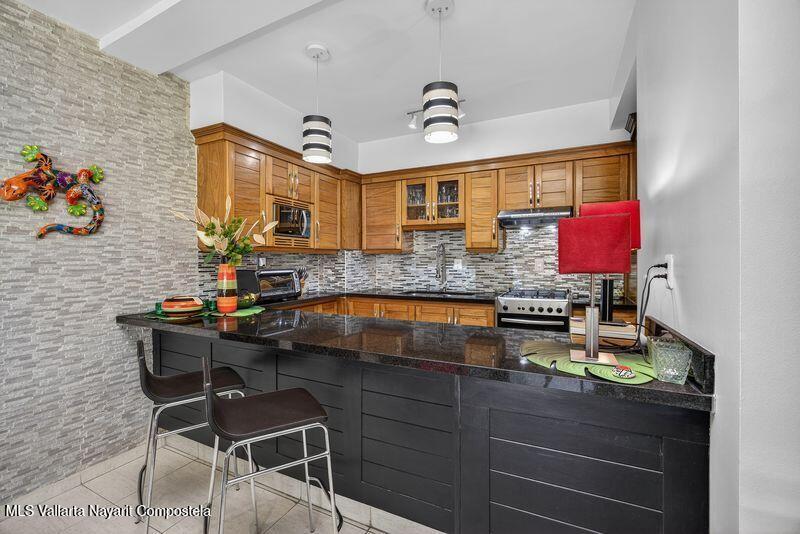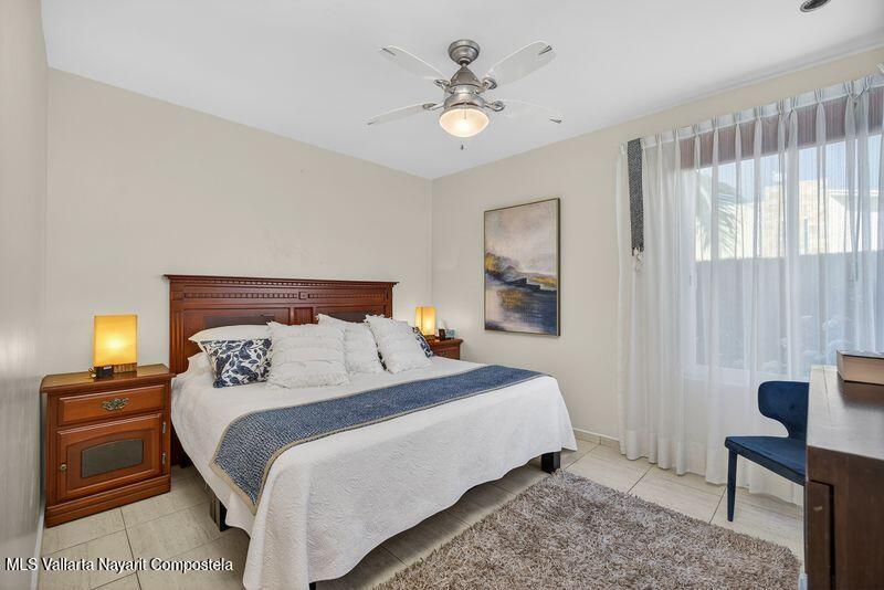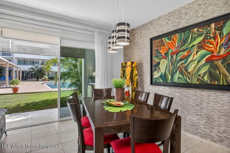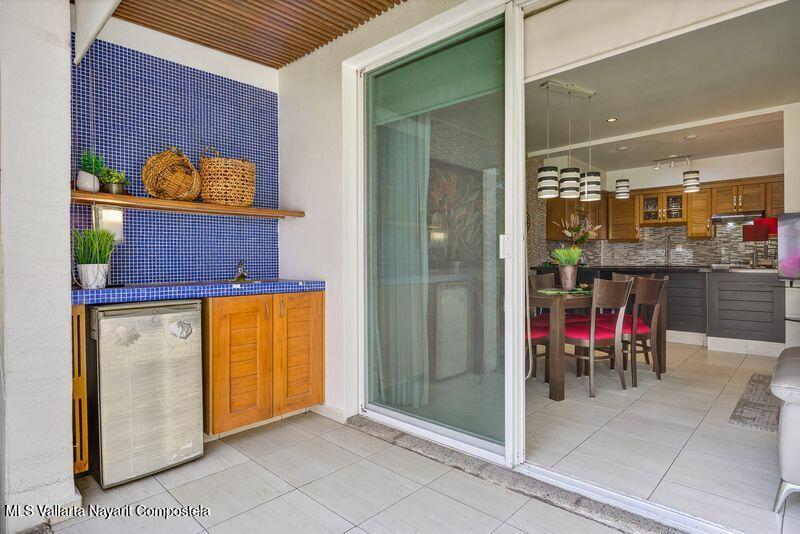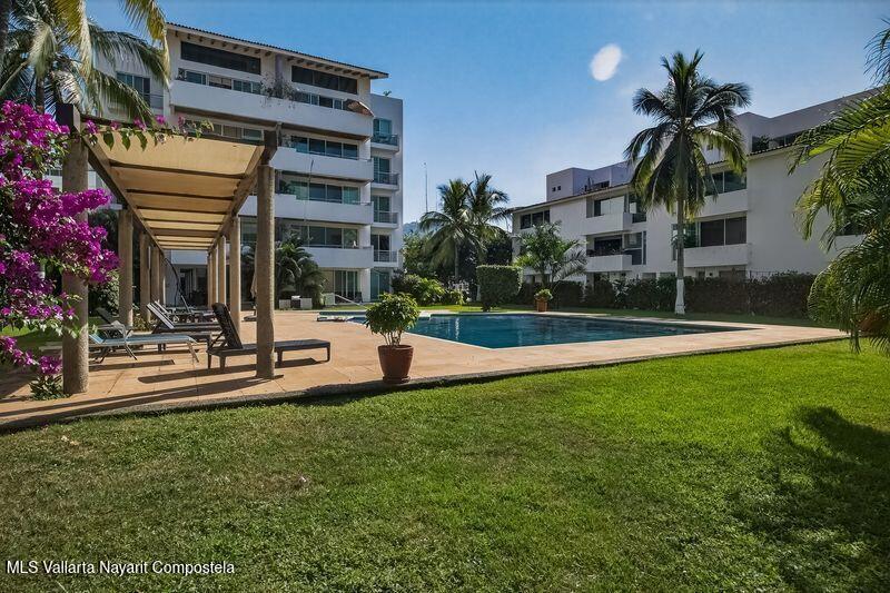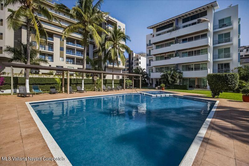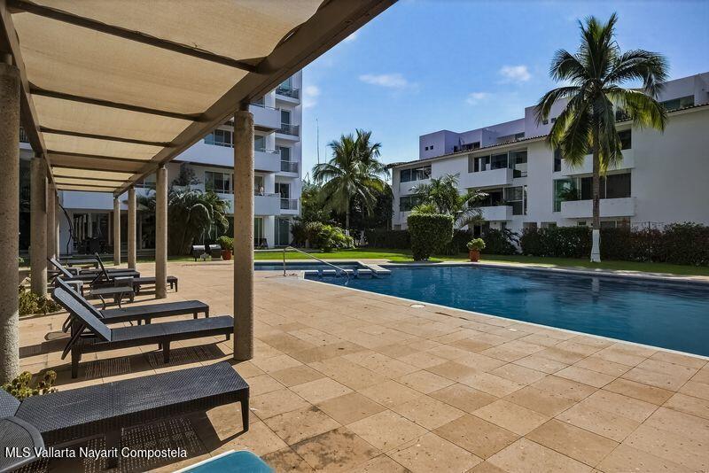 Beautiful large 3 bedrooms 2 bathrooms ground floor corner unit located in one of the most desirable area of Puerto Vallarta. Close by Shopping Mall, Restaurants, Stores, COSTCO. Comes fully furnished TURN KEY. High End finishes with tropical wood, granite counter top and marble vanities. Large wrap around terrace with a shade area. Easy access. Features 2 private parking space with electric gate opener.