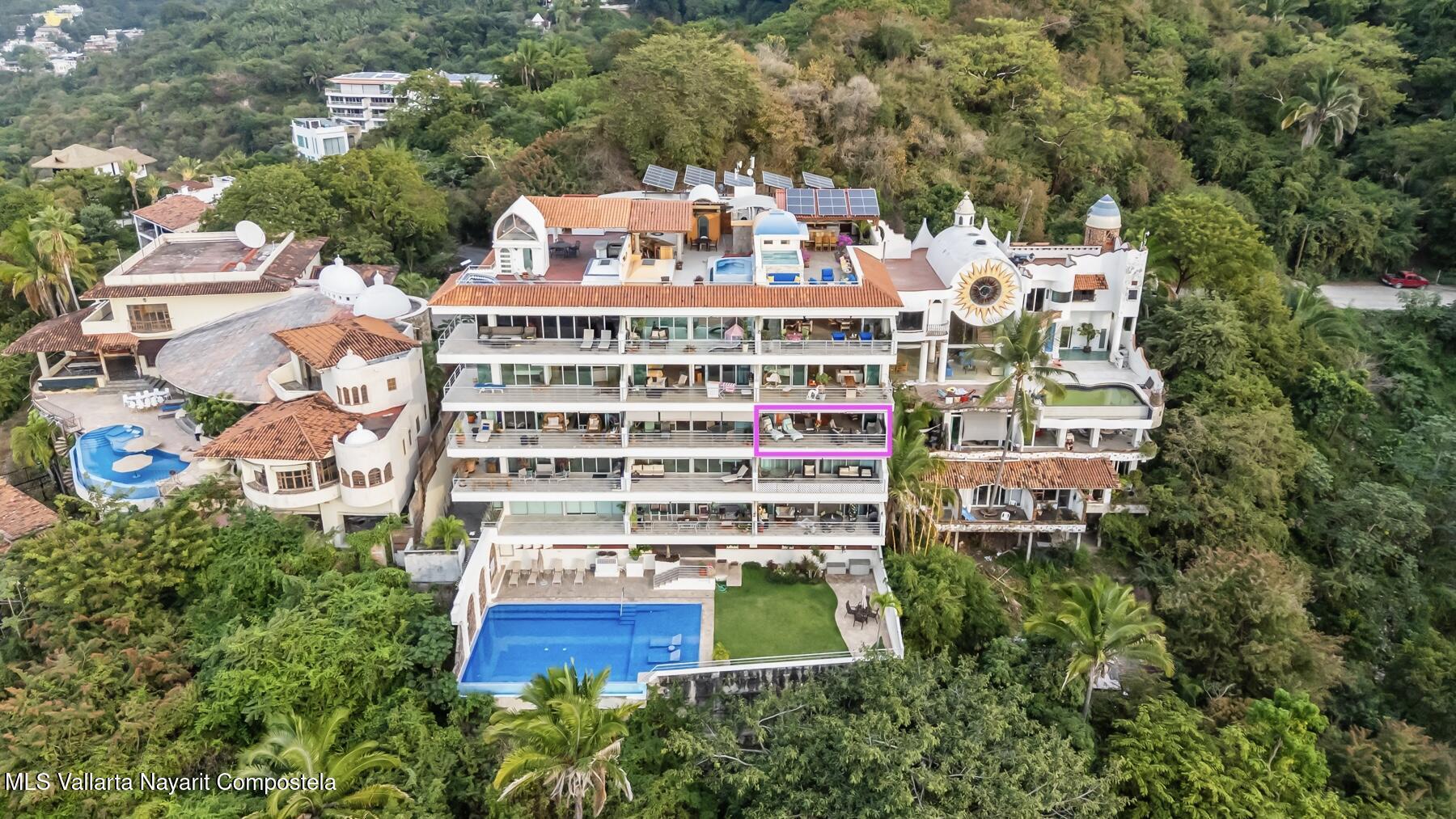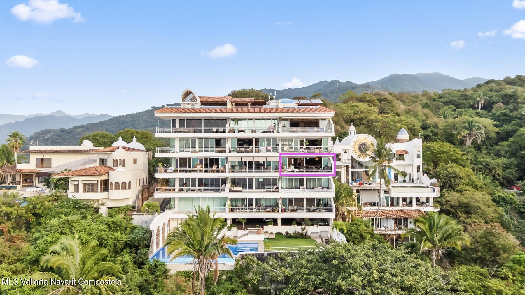 Vista Bahia II Unit 33 is a spacious 2 bedroom, 2.5 bath residence with a versatile flex room, offering over 2,000 sq. ft. of refined living space on the hillside of Cinco de Diciembre. Enjoy panoramic views of the ocean and city from this generously proportioned home. Developed by HEVA, one of Puerto Vallarta's most respected builders, the unit features quality construction, thoughtful design, and abundant natural light. Additional highlights include a beautiful shared pool deck, deeded parking, and a layout ideal for full-time living or luxury vacation use.