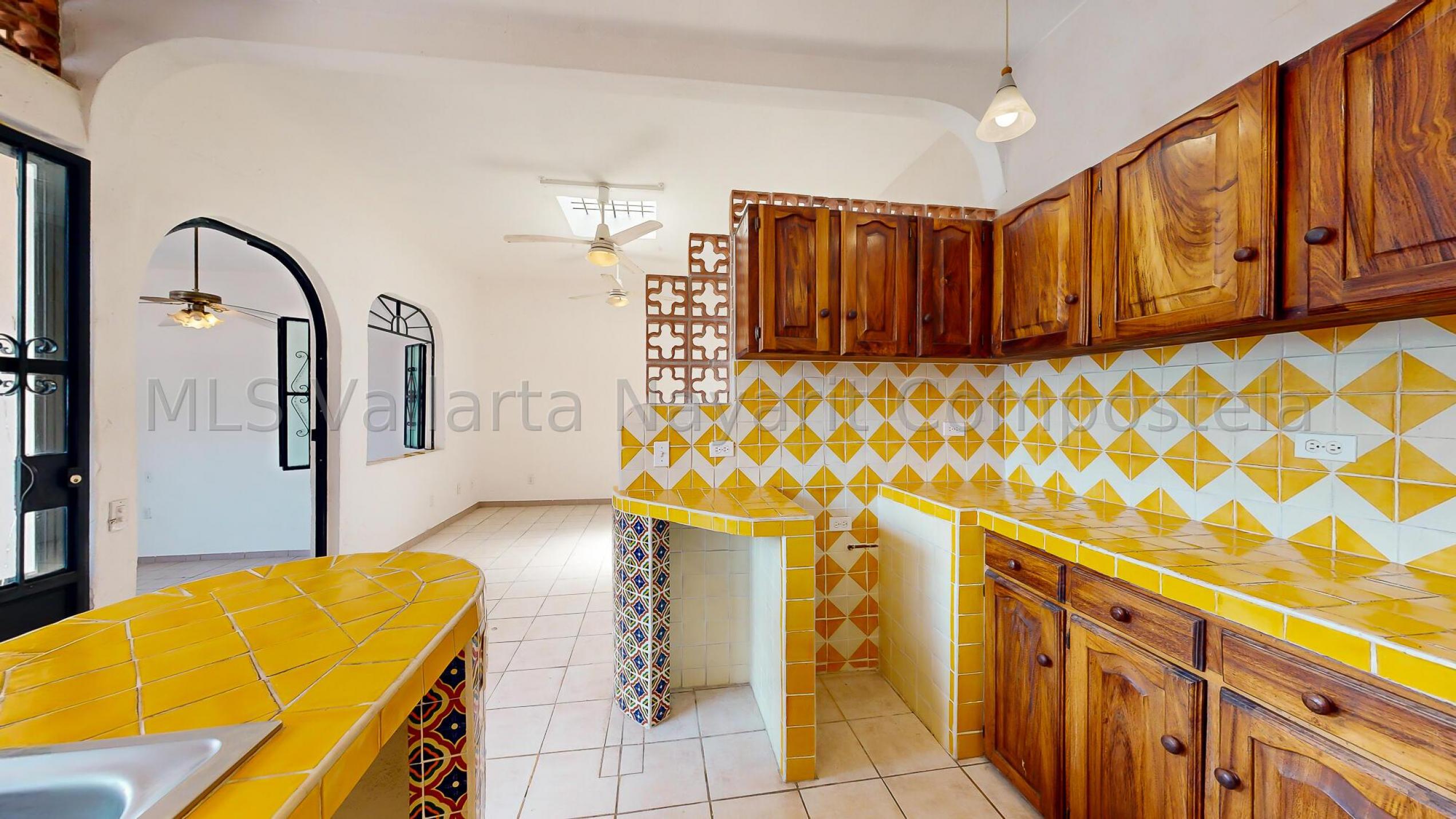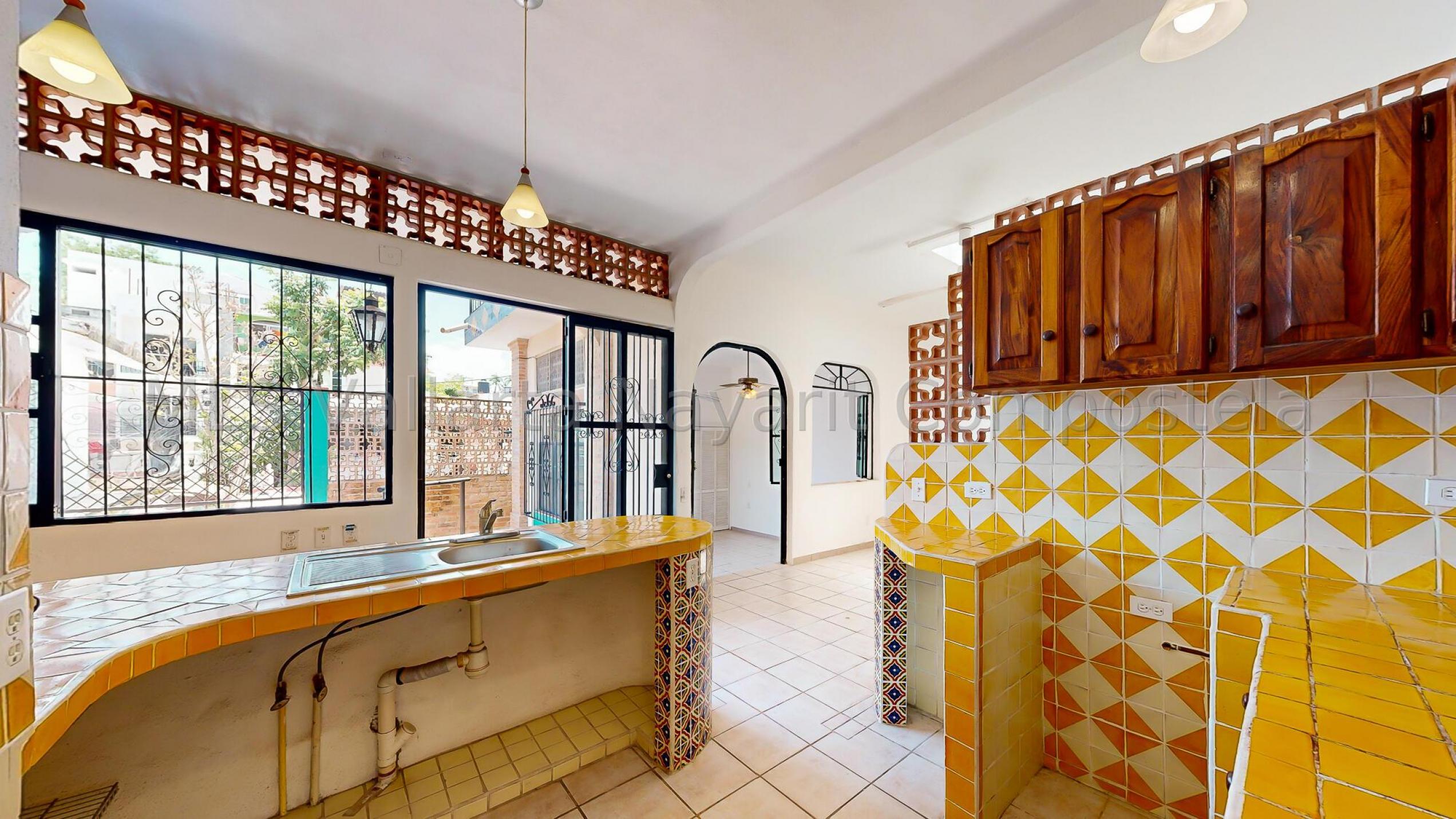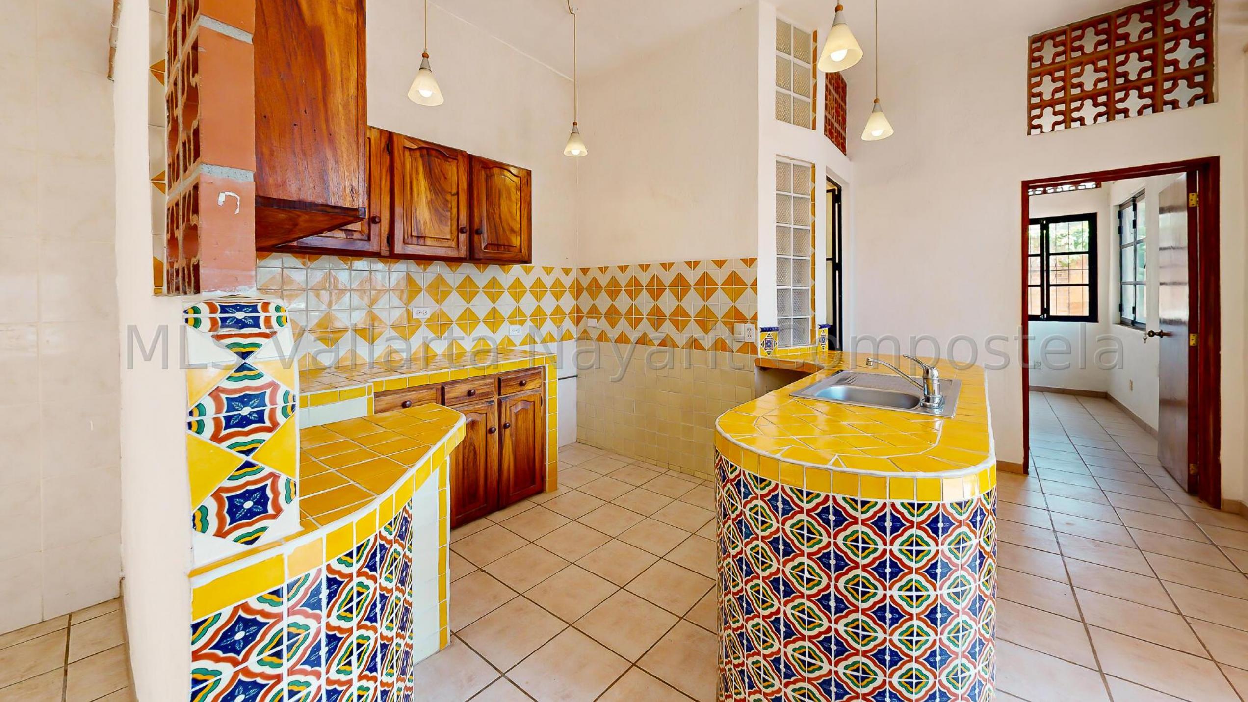 Welcome to your new oasis in the heart of Bucerias! This charming 2-bedroom, 2 1/2-bathroom house perfectly blends traditional Mexican flair and modern comfort. Tucked away from the street, the home offers a serene retreat with a welcoming sidewalk entrance that leads you to a picturesque garden.As you approach, you're greeted by a delightful garden entrance featuring a lovely fountain that provides a soothing ambiance. Several areas for plants allow you to create your own lush, green haven. Step inside to find a combined living room and dining room space adorned with beautiful, colorful Mexican tiles. These tiles add a touch of local artistry and charm, creating a warm and inviting atmosphere.