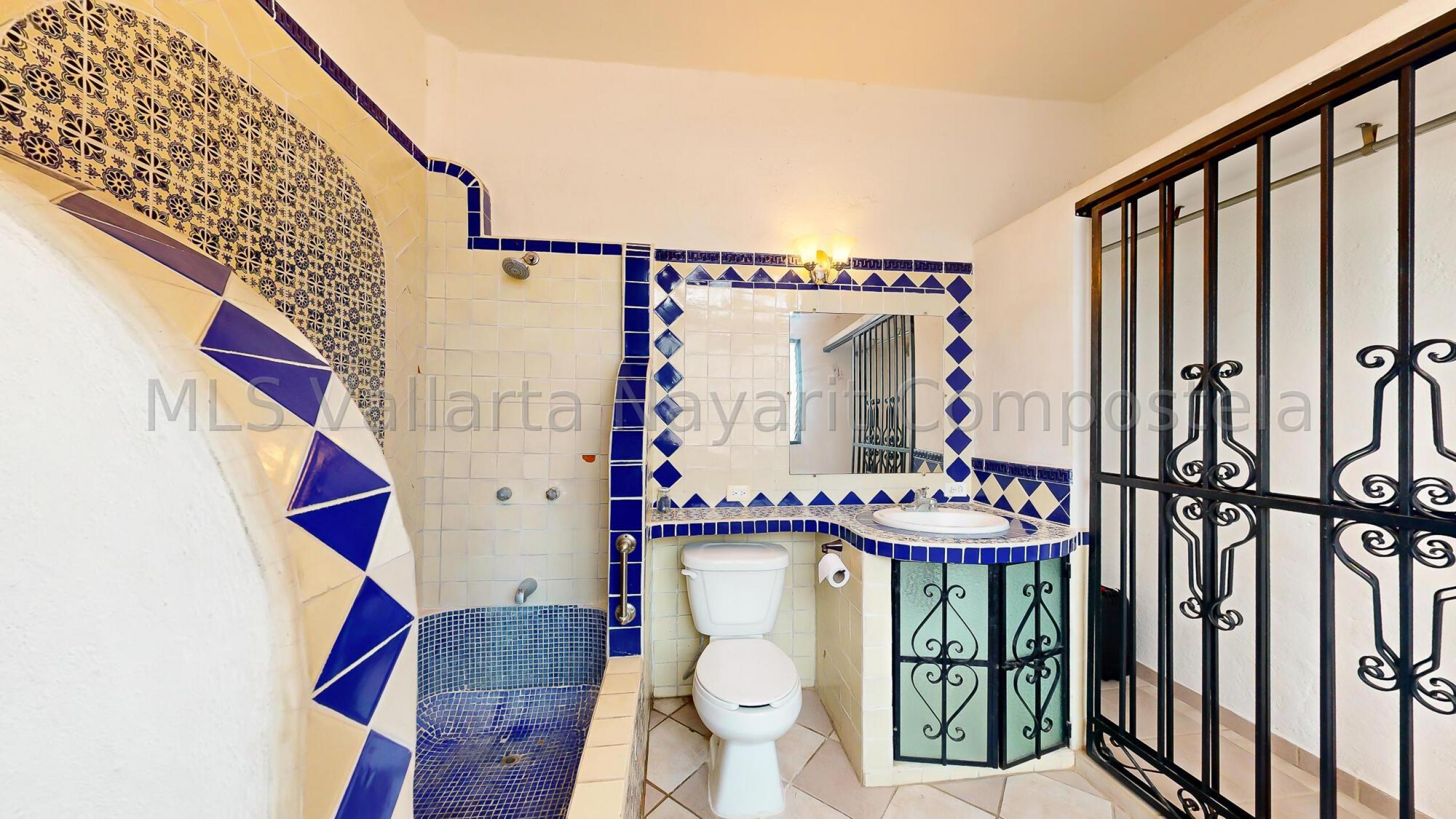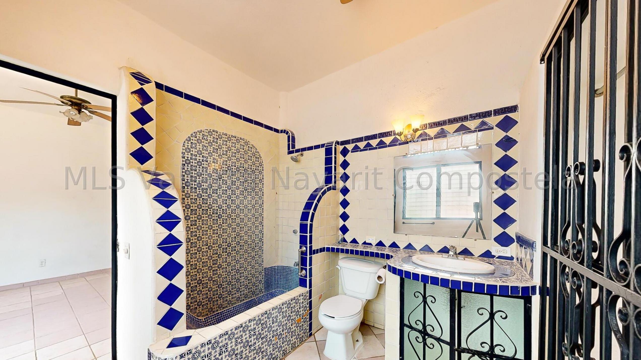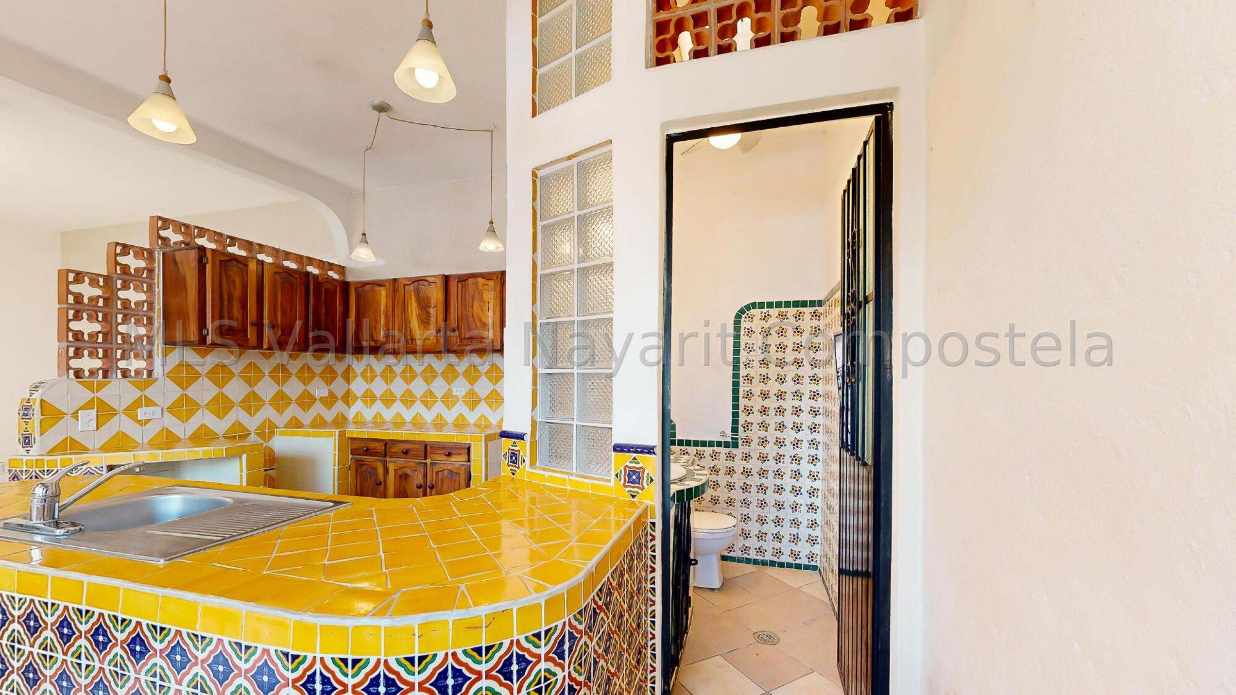 Welcome to your new oasis in the heart of Bucerias! This charming 2-bedroom, 2 1/2-bathroom house perfectly blends traditional Mexican flair and modern comfort. Tucked away from the street, the home offers a serene retreat with a welcoming sidewalk entrance that leads you to a picturesque garden.As you approach, you're greeted by a delightful garden entrance featuring a lovely fountain that provides a soothing ambiance. Several areas for plants allow you to create your own lush, green haven. Step inside to find a combined living room and dining room space adorned with beautiful, colorful Mexican tiles. These tiles add a touch of local artistry and charm, creating a warm and inviting atmosphere.