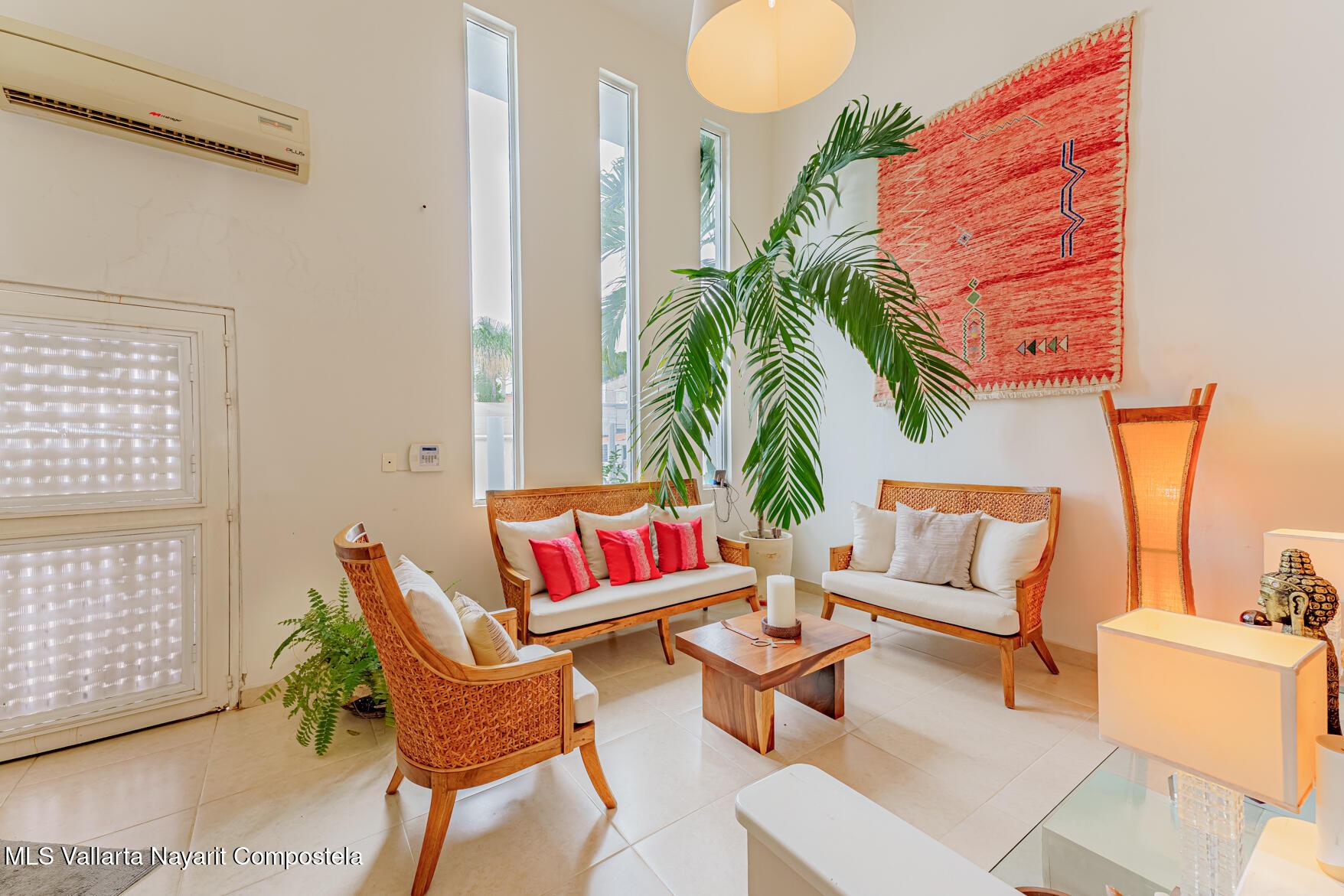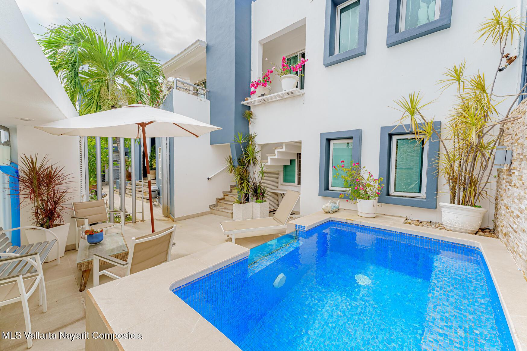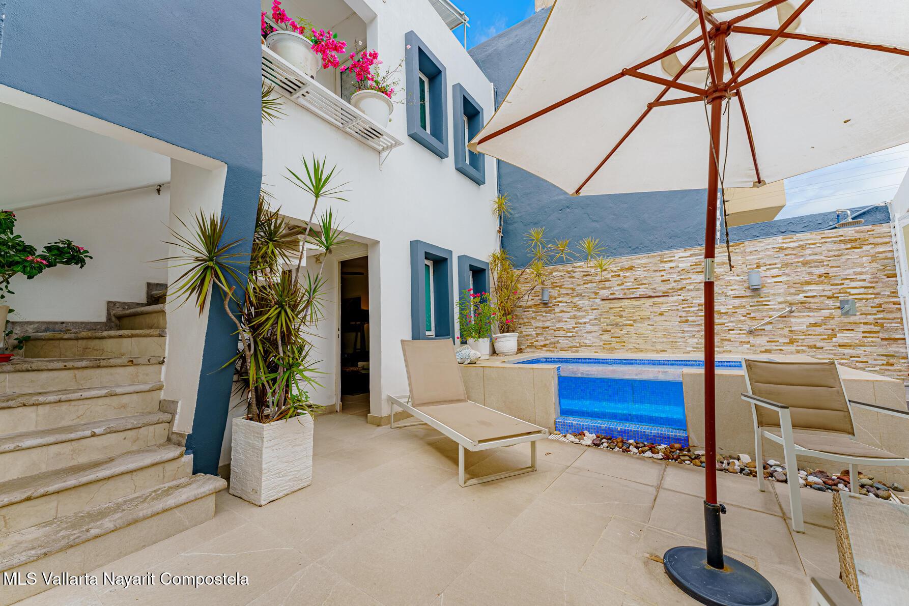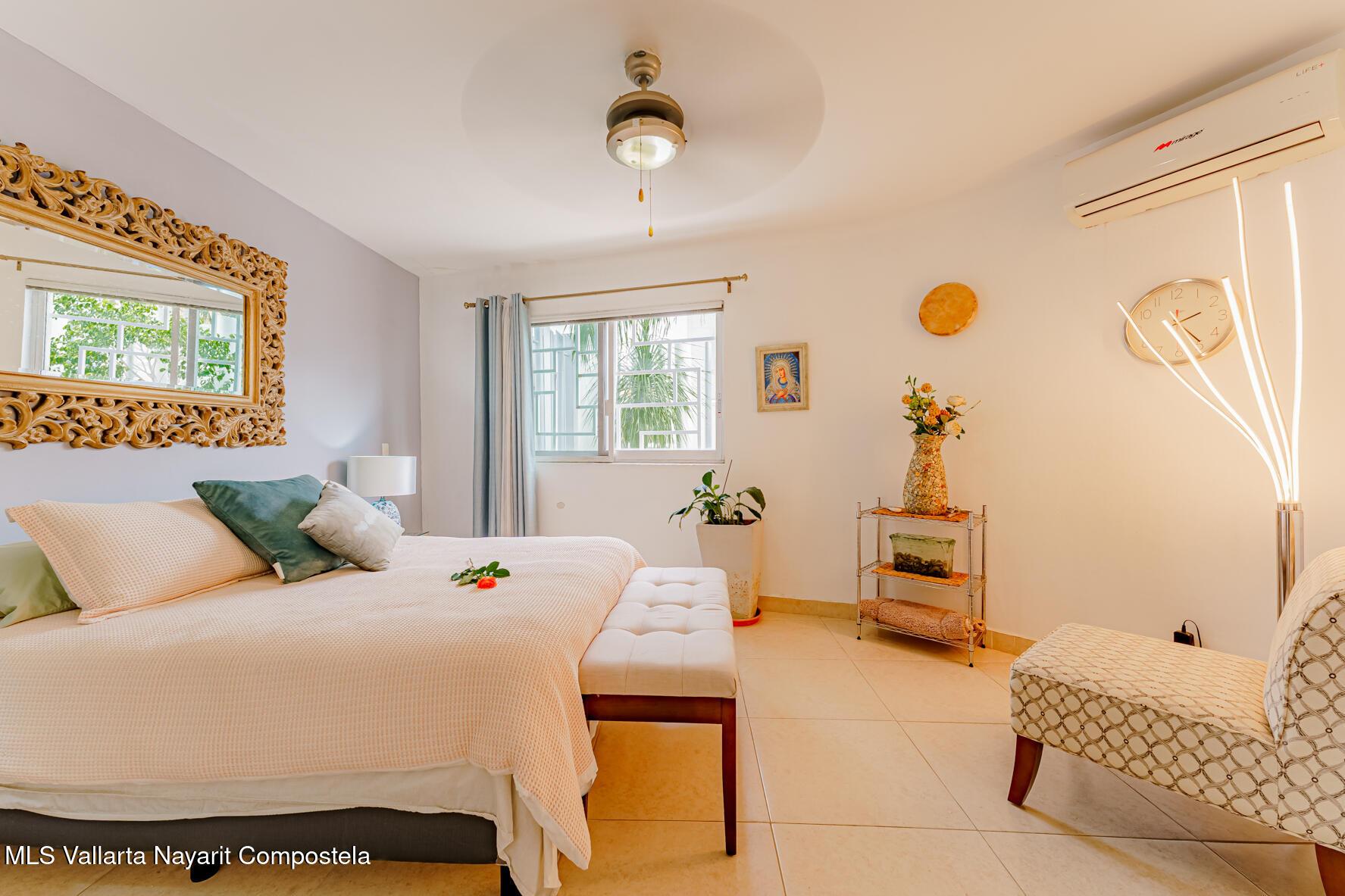 Modern Primary Residence & Boutique Income Property - Colonia D�az Ordaz (Versalles Area, Puerto Vallarta)Discover modern, contemporary living in a neighborhood that offers relaxing upscale living, just minutes from Versalles, Plaza Caracol, and Puerto Vallarta's top hospitals. This exceptional primary residence and income-producing property is tucked away on a quiet private street with its own neighborhood security guard patrolling on an enclosed motorcycle � ensuring peace and safety for residents and guests alike.The main home spans two levels and features two spacious master bedrooms, each with its own ensuite bathroom, plus a half bath for guests. The elegant living room boasts soaring high ceilings, filling the space with natural light and creating an airy,