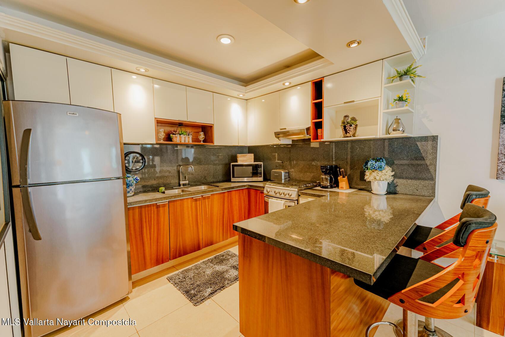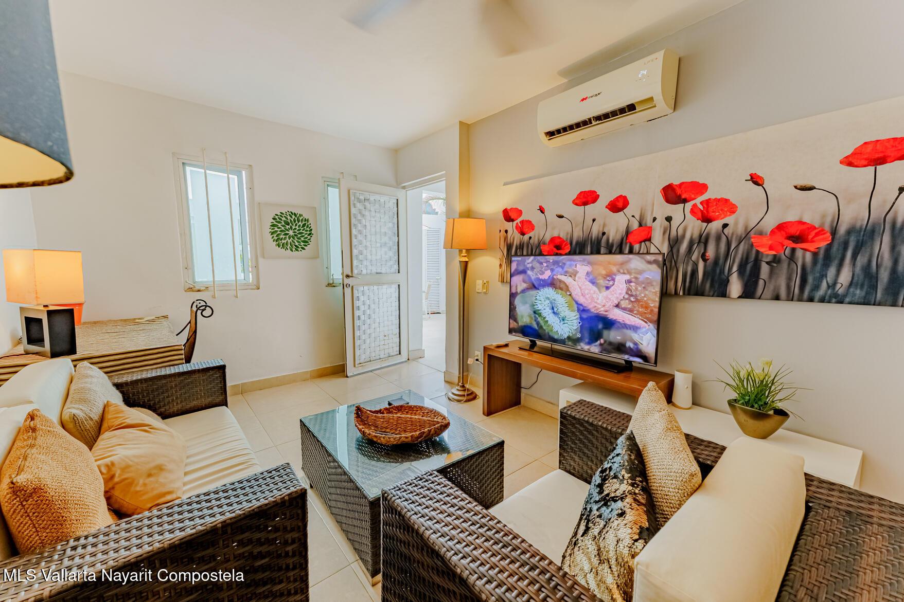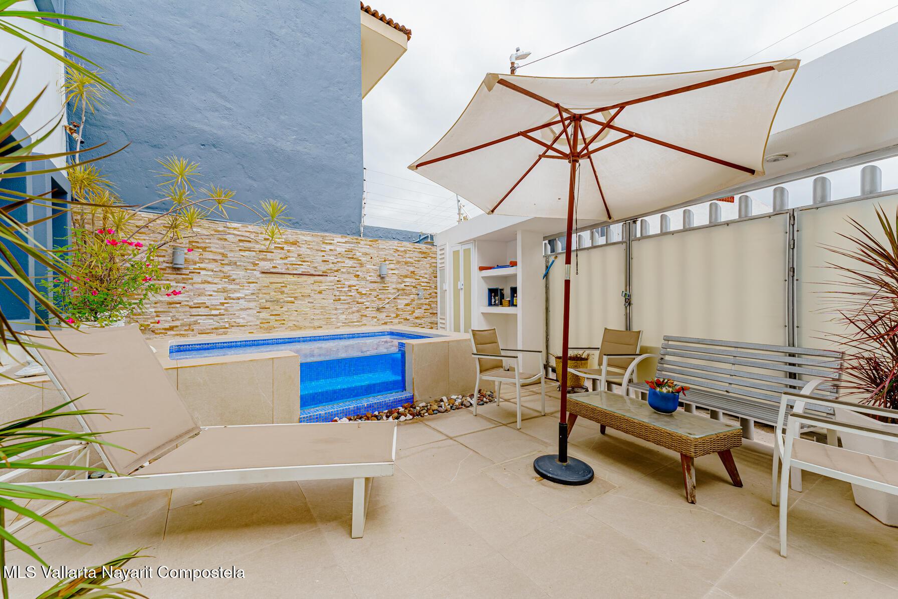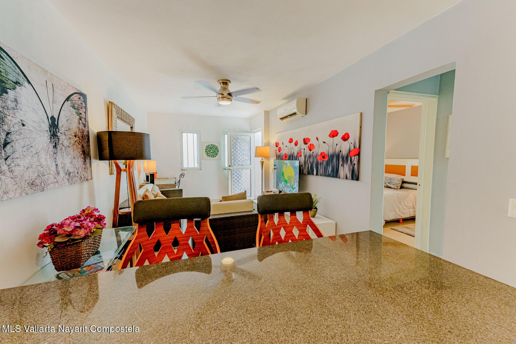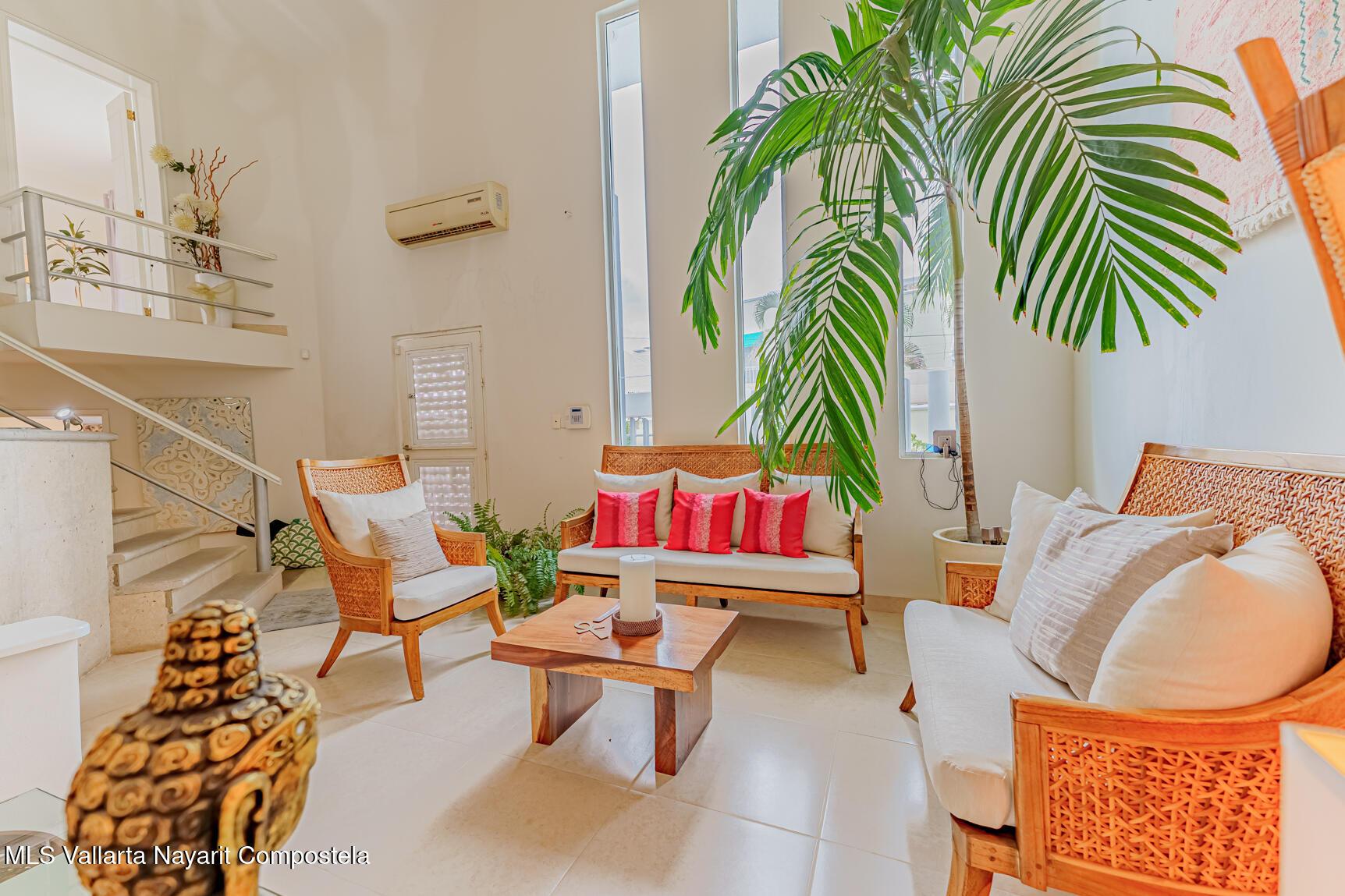 Modern Primary Residence & Boutique Income Property - Colonia D�az Ordaz (Versalles Area, Puerto Vallarta)Discover modern, contemporary living in a neighborhood that offers relaxing upscale living, just minutes from Versalles, Plaza Caracol, and Puerto Vallarta's top hospitals. This exceptional primary residence and income-producing property is tucked away on a quiet private street with its own neighborhood security guard patrolling on an enclosed motorcycle � ensuring peace and safety for residents and guests alike.The main home spans two levels and features two spacious master bedrooms, each with its own ensuite bathroom, plus a half bath for guests. The elegant living room boasts soaring high ceilings, filling the space with natural light and creating an airy,