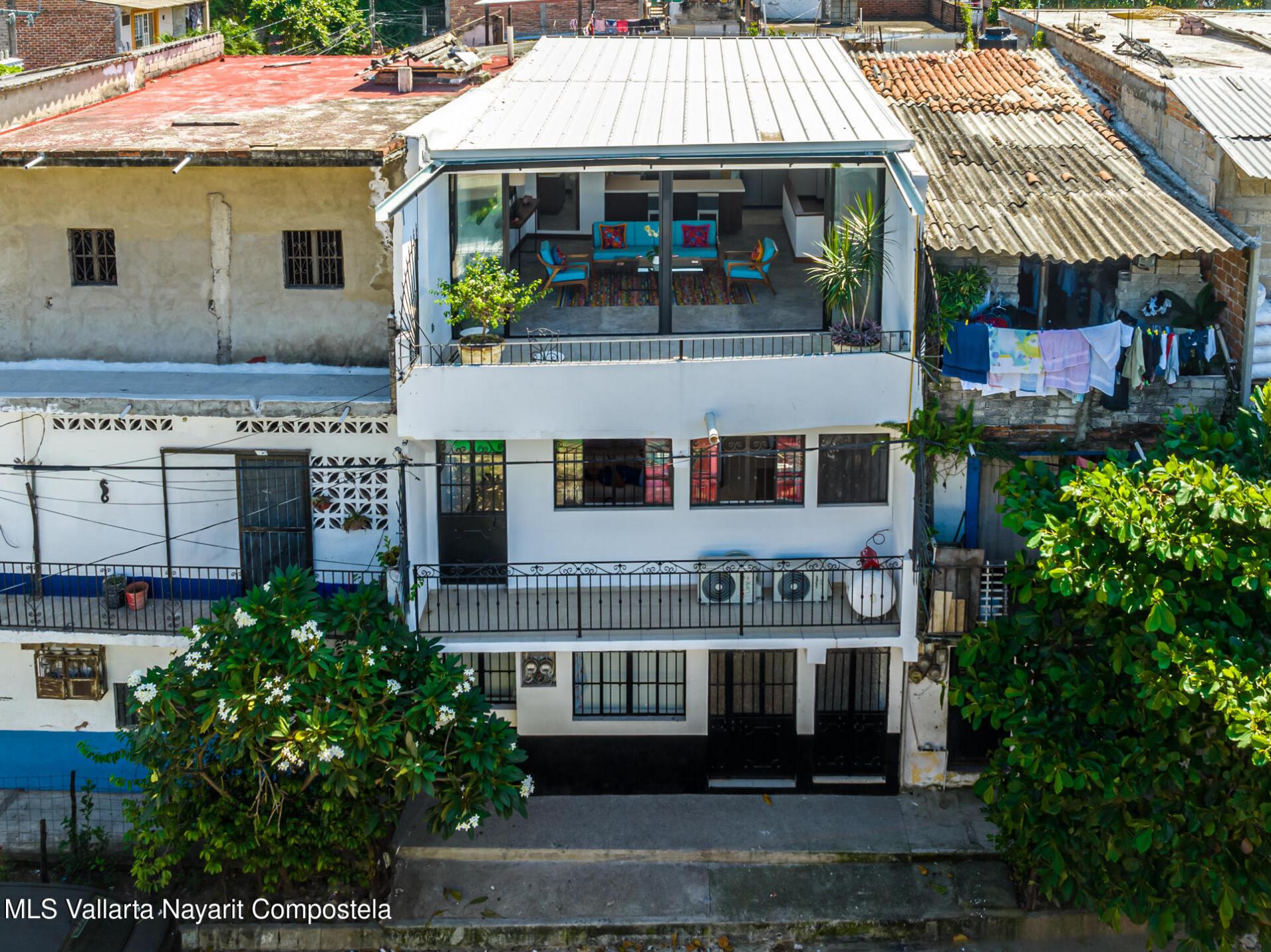 Located in the up and coming neighborhood of Las Canoas, which is on the flat, right behind the Romantic Zone. An easy walk to everything you would ever need, including the produce market, restaurants, bars, cafes and beach clubs of Romantic Zone. This property consists of 2 separate fully contained units both with separate entrances and electricity meters. On the ground floor you have a 1 bedroom unit and on the top 2 floors is a 2 bedroom 2.5 bathroom unit where you can enjoy the wide open plan living room and kitchen with views up the mountain.