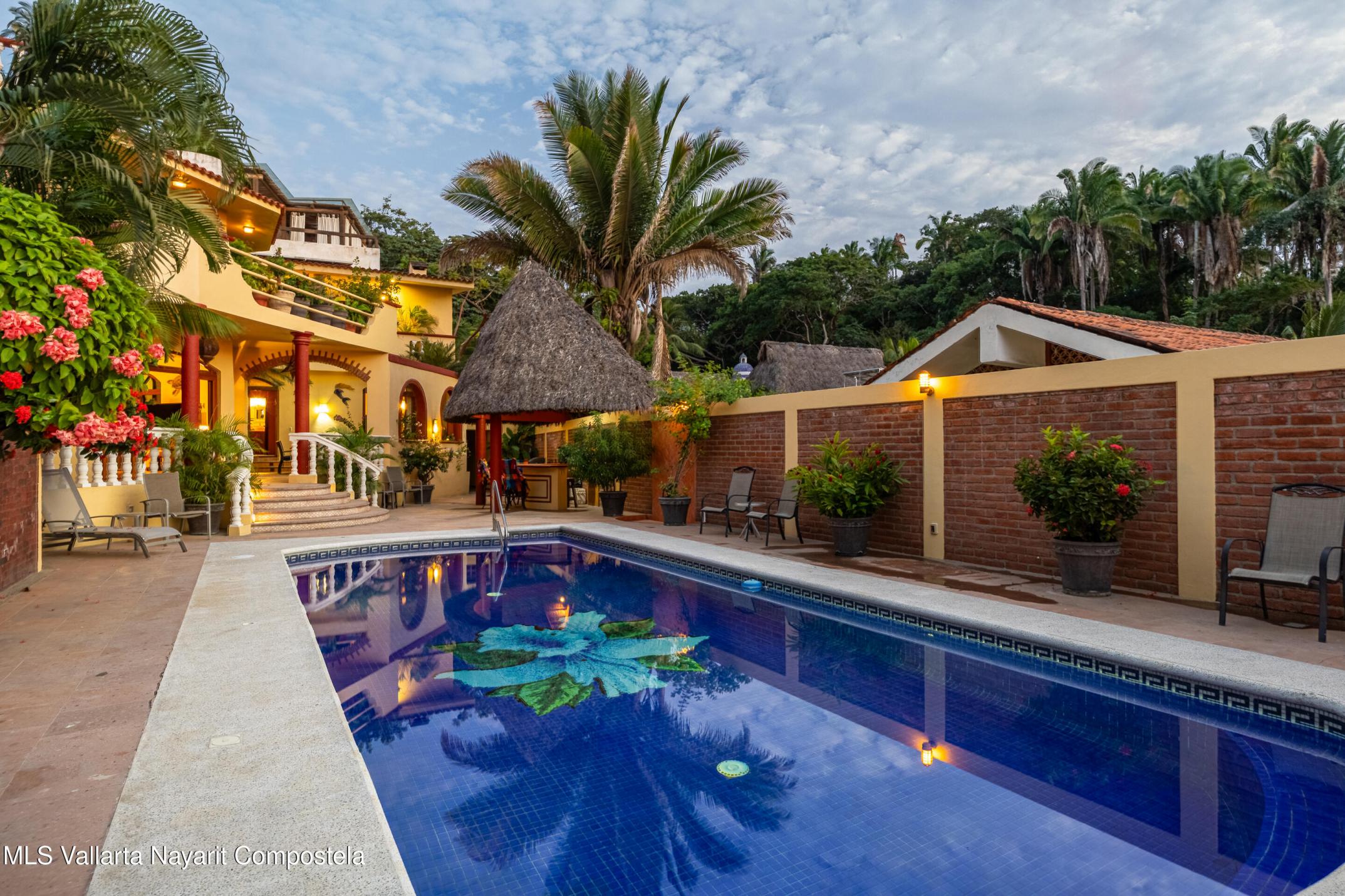 *Casa de Suenos Magicos* is an exquisite multi-level coastal retreat that captures the essence of relaxed beach living and exceptional investment potential. Ideally positioned directly across from the beach, the home enjoys panoramic ocean views that will *remain uninterrupted*, thanks to the natural slope of the street below. This rare advantage ensures that the beauty of the Pacific is always front and center--whether you're lounging by the pool, enjoying sunset cocktails, or relaxing on one of the many terraces.At the heart of the property is a spectacular *40-foot heated pool* with underwater benches designed for sunning, reading, or simply unwinding in the water.