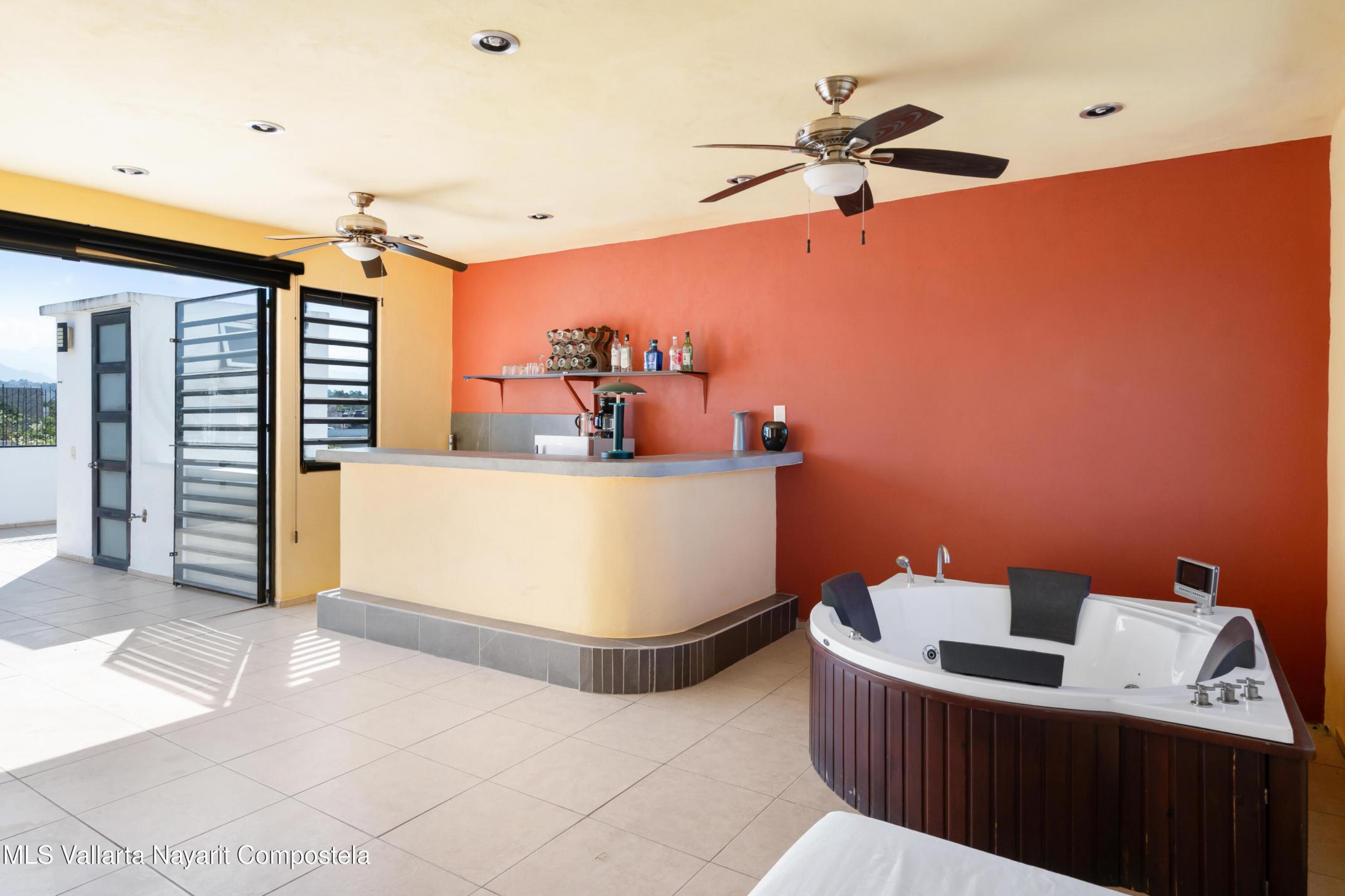 Bar, BBQ Area, Fence / Wall, Fountain, Hot Tub/Jacuzzi, Outdoor Shower, Patio, Rooftop Terrace, Sitting Area, Storage Area, Terrace