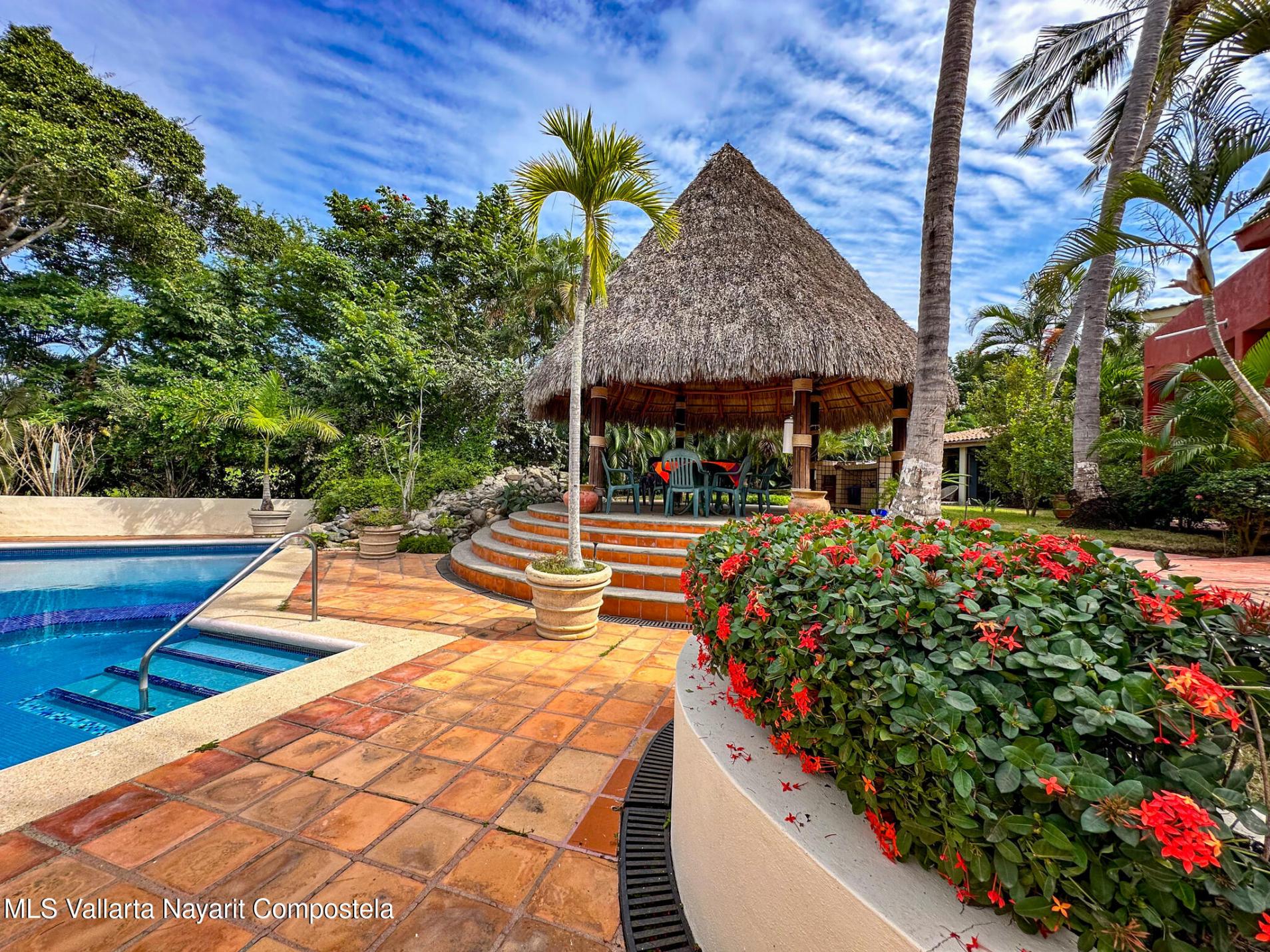 Ubicada en el prestigioso Flamingos Country Club Estates en Bucerias, Nayarit, esta encantadora residencia ofrece un estilo de vida relajado y elegante, rodeado de exuberante vegetacion y un ambiente tranquilo, similar a un resort. La casa cuenta con espacios interiores luminosos y confortables, y una distribucion funcional, ideal tanto para el dia a dia como para el entretenimiento. Las areas sociales se integran armoniosamente con los acogedores espacios exteriores, perfectos para disfrutar del entorno tropical, mientras que el ambiente general brinda privacidad, tranquilidad y una sensacion de retiro dentro de una comunidad privada y bien mantenida.