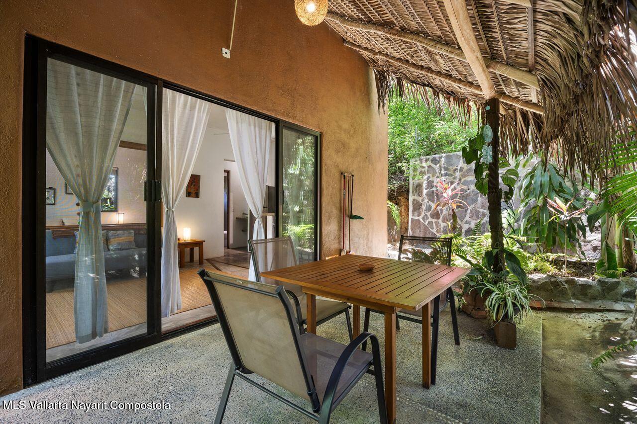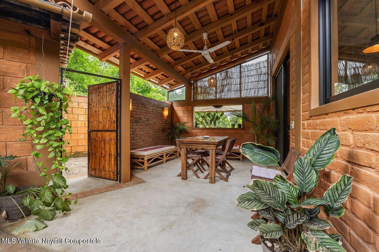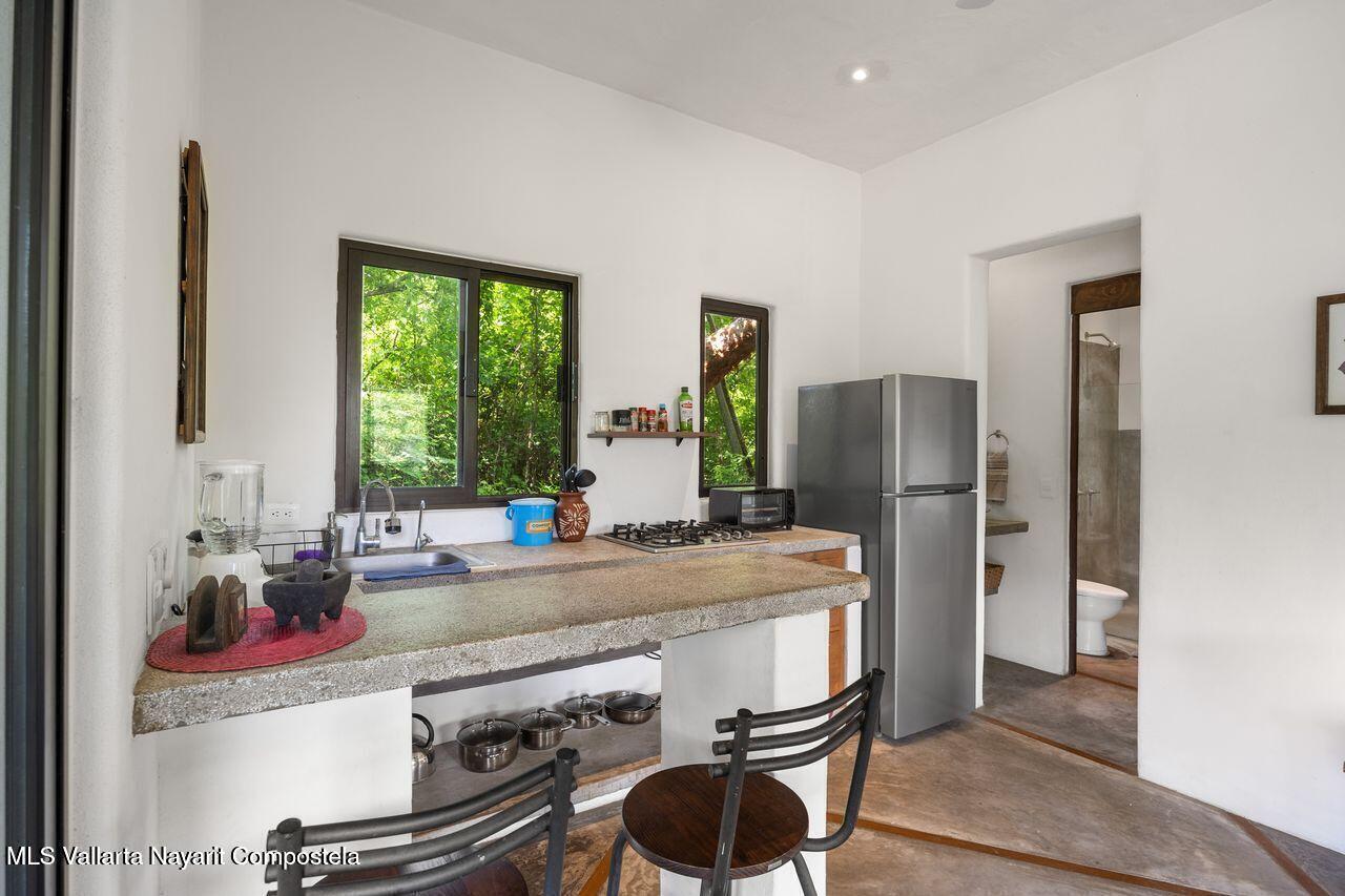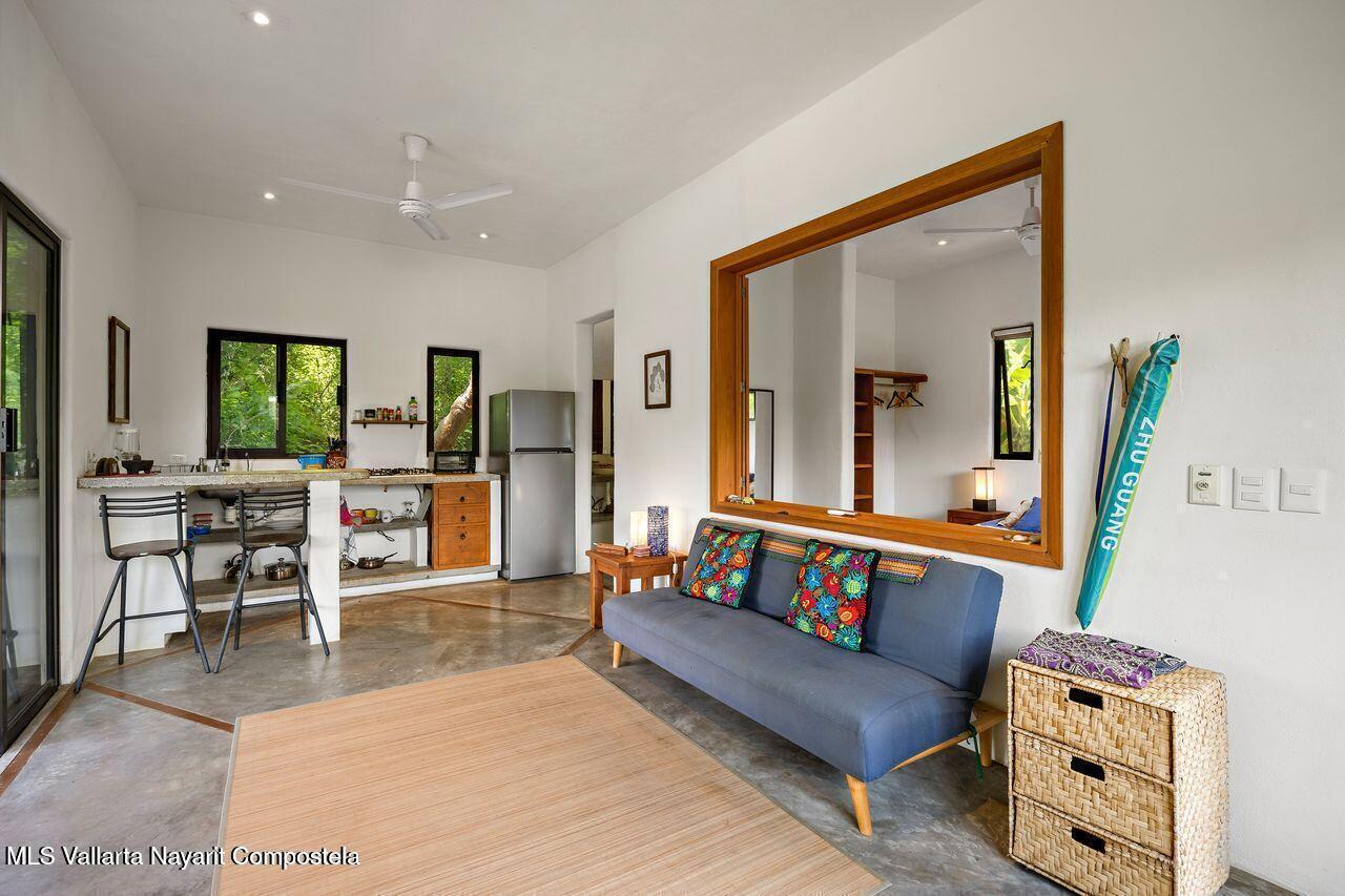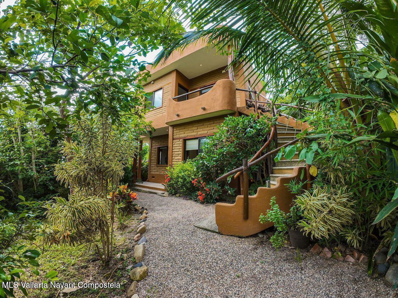 Casa de los Pajaros is a peaceful multi-unit retreat nestled next to the Tierra Tropical Polo Club in San Pancho. Situated on an 870 m lot, the property features approximately 400 m of construction spread across three buildings. Two buildings house four fully furnished one-bedroom apartments, each with a full kitchen, living area, private bedroom, and bathroom--perfect for guests or rental income. The main two-story residence includes an open-concept kitchen and living space, a half bath, and a laundry/storage room. Upstairs, the master suite offers a walk-in closet, an office nook, and a balcony leading to a rooftop terrace with stunning jungle and polo field views.