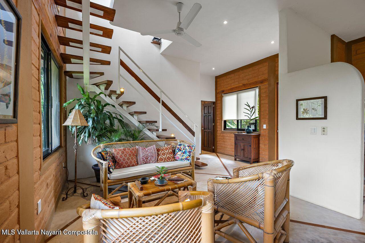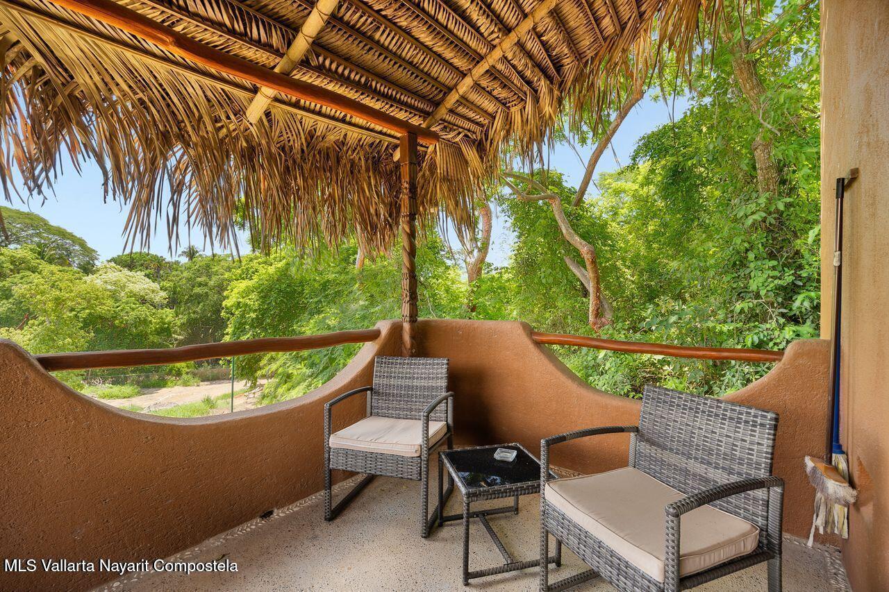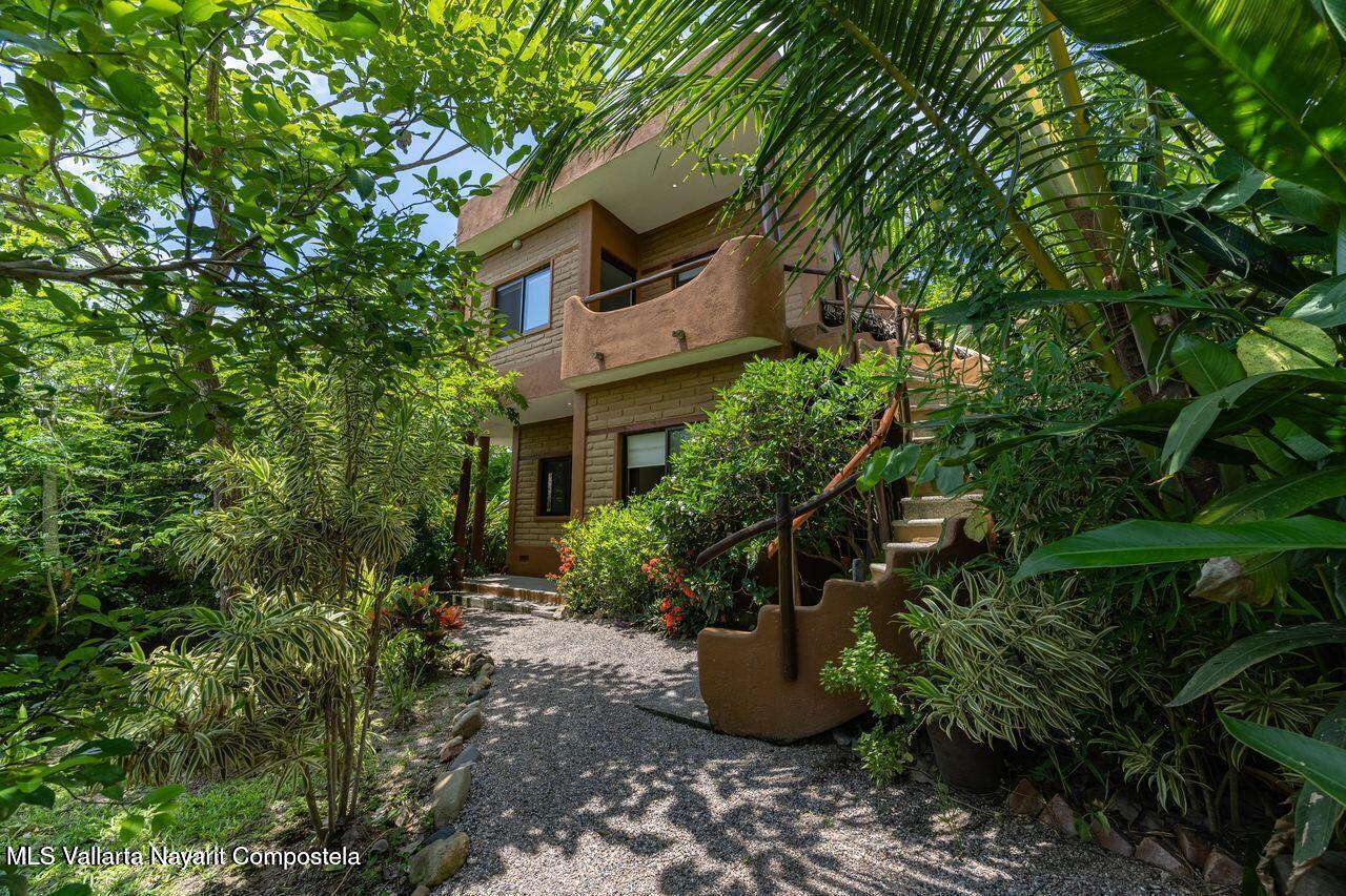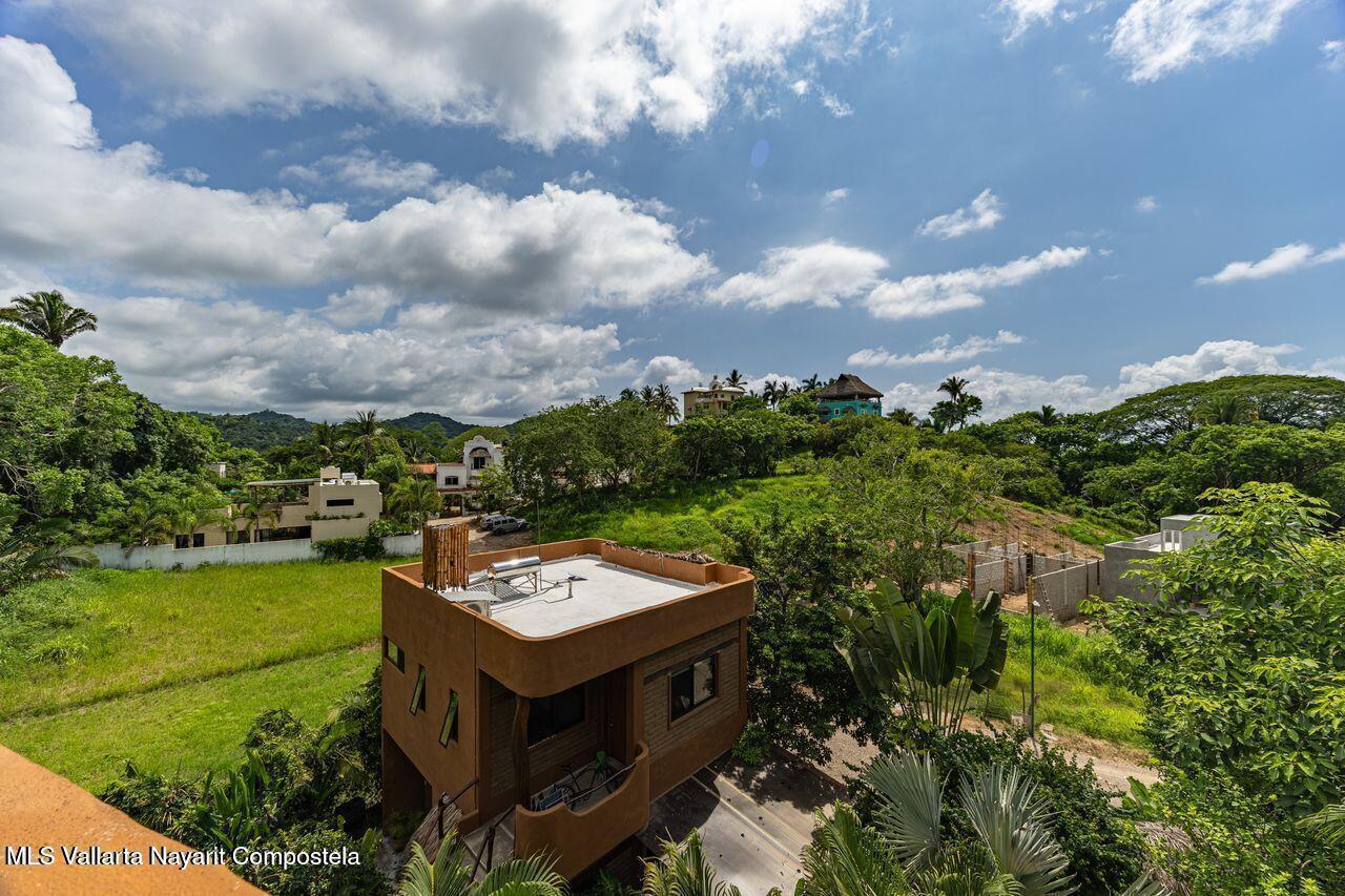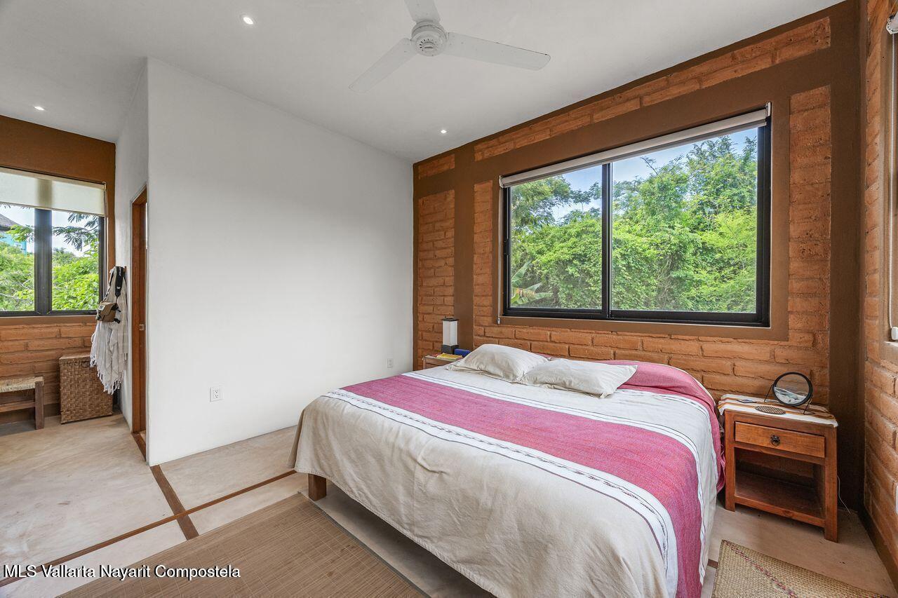 Casa de los Pajaros is a peaceful multi-unit retreat nestled next to the Tierra Tropical Polo Club in San Pancho. Situated on an 870 m lot, the property features approximately 400 m of construction spread across three buildings. Two buildings house four fully furnished one-bedroom apartments, each with a full kitchen, living area, private bedroom, and bathroom--perfect for guests or rental income. The main two-story residence includes an open-concept kitchen and living space, a half bath, and a laundry/storage room. Upstairs, the master suite offers a walk-in closet, an office nook, and a balcony leading to a rooftop terrace with stunning jungle and polo field views.