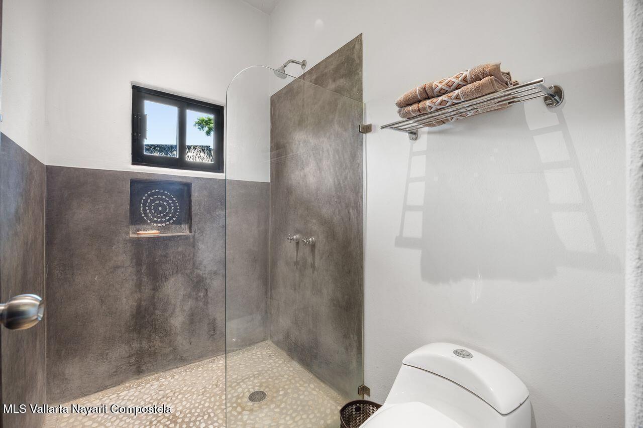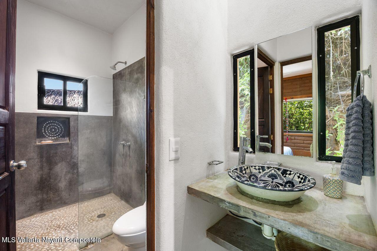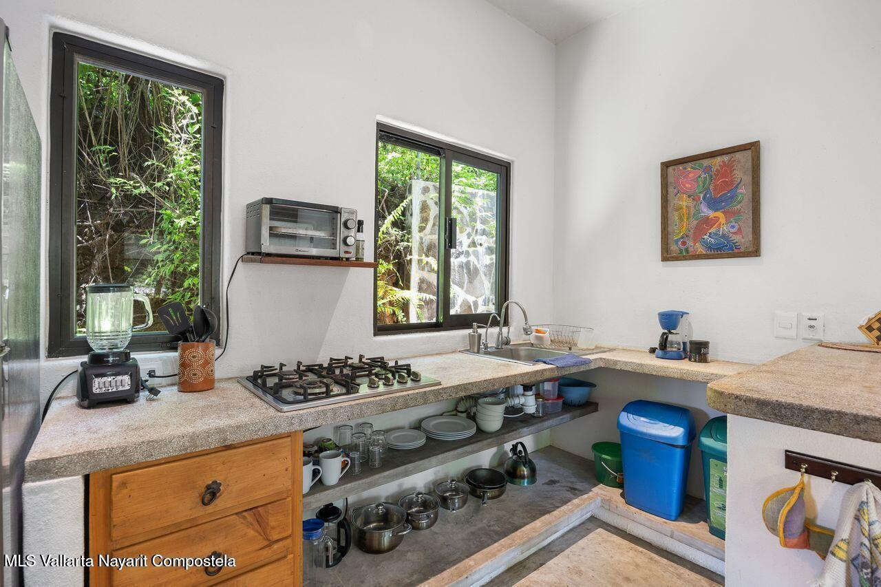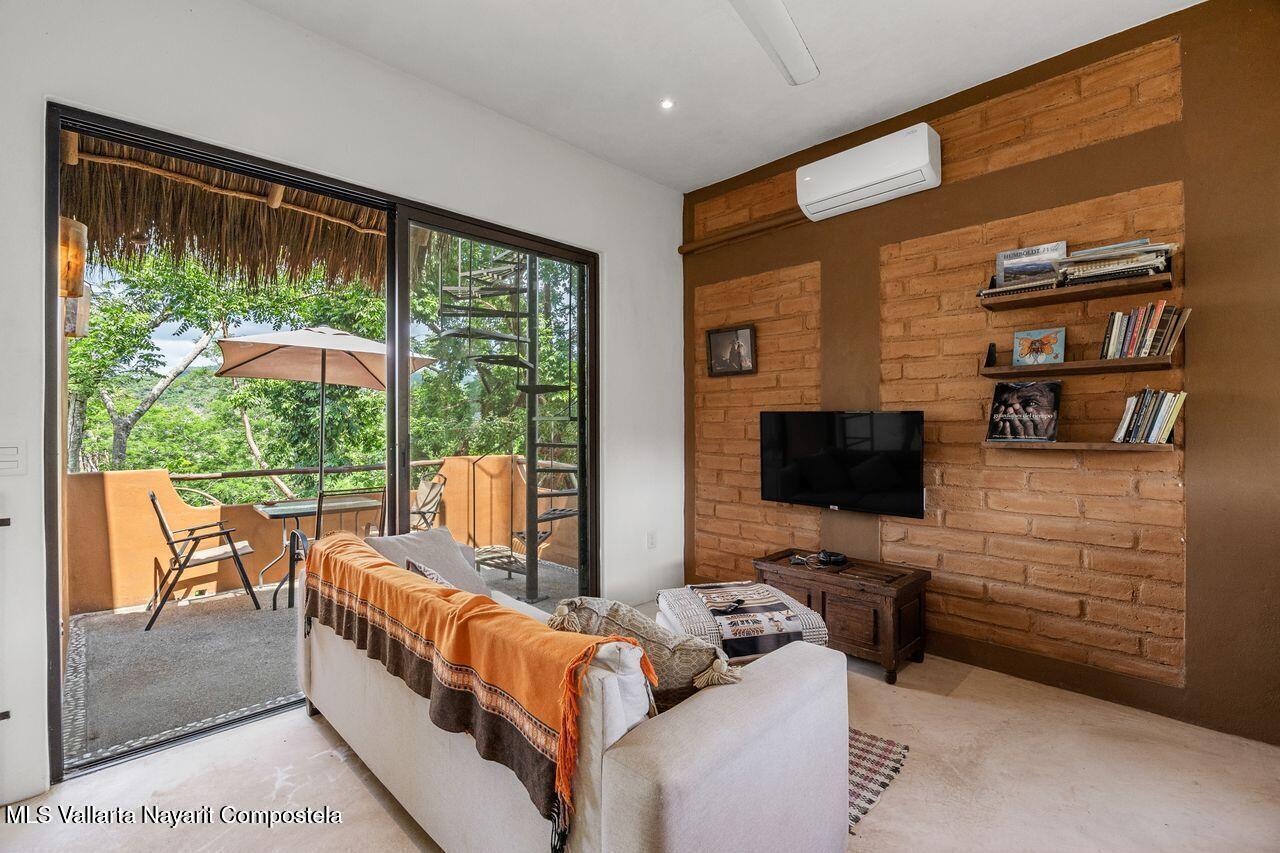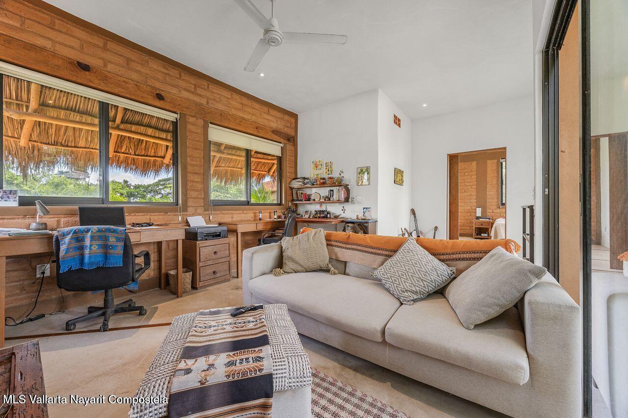 Casa de los Pajaros is a peaceful multi-unit retreat nestled next to the Tierra Tropical Polo Club in San Pancho. Situated on an 870 m lot, the property features approximately 400 m of construction spread across three buildings. Two buildings house four fully furnished one-bedroom apartments, each with a full kitchen, living area, private bedroom, and bathroom--perfect for guests or rental income. The main two-story residence includes an open-concept kitchen and living space, a half bath, and a laundry/storage room. Upstairs, the master suite offers a walk-in closet, an office nook, and a balcony leading to a rooftop terrace with stunning jungle and polo field views.