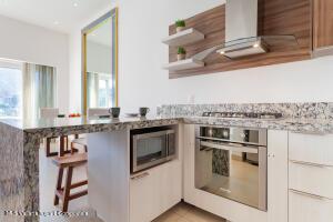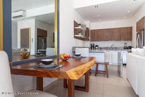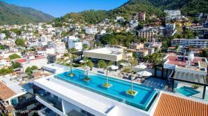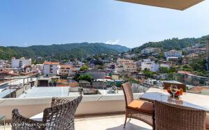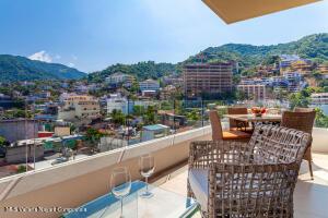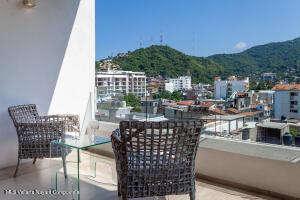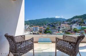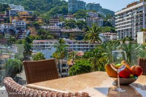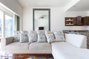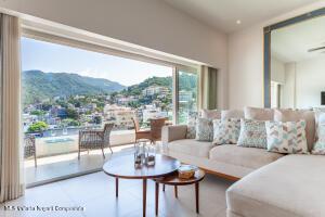 This elegant yet relaxed corner residence on the 6th floor offers 2 terraces with exceptional natural light and cross-ventilation, perfectly positioned in the heart of the Romantic Zone, just three blocks from the beach. The thoughtfully designed layout features one spacious bedroom with a private balcony and views of the mountains and town, along with two full bathrooms and a generous sitting area ideal for entertaining or relaxing. An ample corner terrace captures city and mountain views, providing the perfect setting for outdoor lounging or al fresco dining. The en-suite primary bedroom opens directly onto the back terrace, enhancing the indoor-outdoor lifestyle. Additional features include a dedicated laundry area and the convenience of being completely furnished and fully equipped