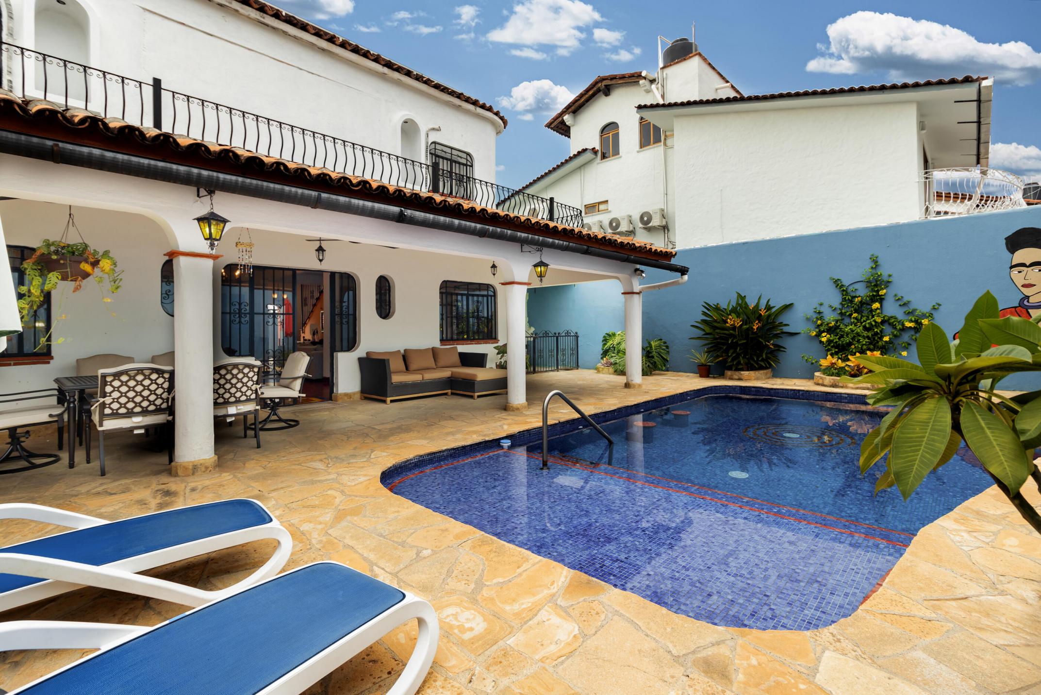 Discover a timeless retreat in Las Gaviotas, one of Puerto Vallarta's most historic and prestigious neighborhoods. This area offers a rare glimpse into classic Mexican architecture, with beautifully maintained homes on expansive lots, generous setbacks, and a peaceful atmosphere. This well-constructed, two-level residence boasts 3 spacious bedrooms, 2.5 baths, and sits on a quiet street, providing ample privacy and a refreshing escape from the city's bustle. The home features a sizeable yard with a lovely swimming pool; ideal for relaxing or entertaining. With flat streets and sidewalks, the neighborhood is perfect for easy walking, and the home is conveniently located near top-tier shopping, schools, fine dining, and all that Banderas Bay has to offer.