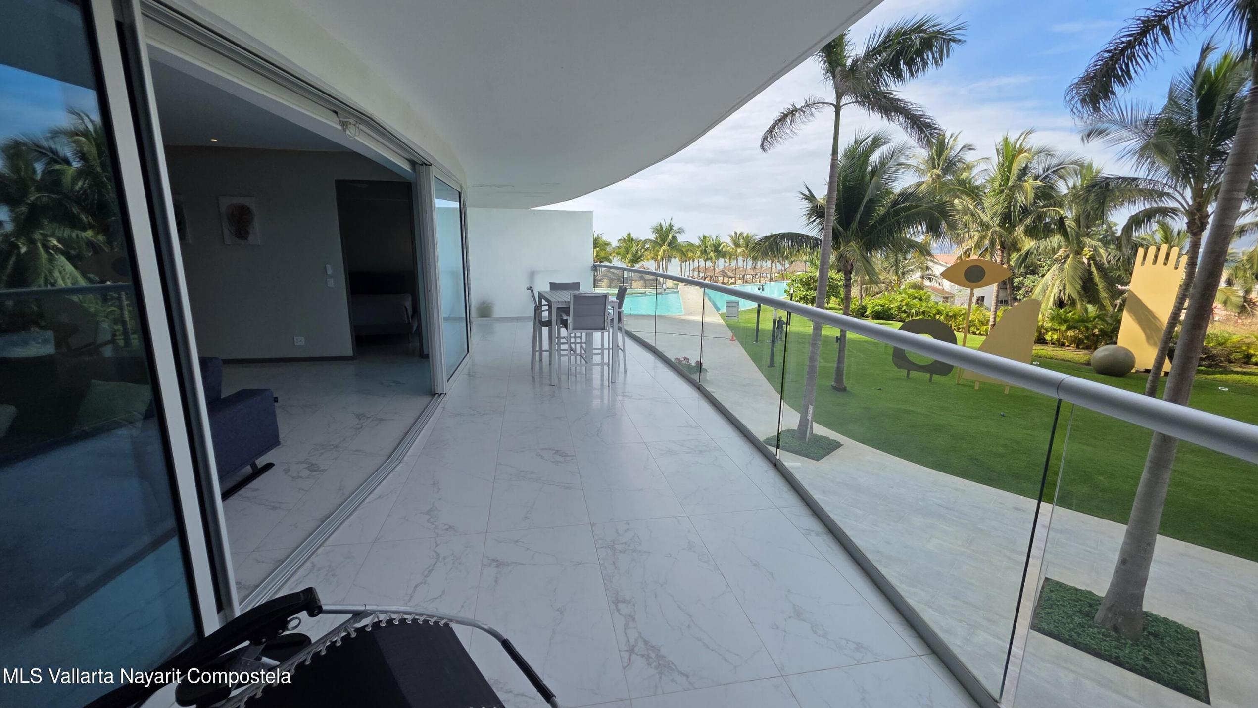 Vive el privilegio de estar frente al mar en Nuevo Vallarta. Este exclusivo departamento de 3 recamaras y 3 banos combina diseno contemporaneo, amplitud y una ubicacion inmejorable dentro de uno de los desarrollos mas prestigiosos de la zona. Sus espacios interiores se integran de forma natural con una terraza privada, ideal para disfrutar vistas al oceano, la brisa marina y los atardeceres de la Bahia de Banderas. La distribucion es funcional y luminosa, perfecta tanto para residencia como para inversion. El desarrollo ofrece amenidades tipo resort, albercas, rooftop con vistas panoramicas, seguridad y acceso directo a la playa. Una propiedad que eleva el estilo de vida costero y garantiza plusvalia en una de las zonas con mayor demanda inmobiliaria.