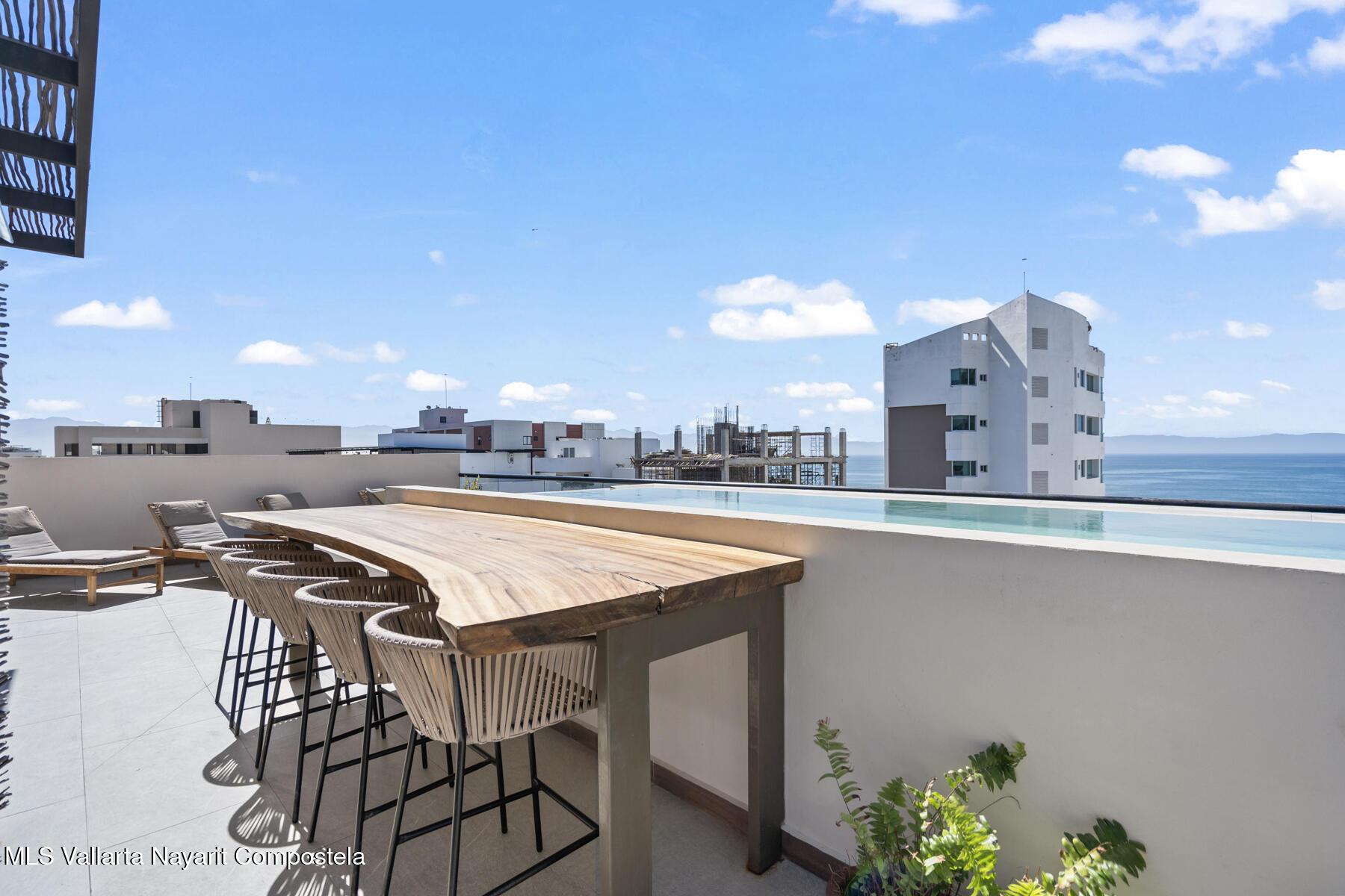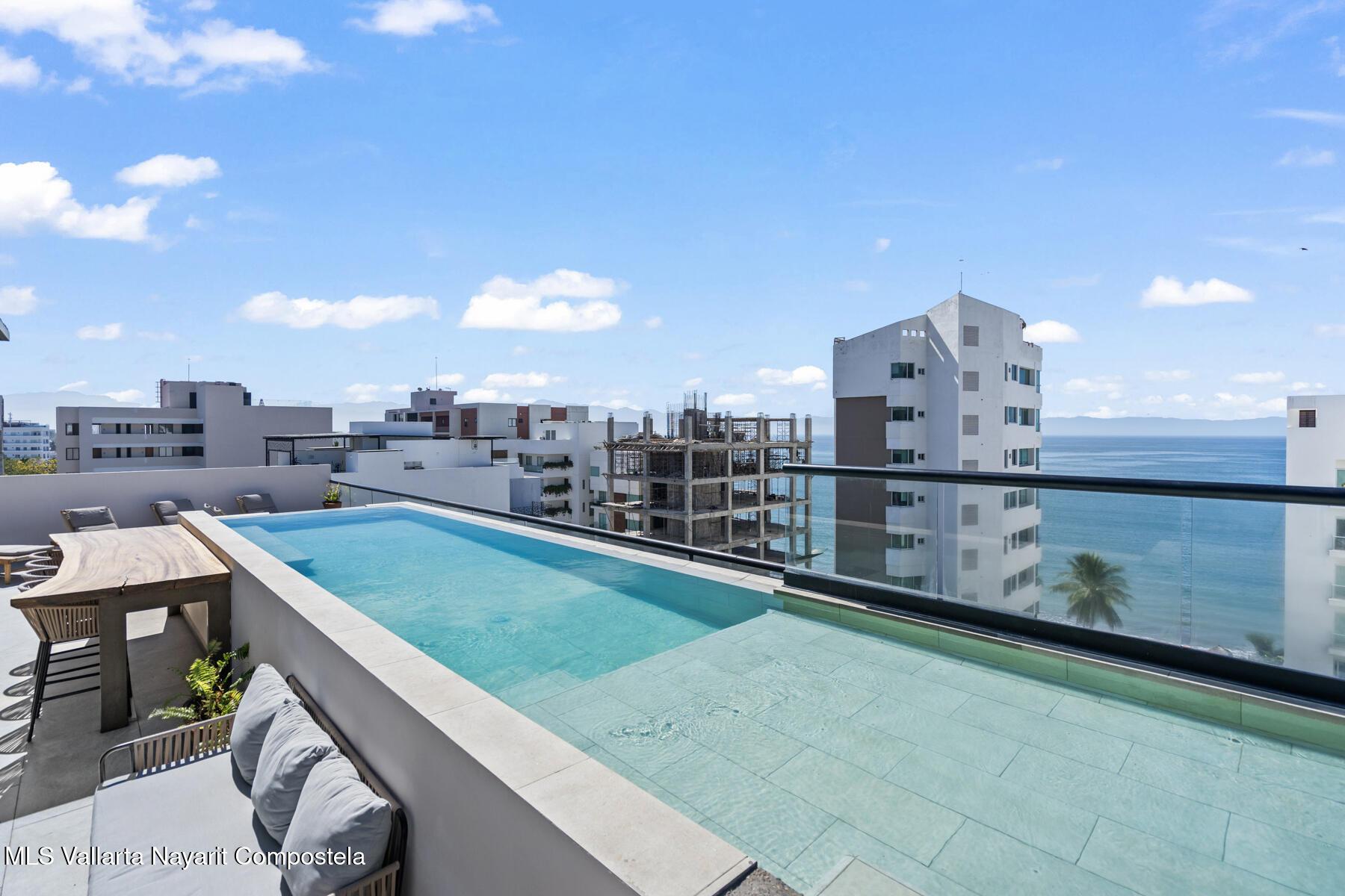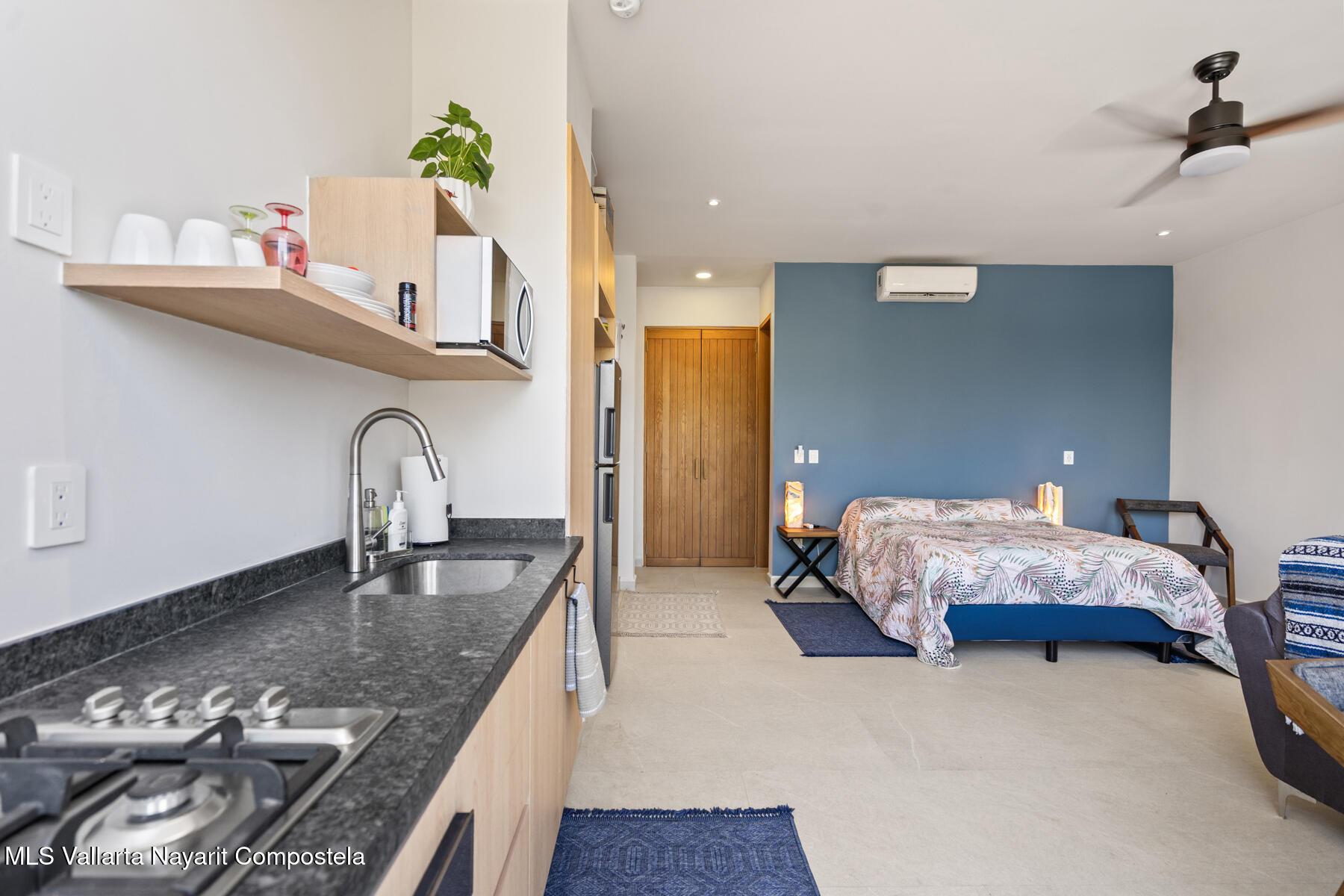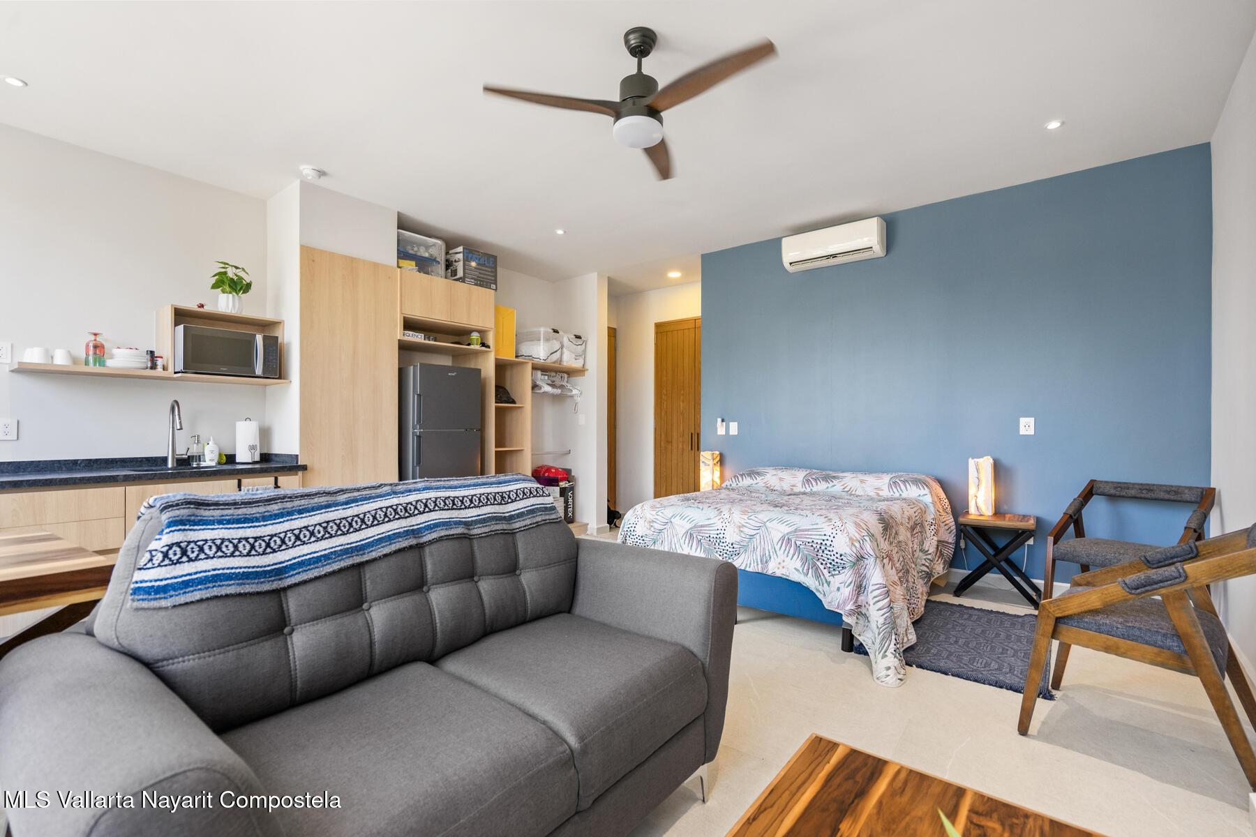 Este condominio tipo estudio ofrece una comoda combinacion de confort y vida costera, ideal para los amantes de la playa. Cuenta con un diseno de concepto abierto que integra el area de descanso y la sala de estar, amueblado con estilo contemporaneo que incluye cama, sofa y una pequena mesa de comedor. La cocineta esta equipada con refrigerador, estufa y microondas, ademas de espacio funcional para preparar alimentos. El bano dispone de accesorios modernos, ducha o banera y almacenamiento eficiente. Entre sus amenidades destacan la piscina en la azotea y el area de BBQ con vistas al oceano. Ubicado a una cuadra del mar, se entrega completamente amueblado y listo para habitar.