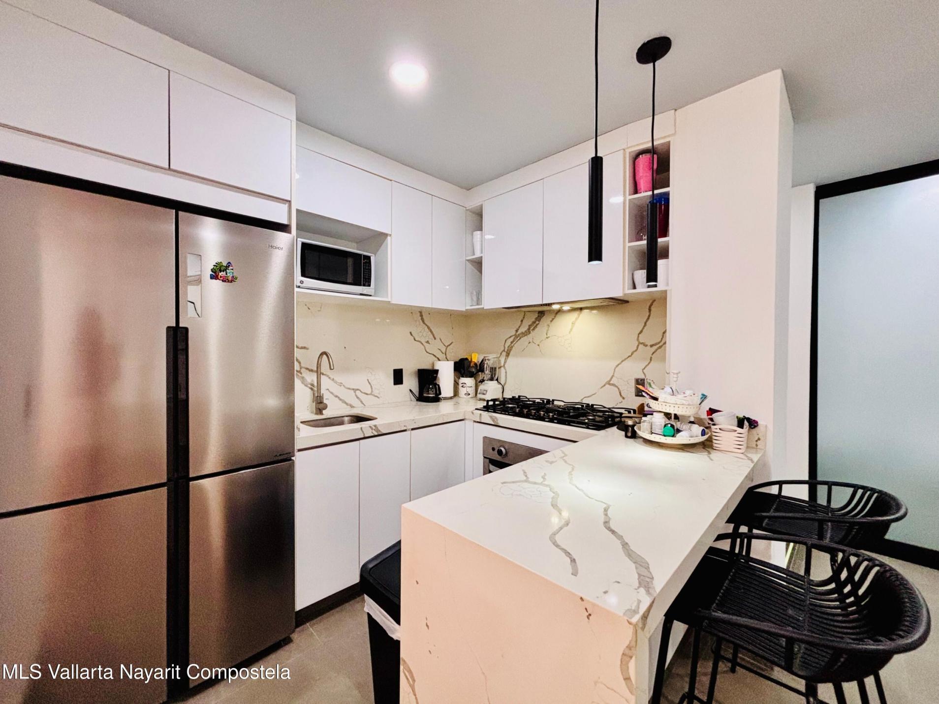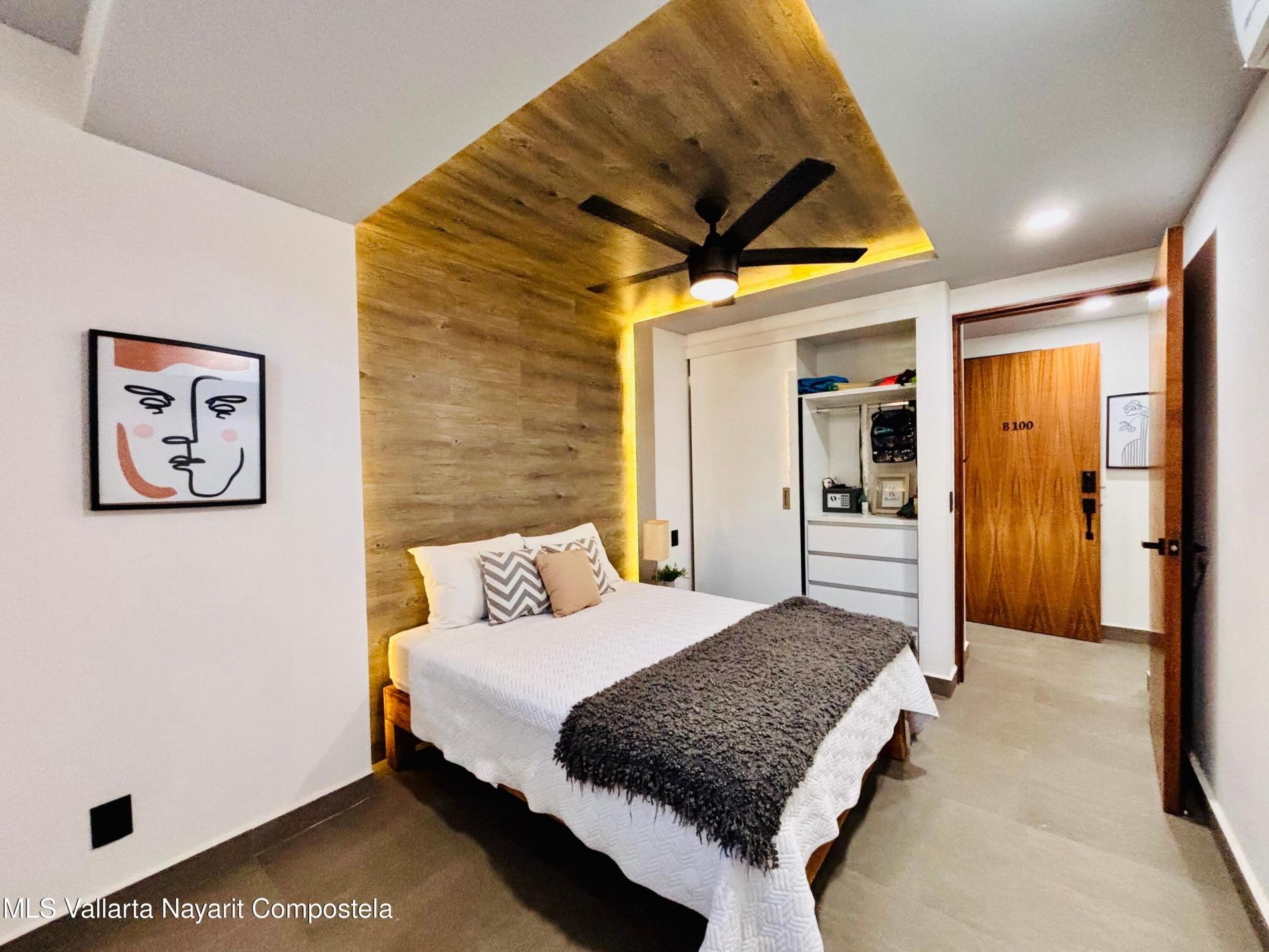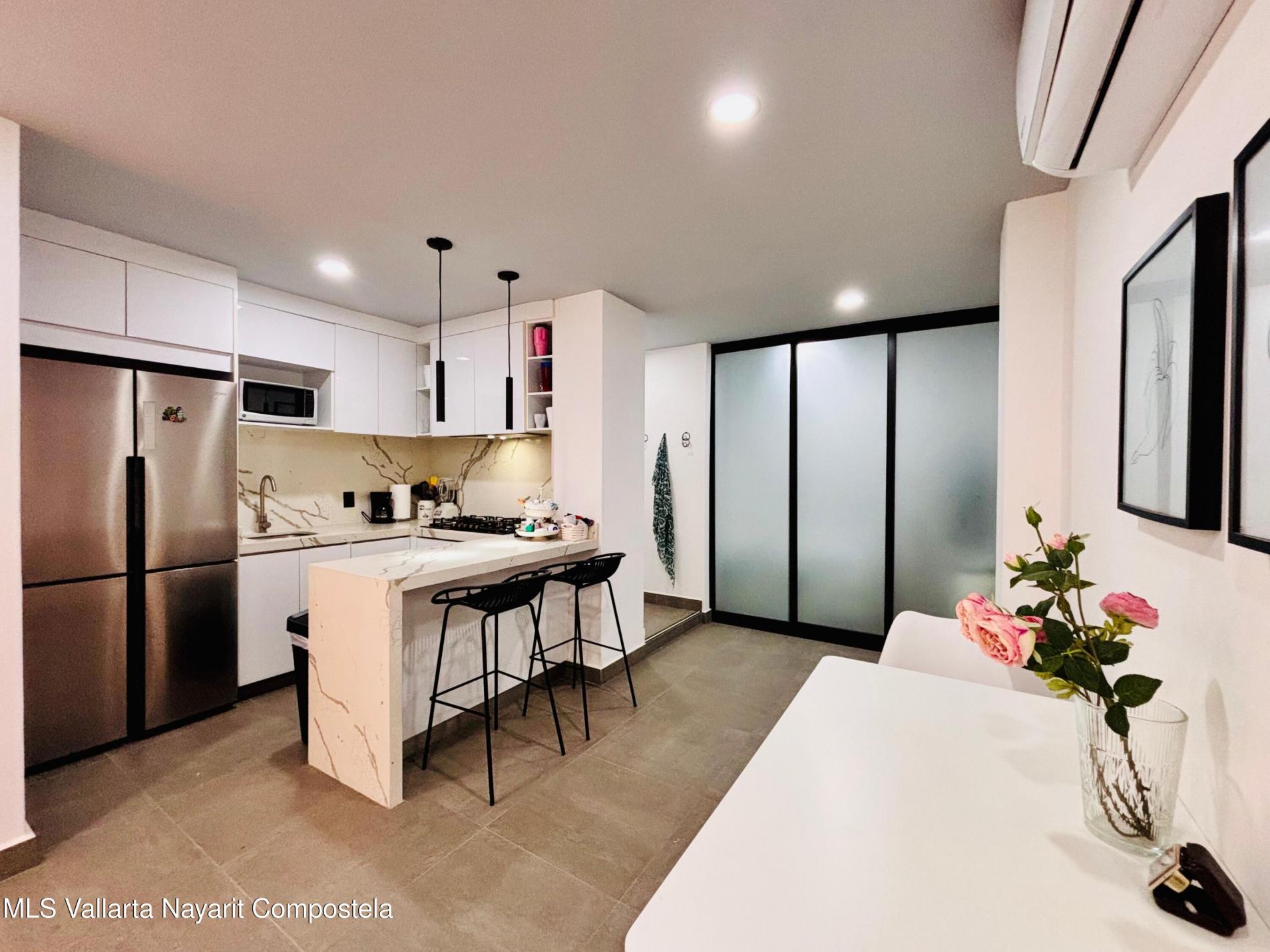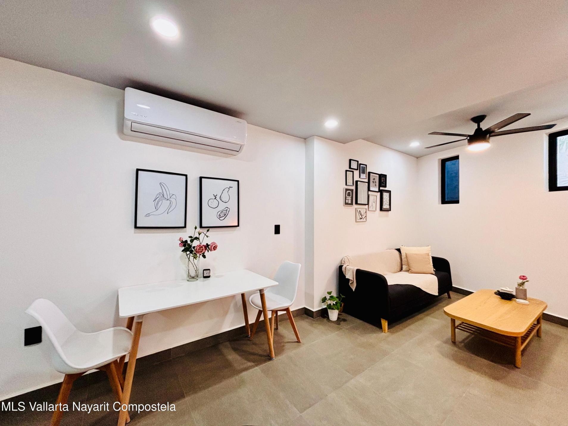 Unidad inteligentemente disenada y completamente amueblada, a solo 5 cuadras de las playas de la Zona Dorada. Cuenta con una configuracion flexible que permite dos Areas de recamara independientes, ambas con puerta (una tradicional y una corrediza), asi como dos banos completos, acabados de alta calidad, barra de cuarzo, muros y plafones con acentos de color y mini-splits, lo que la hace especialmente atractiva para rentas vacacionales y estancias prolongadas. La cocina cuenta con refrigerador, horno, parrilla, microondas y centro de lavado. Incluye un cajon de estacionamiento y bodega. El roof top tiene alberca tipo infinito, area de asadores, bano, regadera y amplios espacios para reuniones y asolearse.