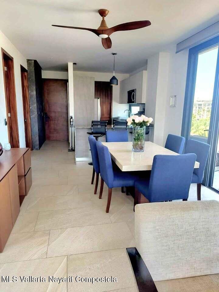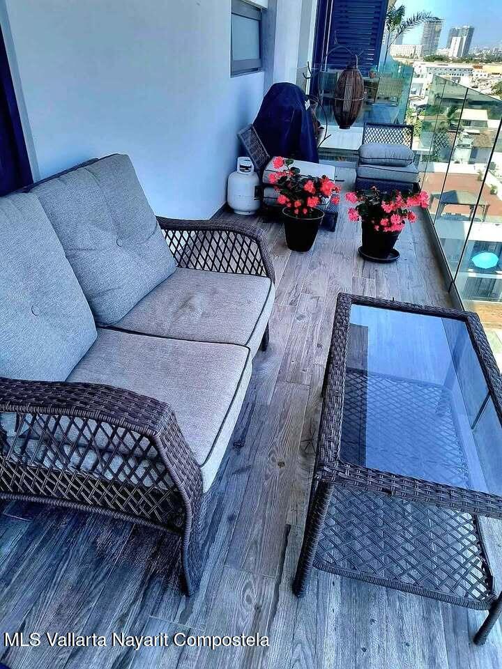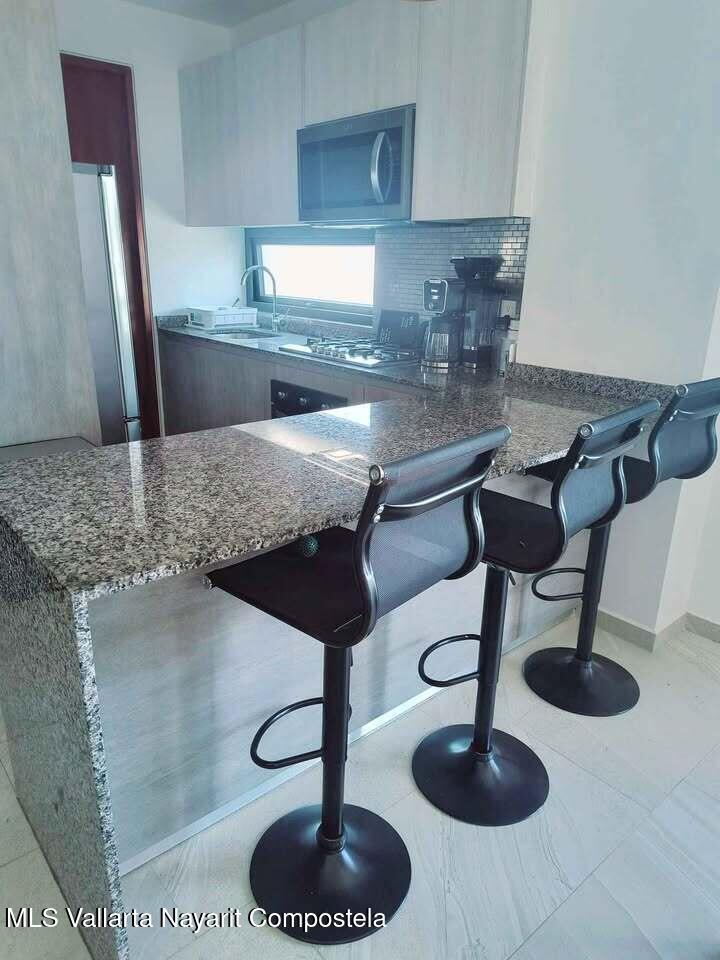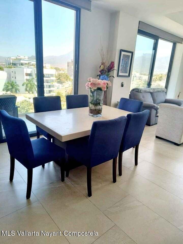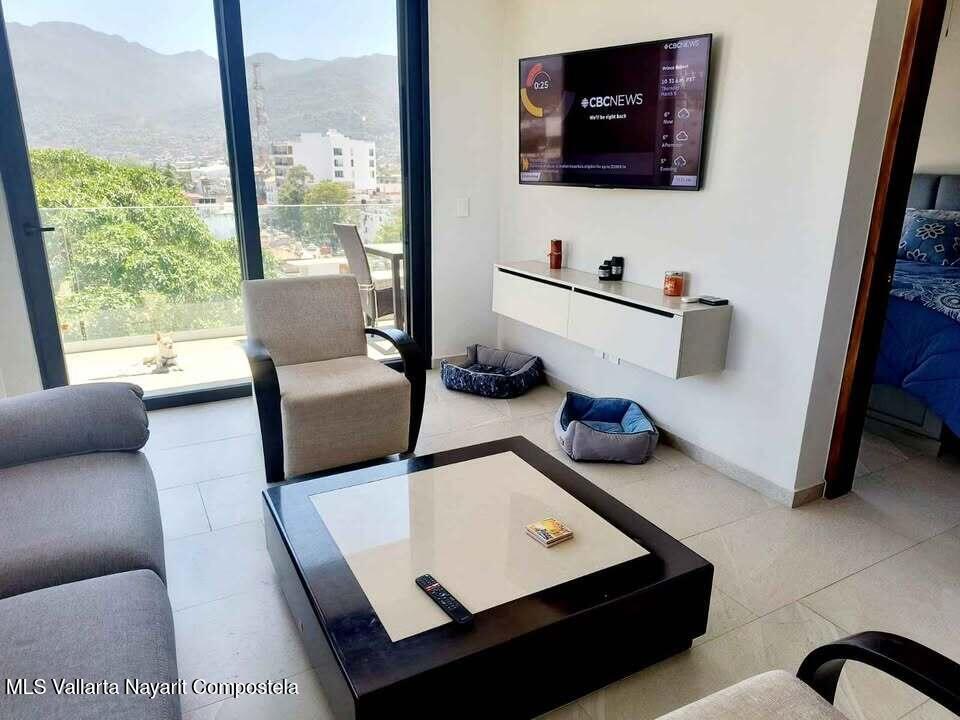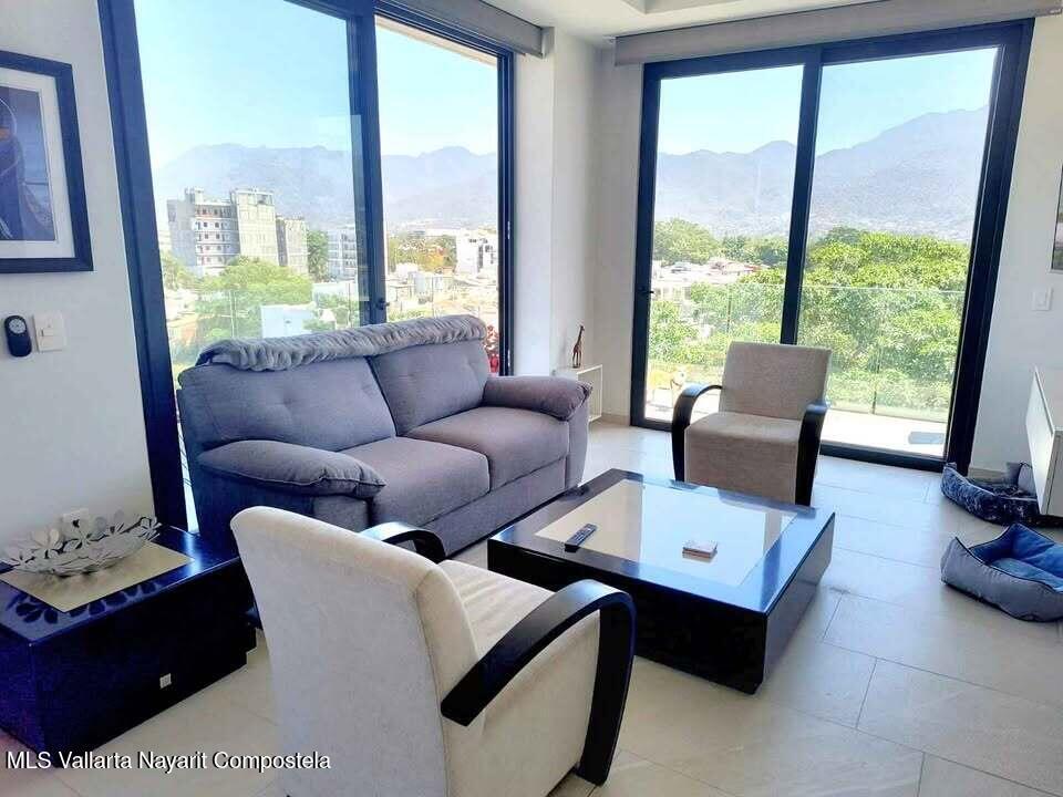 Descubre la mezcla perfecta entre lujo moderno y vida urbana en Punto Madeira, justo en el corazon de la Versalles, la colonia favorita de Puerto Vallarta. Este depa es puro estilo y luz; los espacios abiertos se iluminan increible gracias a sus enormes ventanales de piso a techo. Como puedes ver en las fotos, estas ventanas enmarcan unas vistas brutales de la Sierra Madre y la ciudad, creando el fondo perfecto para tu dia a dia. La vibra entre la sala y el comedor es super comoda, ideal tanto para relajarte en el sofa como para armar una cena con amigos, todo conectado a una cocina moderna que no solo se ve genial, sino que es super funcional.