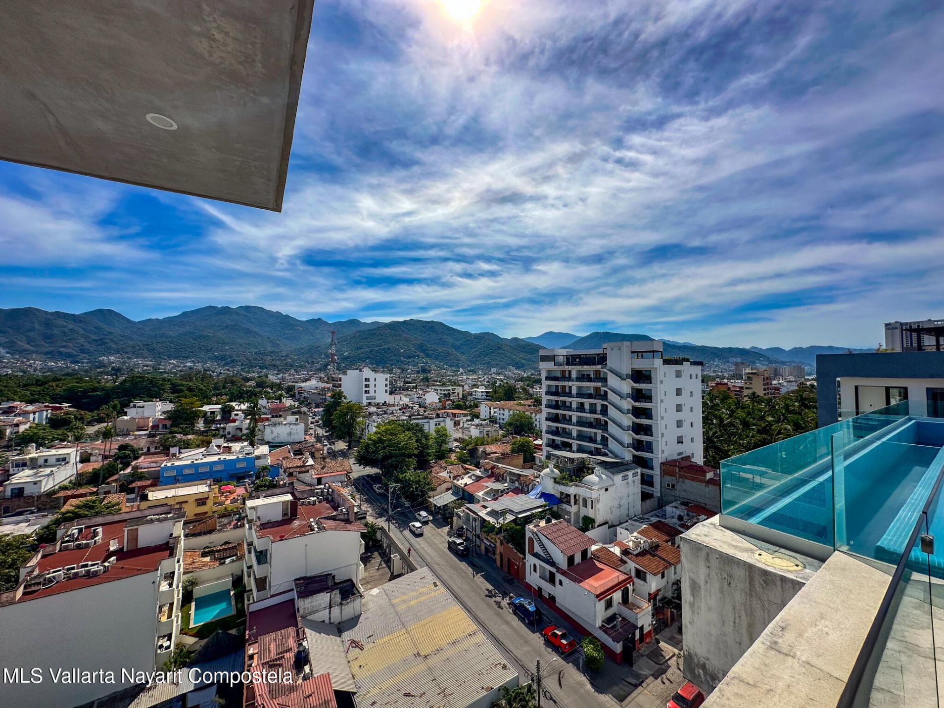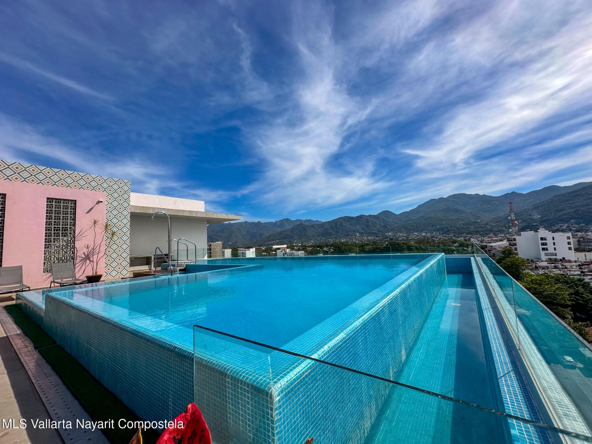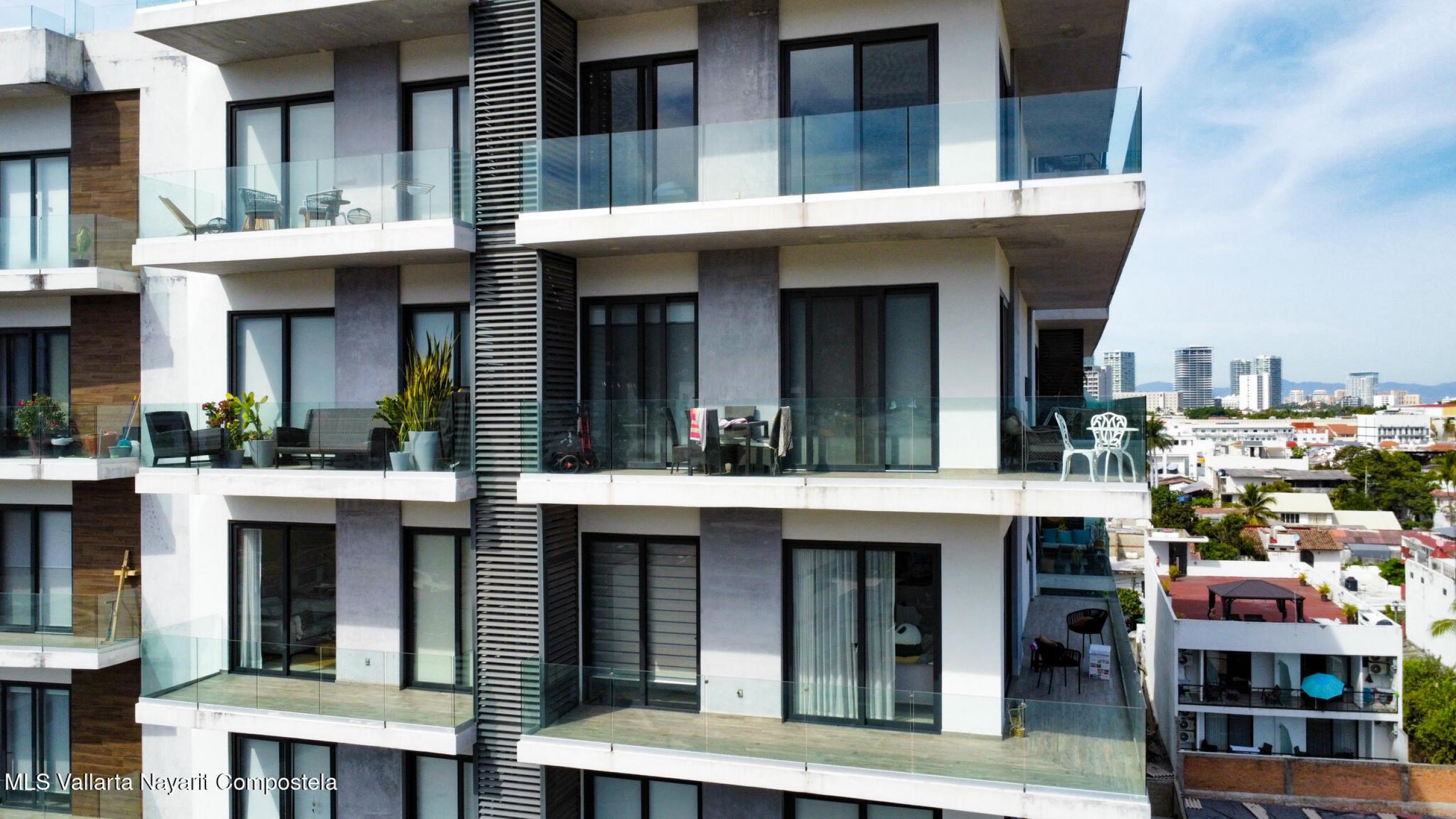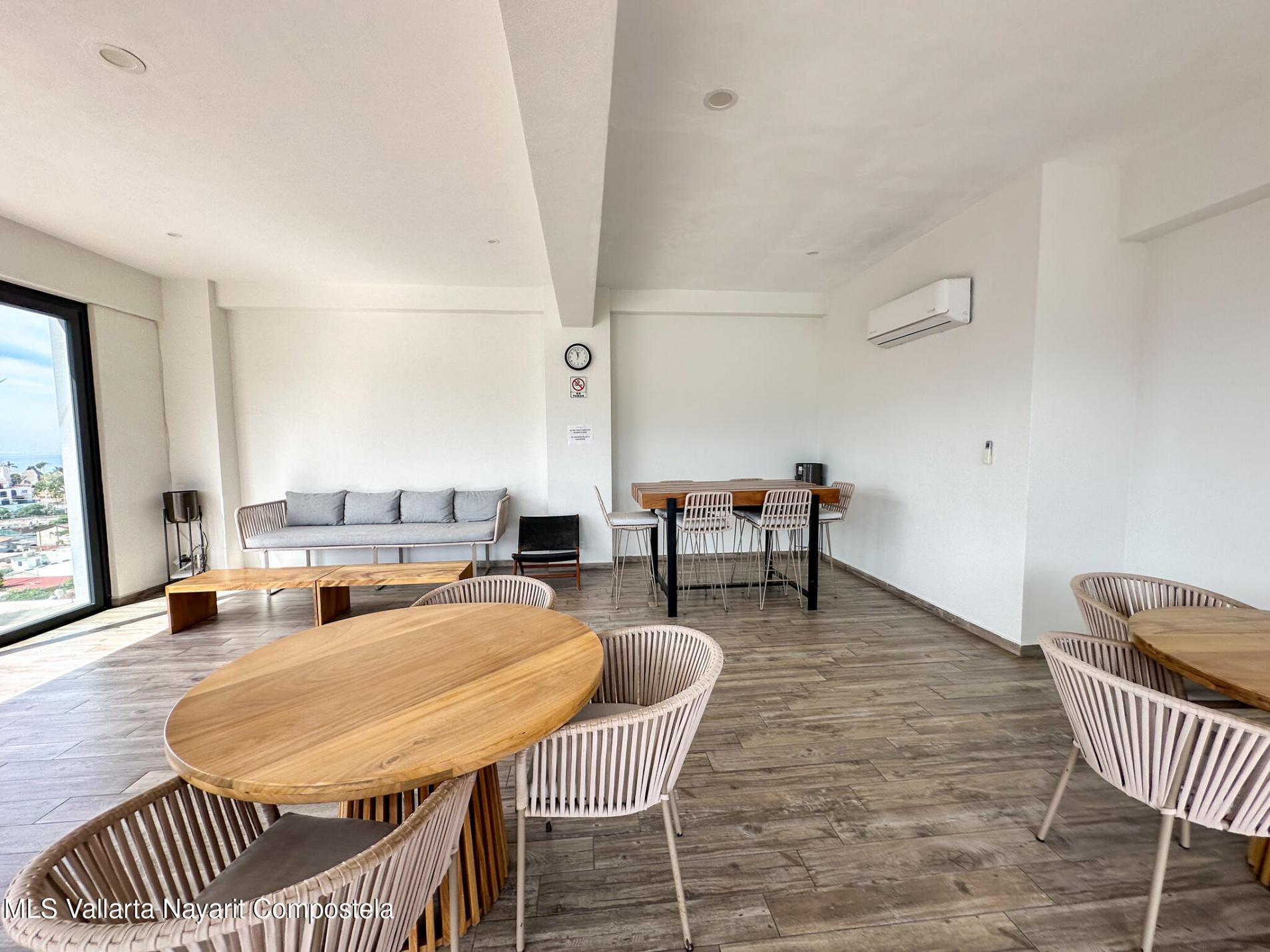 Descubre la mezcla perfecta entre lujo moderno y vida urbana en Punto Madeira, justo en el corazon de la Versalles, la colonia favorita de Puerto Vallarta. Este depa es puro estilo y luz; los espacios abiertos se iluminan increible gracias a sus enormes ventanales de piso a techo. Como puedes ver en las fotos, estas ventanas enmarcan unas vistas brutales de la Sierra Madre y la ciudad, creando el fondo perfecto para tu dia a dia. La vibra entre la sala y el comedor es super comoda, ideal tanto para relajarte en el sofa como para armar una cena con amigos, todo conectado a una cocina moderna que no solo se ve genial, sino que es super funcional.