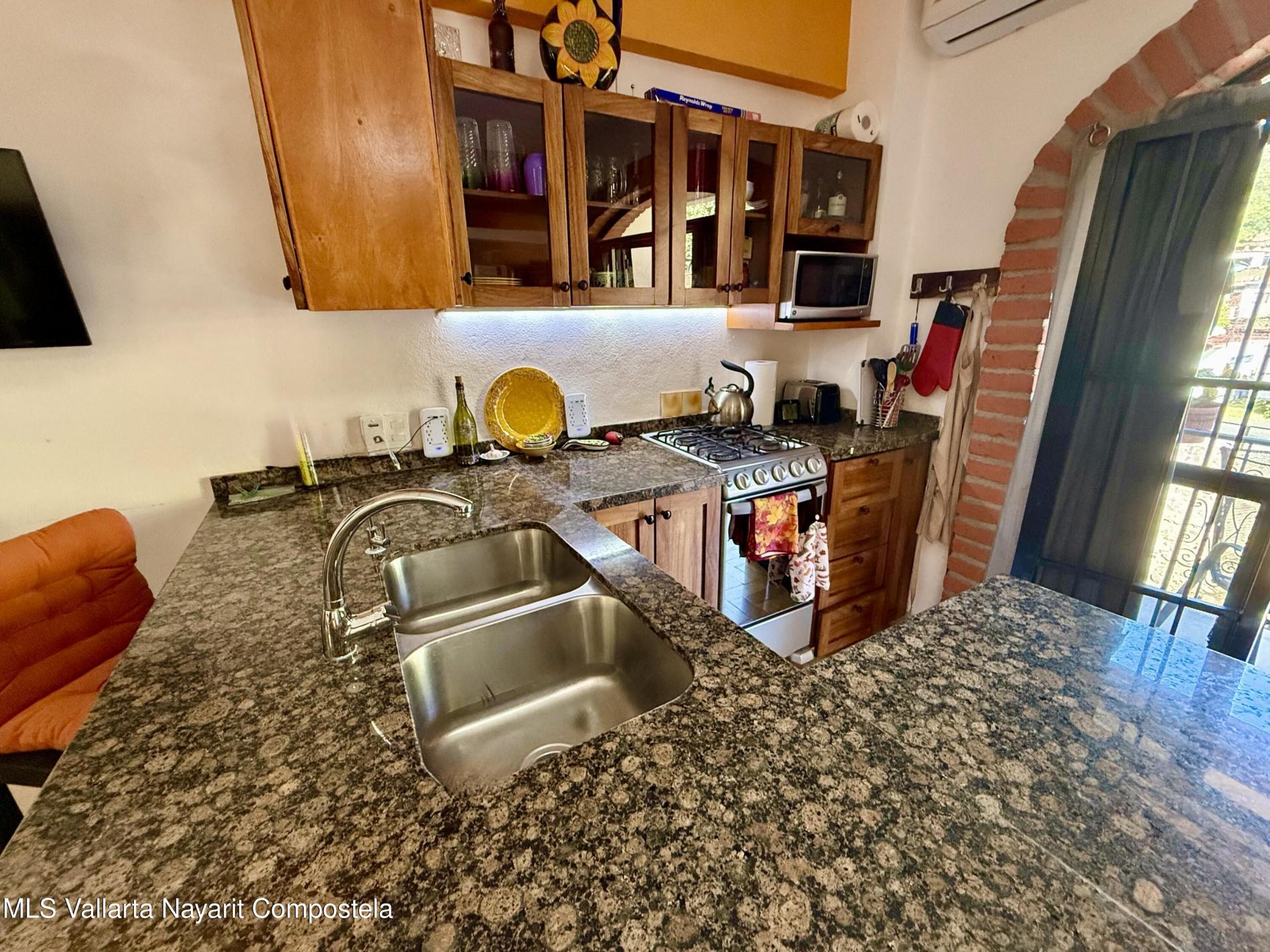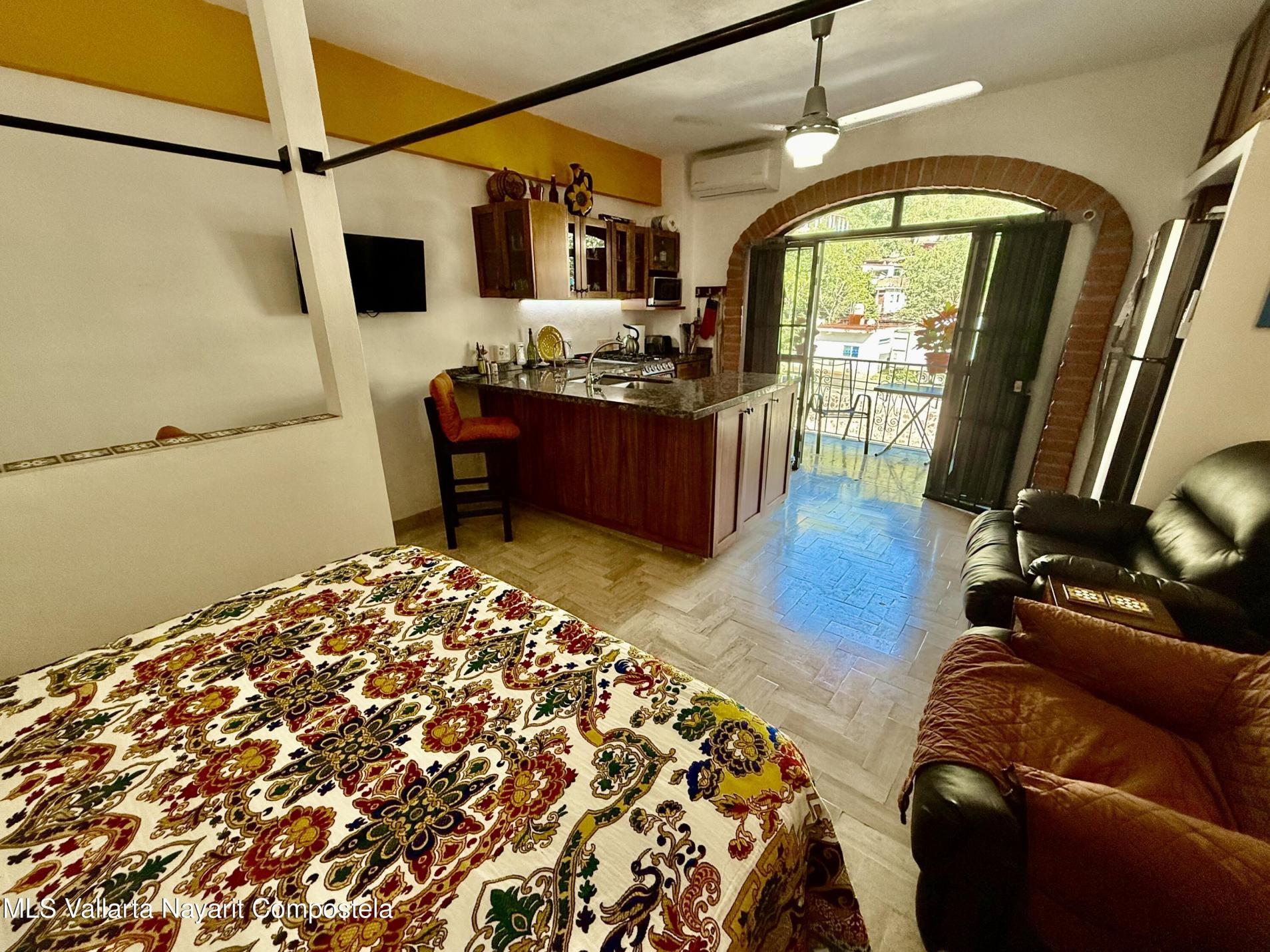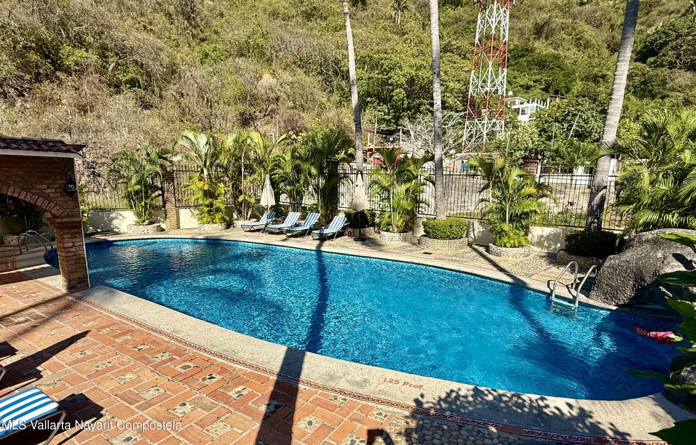 Wonderful studio unit the El Remance gated development. Old Mexico style building with all of the charm and character. Lush gardens, pool, common areas all with views of the river and mountains. Located in the back of the Romantic Zone with an easy flat walk into town. Parking inside the gates and storage is included with the condo. You must see El Remance to experience the charm of this oasis.