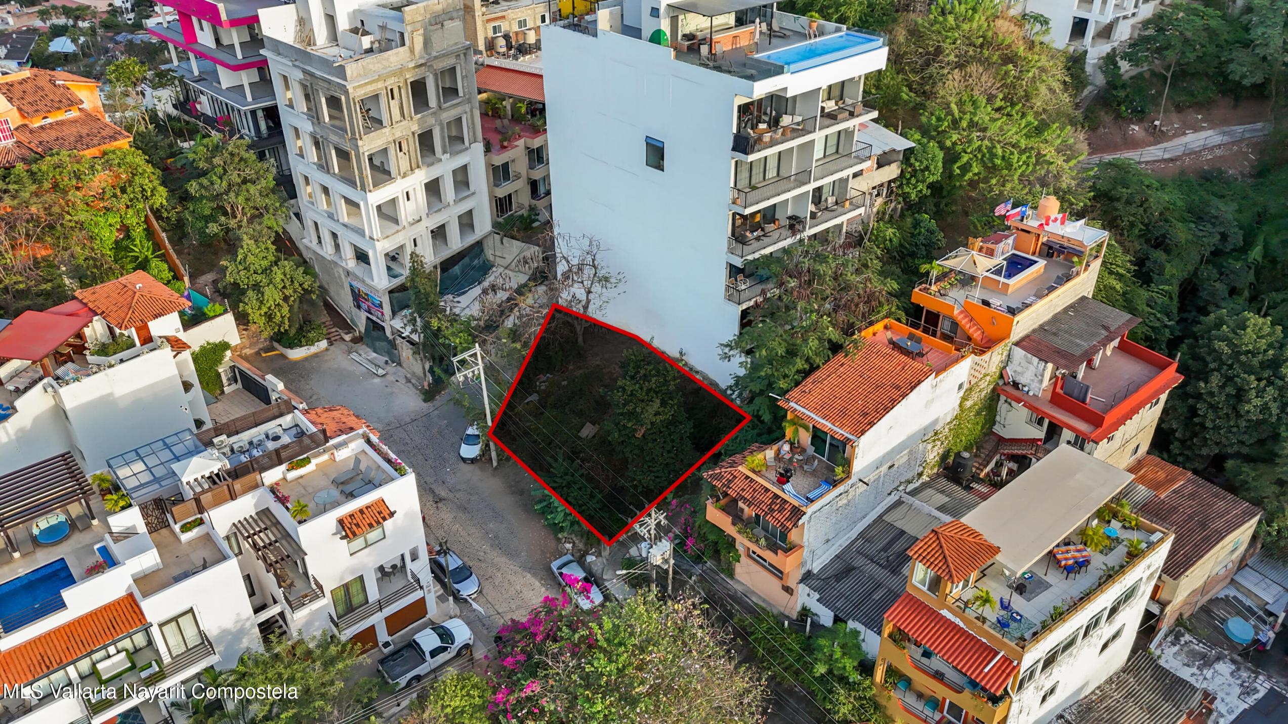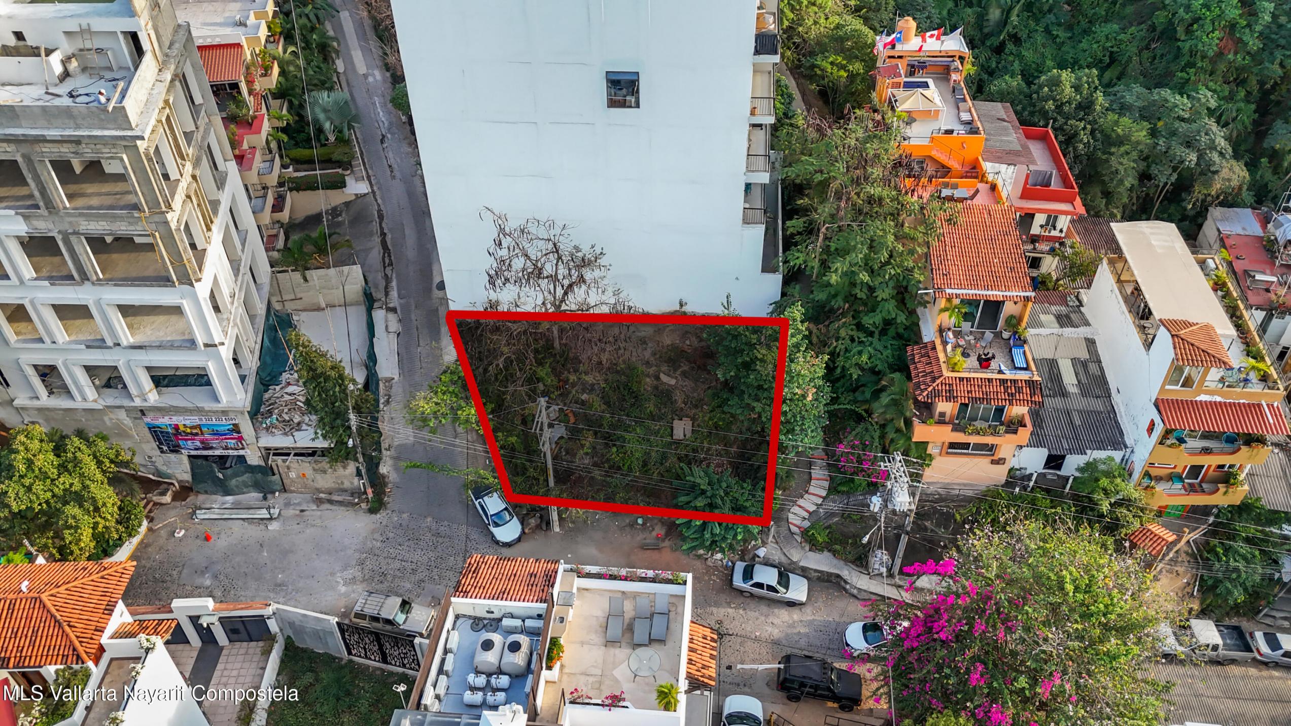 Corner lot with the potential to build a large private home or a small condominium building of several floors with views of town and the bay.