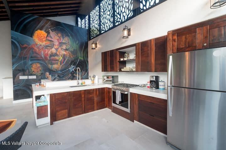 Nature, income, and walkability--rarely found together.Offered turn-key as a private residence or a proven rental income generator, this beautifully remodeled home overlooks the Rio Cuale, tucked along the charming cobblestone streets of Emiliano Zapata / Zona Romantica.The soothing sound of the river sets the tone as you enjoy east-facing mountain views from the expansive rooftop living space, accented with local art and surrounded by lush riverbank trees home to colorful birds and iguanas. It's a rare blend of nature, privacy, and vibrant city life.The property features two fully independent units:Lower level: 1-bedroom, 1-bathroom unit with a private terraceUpper levels: 2-bedroom, 2.5-bathroom residence with generous open-air living, dining, and kitchen s