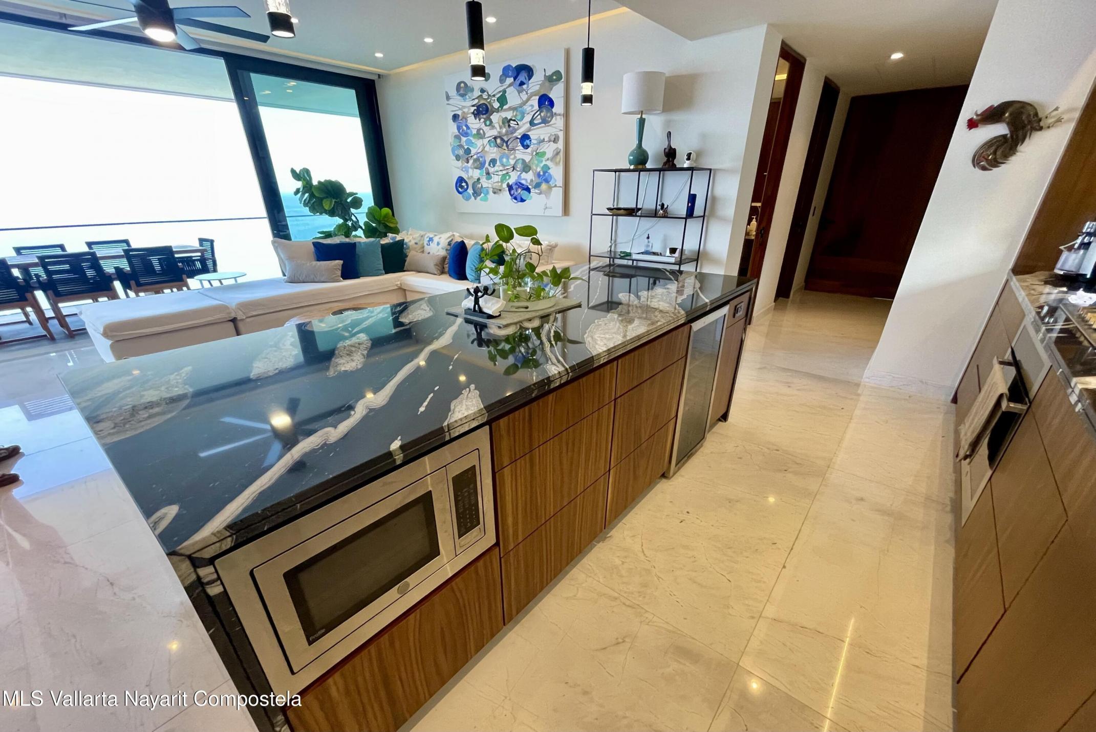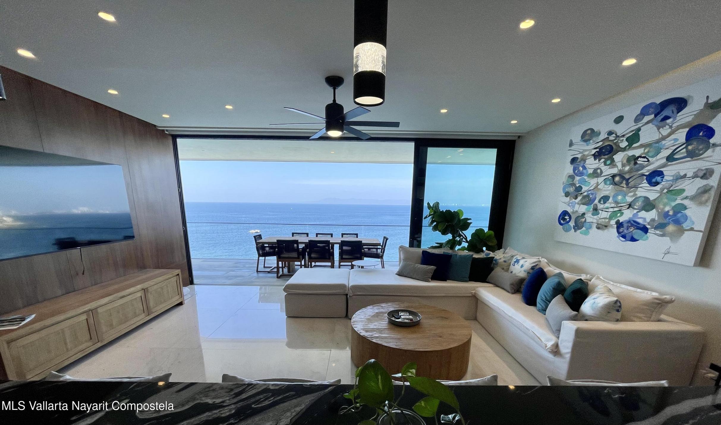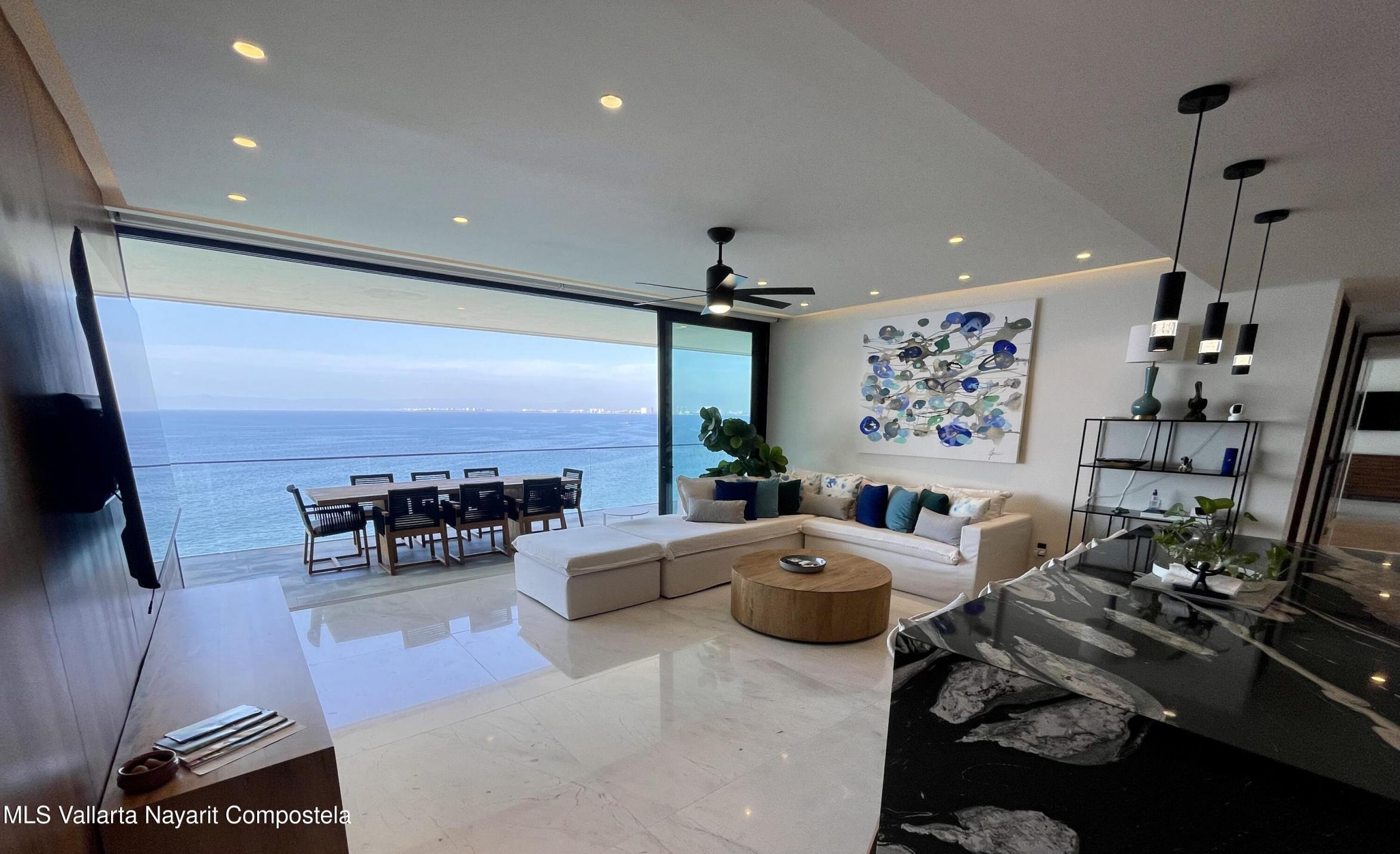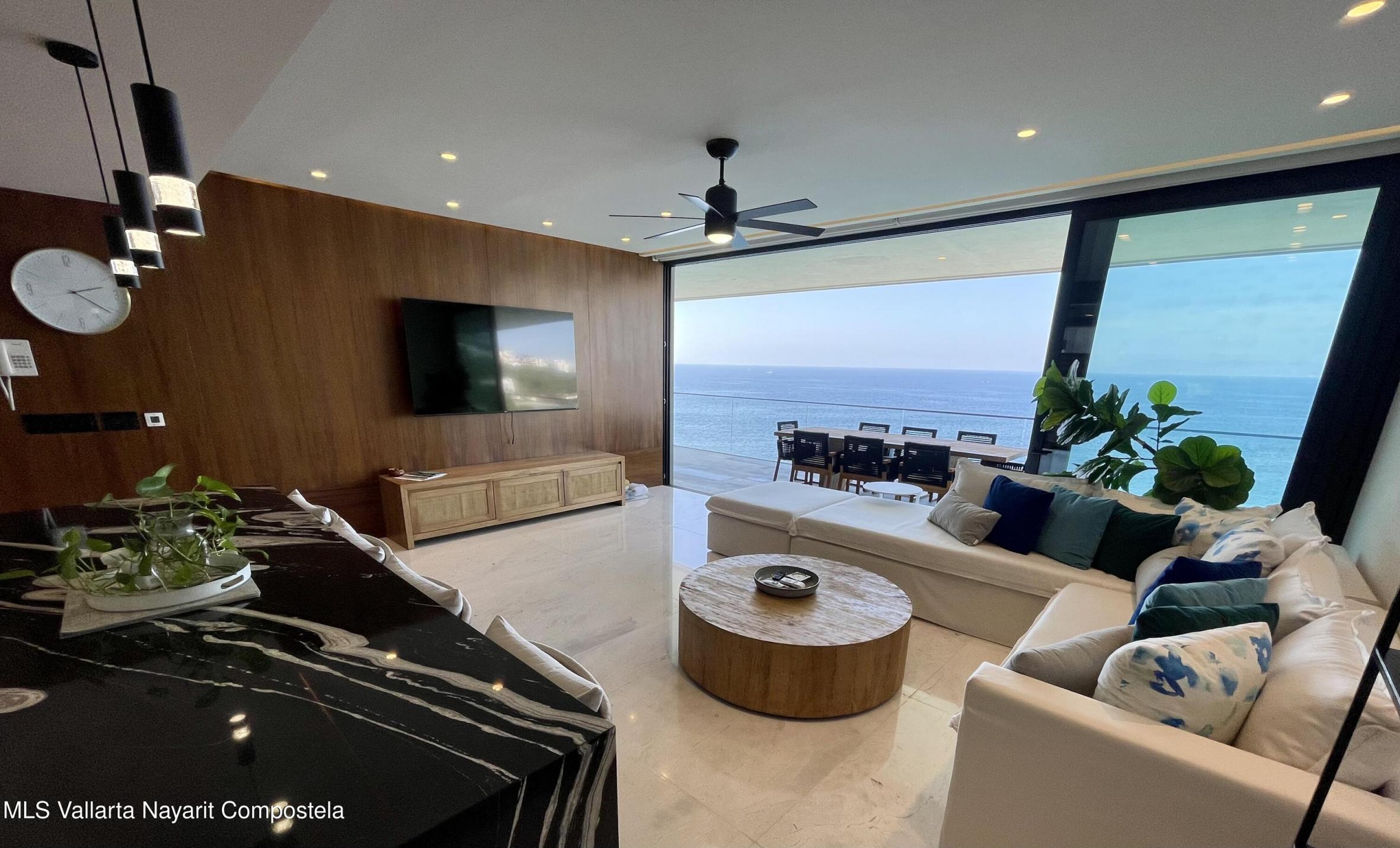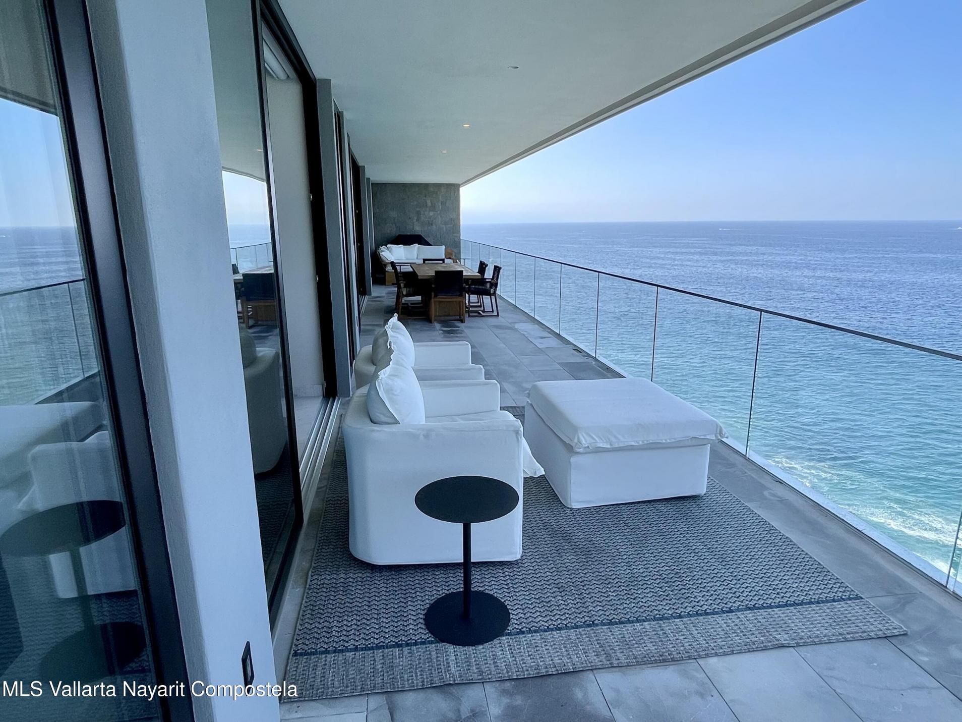 Amazing Ocean Views from this 3 bedroom, 3.5 bathroom ocean front corner unit. In the high end residential building, The Reef. located only a short drive South of the Romantic Zone. The Reef is positioned towards the water to enjoy whale watching and Ocean and City Views The Reef is a low density building. This home features panoramic views from every room, a spacious terrace, marble floors, granite countertops, and stunning interiors. Amenities include two pools, BBQs, gym, and stylish areas. Furniture include