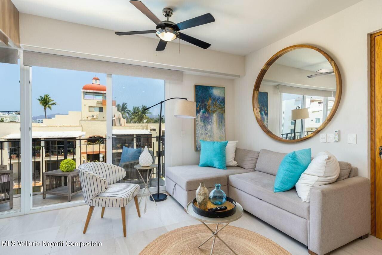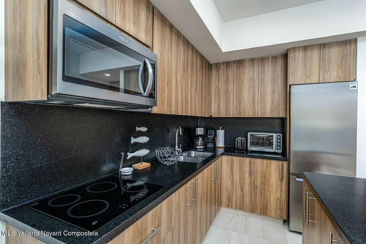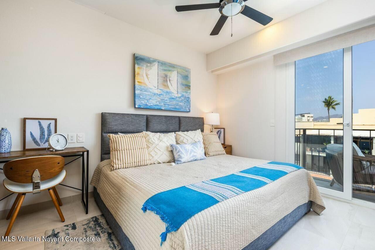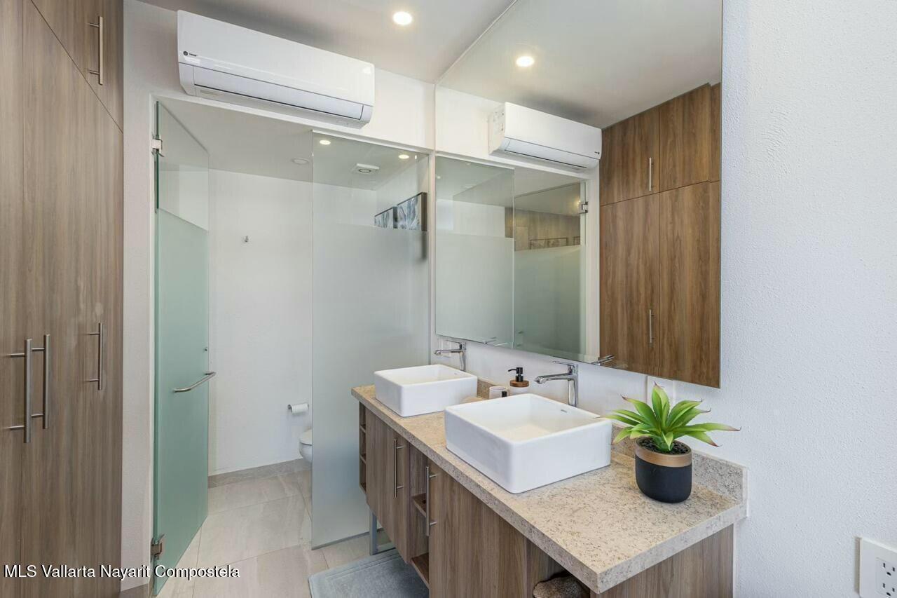 Prime car parking spot, underground! Or perfect for paddle boards, bikes or golf cart! Luxurious 2 bed & 3 bathroom condo in the heart of Bucerias, one block from beach. Turn key offers versatility & income potential, perfect for lifestyle & investment. Or chose the clever lock off option and split it into a 1 bedroom studio apartment. Each unit boasts its own kitchen, bath, storage and private entrances. Stunning rooftop, gym, business center with a luxurious pool and jacuzzi. Prime location, charming warmth, 24 hr security and within walking distance to vibrant local attractions, restaurants and so much more.