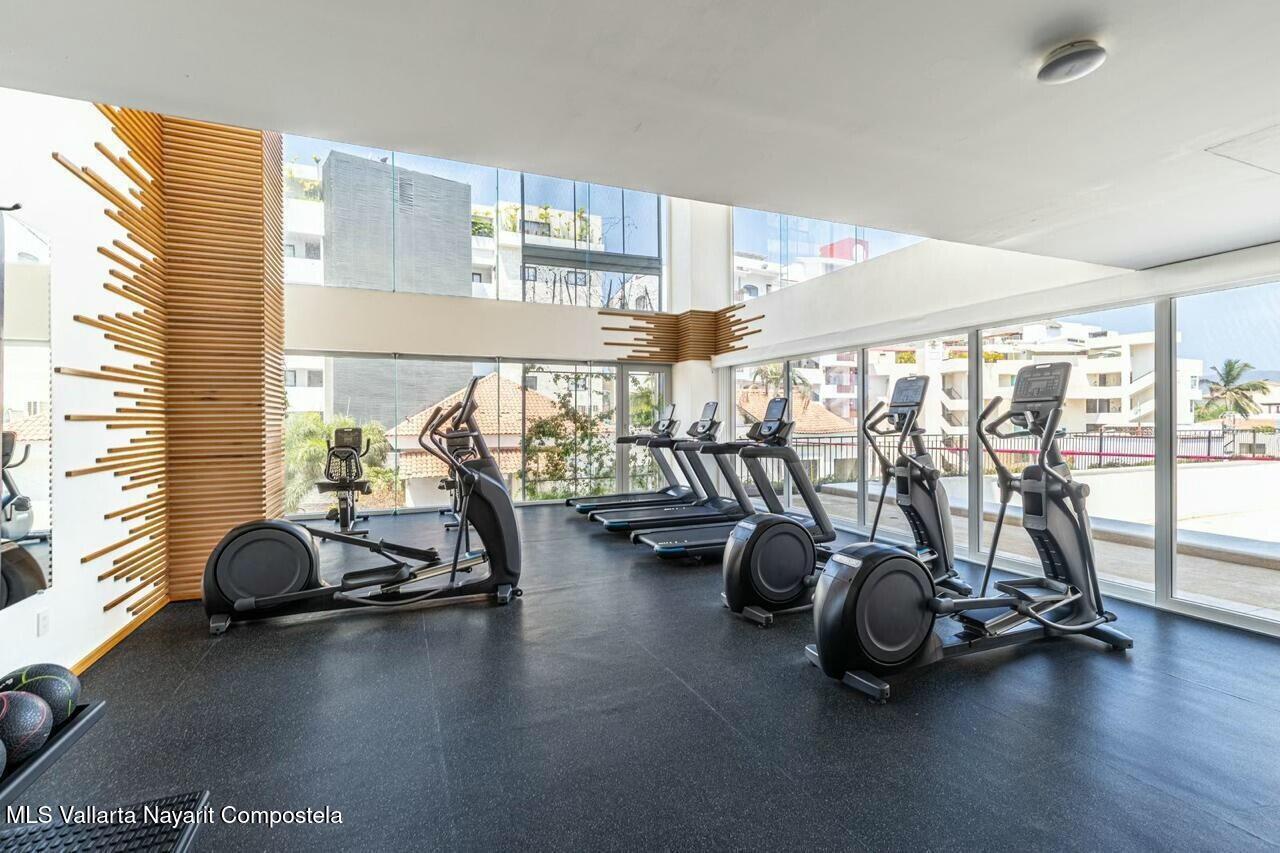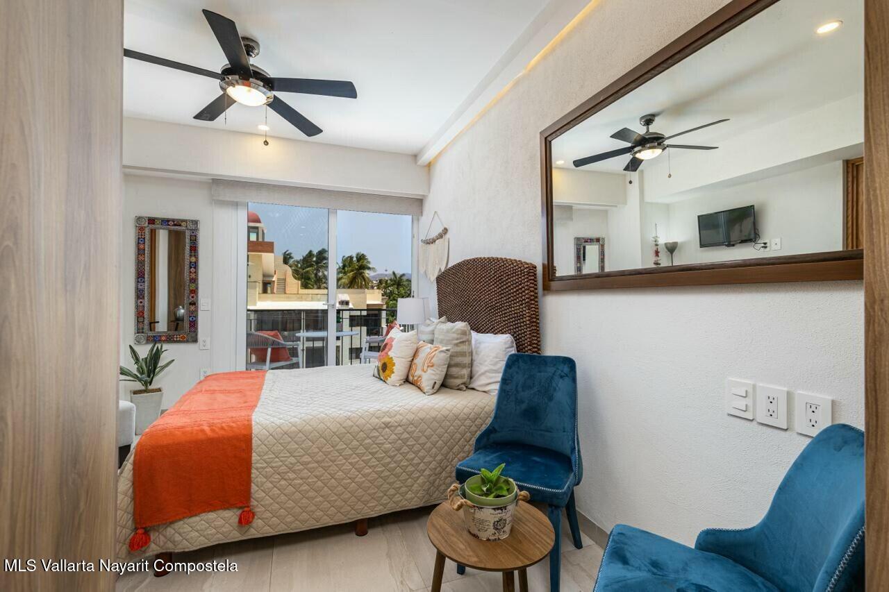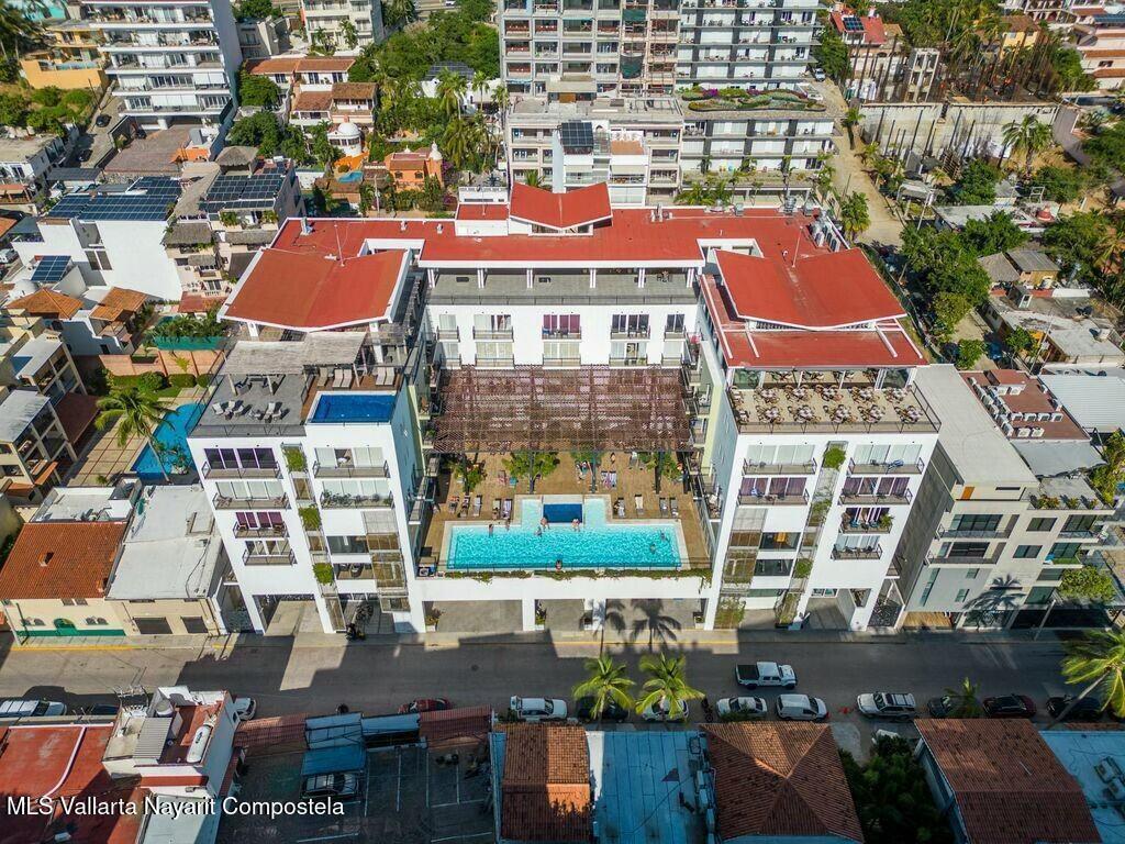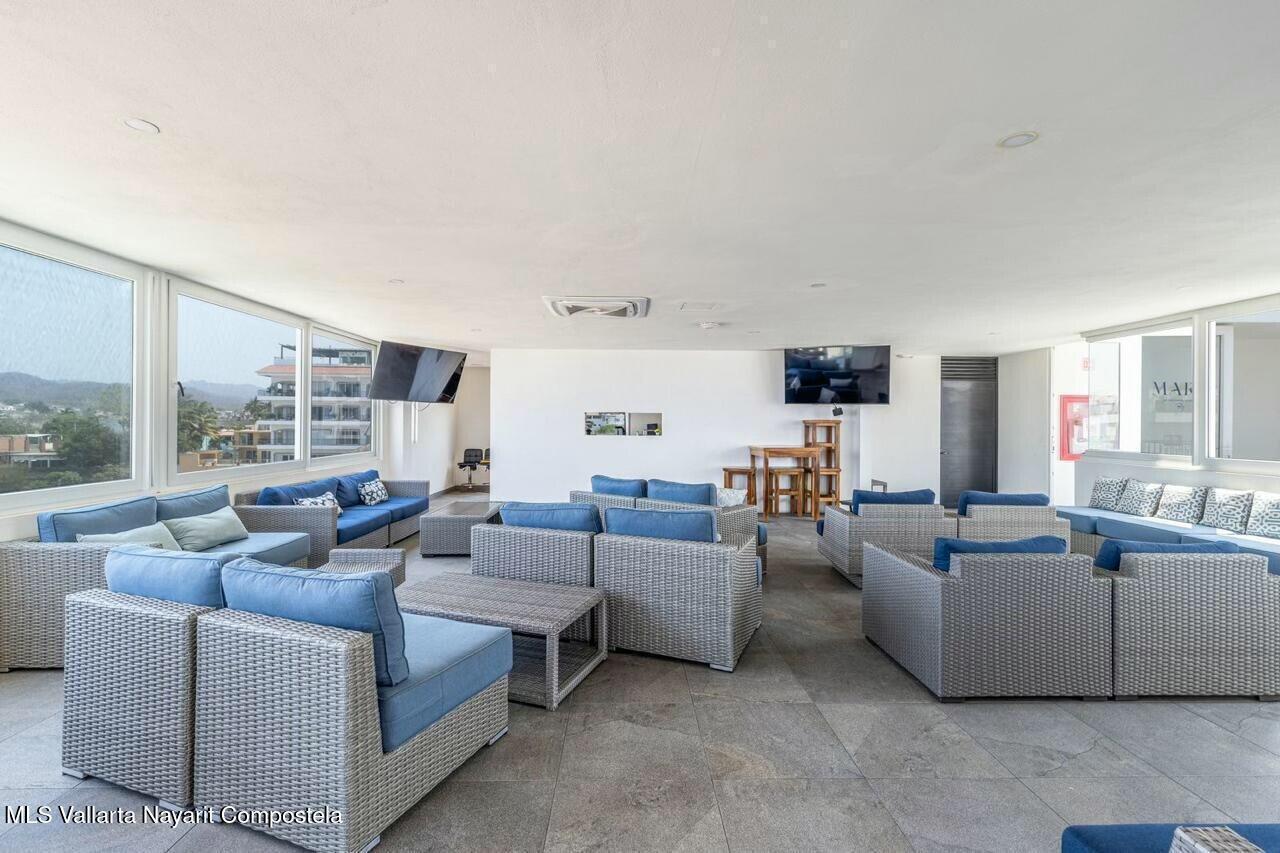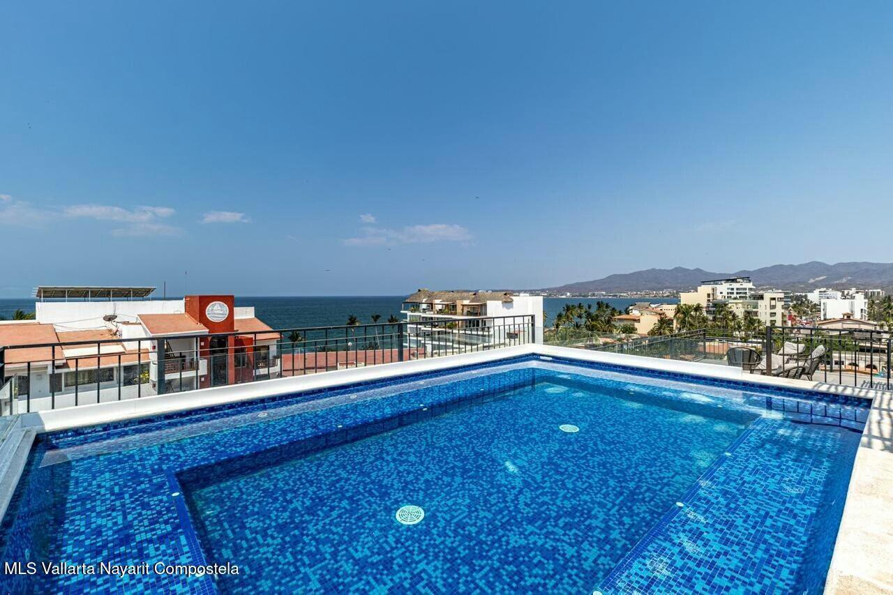Prime car parking spot, underground! Or perfect for paddle boards, bikes or golf cart! Luxurious 2 bed & 3 bathroom condo in the heart of Bucerias, one block from beach. Turn key offers versatility & income potential, perfect for lifestyle & investment. Or chose the clever lock off option and split it into a 1 bedroom studio apartment. Each unit boasts its own kitchen, bath, storage and private entrances. Stunning rooftop, gym, business center with a luxurious pool and jacuzzi. Prime location, charming warmth, 24 hr security and within walking distance to vibrant local attractions, restaurants and so much more.