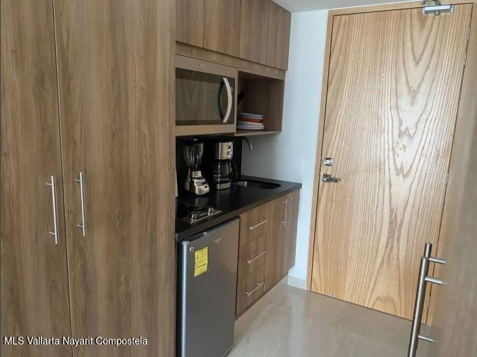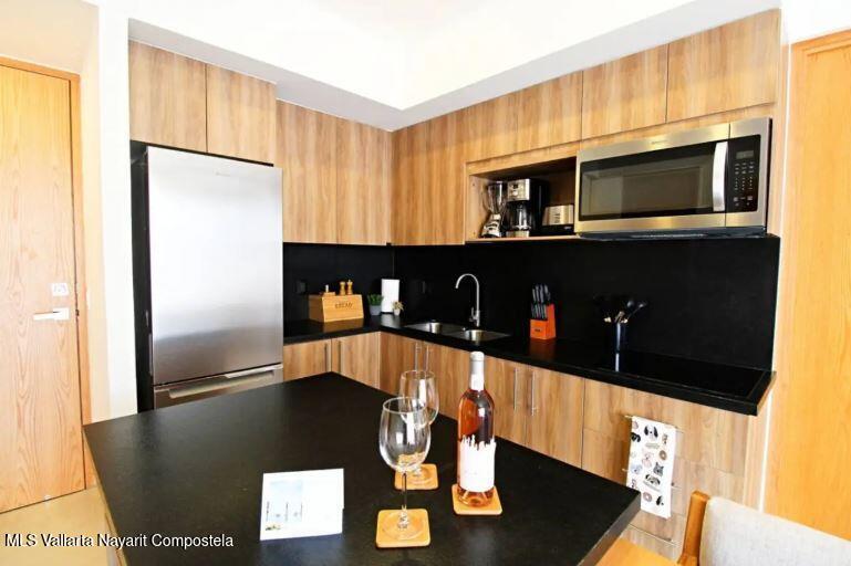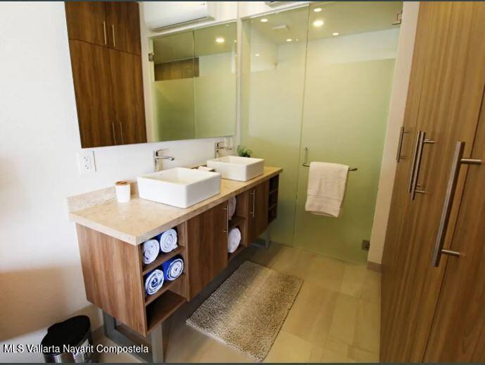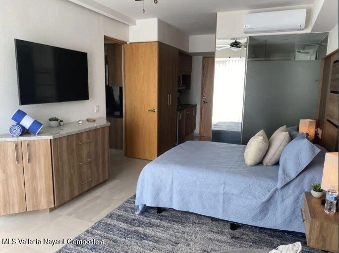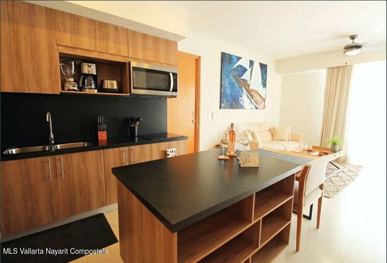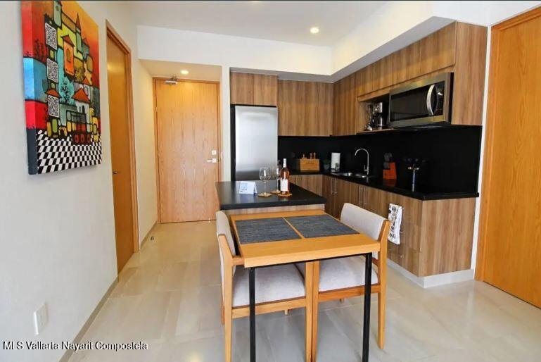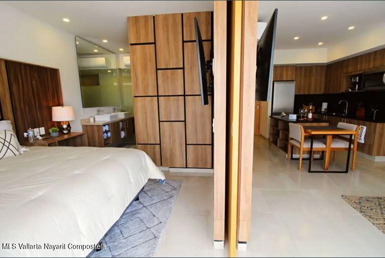 This exclusive lock-off condo, located in a modern and highly sought-after development in Bucerias, is the perfect opportunity for those looking to live by the beach or invest in a property with great rental potential. Situated in the vibrant heart of Zona Dorada, you'll be just one block from the beach and surrounded by restaurants, shops, and the unique energy of Bucerias.The condo features two independent units that can be rented separately or combined, offering flexibility for your needs. The main unit includes 1 bedroom, 2 full bathrooms, a fully equipped kitchen, and a spacious living area. The second unit is a cozy studio with a kitchenette, ideal for individual use or as additional space for guests