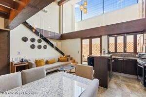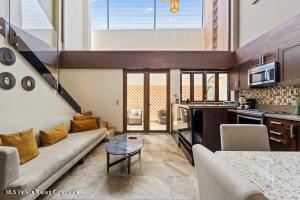 English below:Esta lujosa casa adosada tipo loft esta perfectamente ubicada a pocos pasos de la playa y de la prestigiosa Zona Romantica. Combina comodidad, elegancia y funcionalidad, lo que la convierte en el hogar ideal para quienes aprecian la vida moderna de lujo con un toque de intimidad y privacidad.En el interior, la planta baja presume de un diseno abierto con sala de estar y comedor que se integran a la perfeccion con una cocina gourmet. Las puertas corredizas de vidrio se abren a una terraza privada con jardin, perfecta para disfrutar de su cafe de la manana. La cocina esta equipada con electrodomesticos de alta gama, encimeras de marmol y gabinetes a medida. Una ventana de doble altura ofrece una excelente iluminacion..