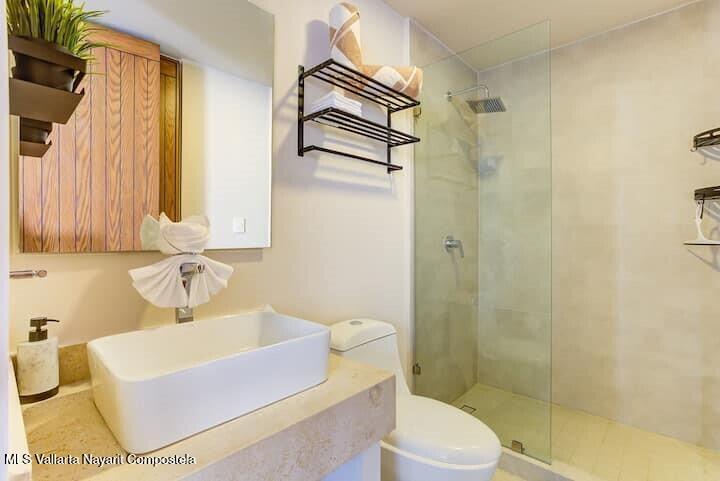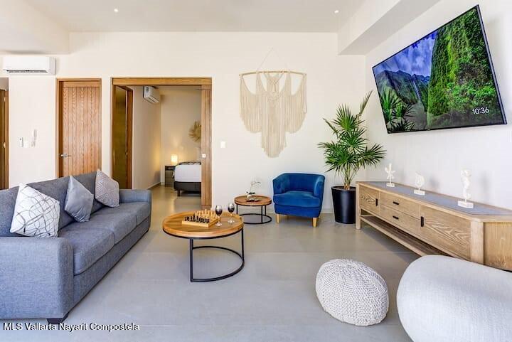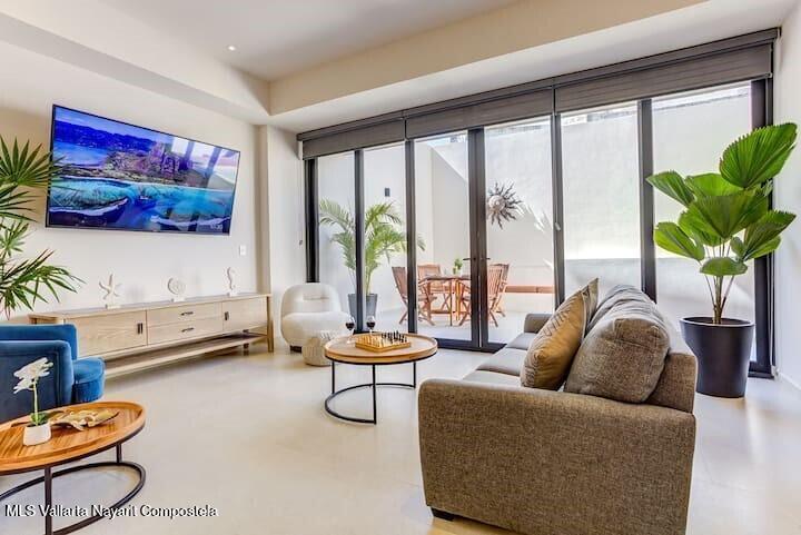 Beautiful 1-bedroom, 1-bathroom condominium located in the exclusive Makare development, in the Los Picos area. Situated on the first floor.The condominium is fully furnished and decorated in a modern and inviting style.One of its biggest attractions is its private pool. It is also just steps from the beach.The development also features a spectacular rooftop with a pool and panoramic ocean views.
