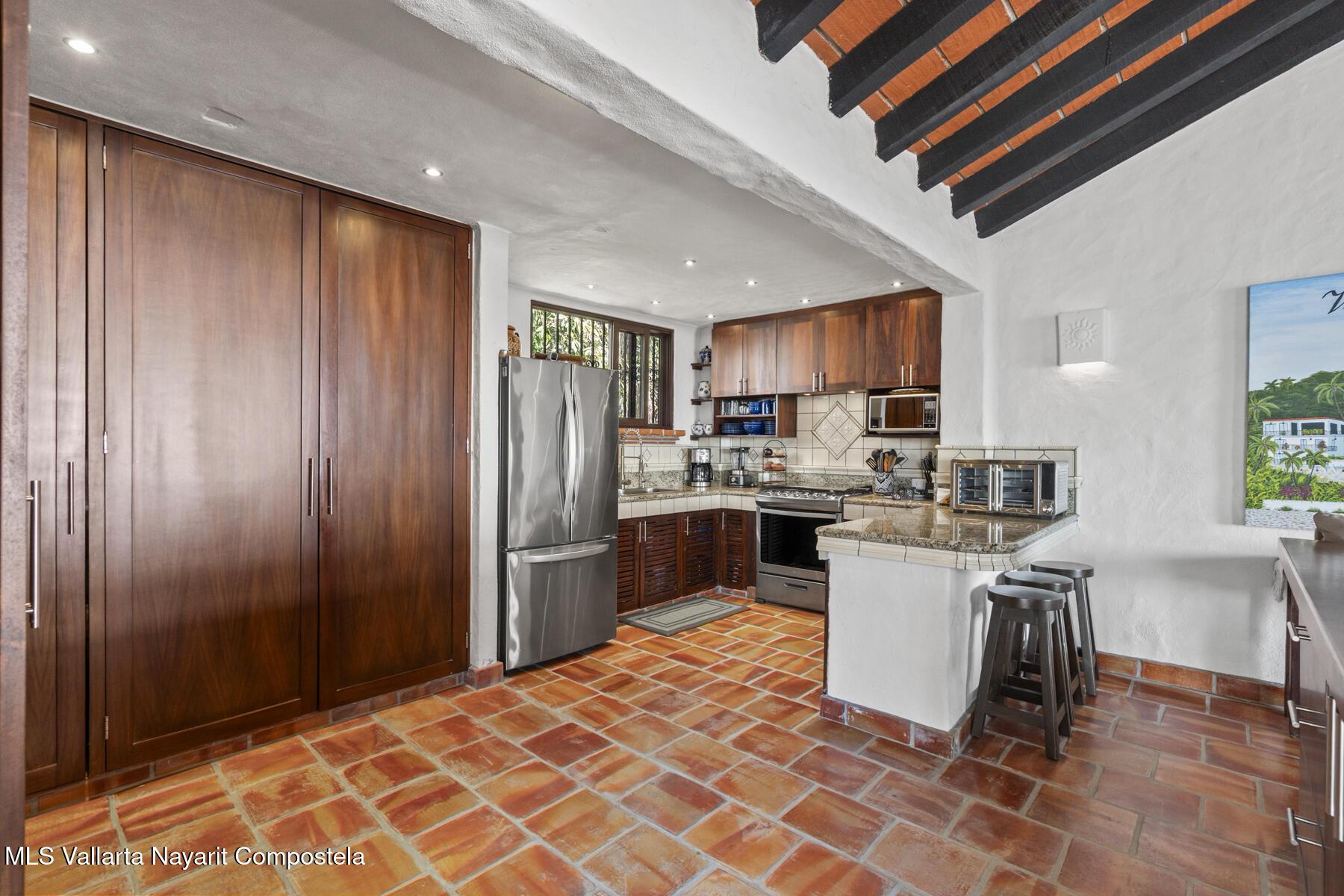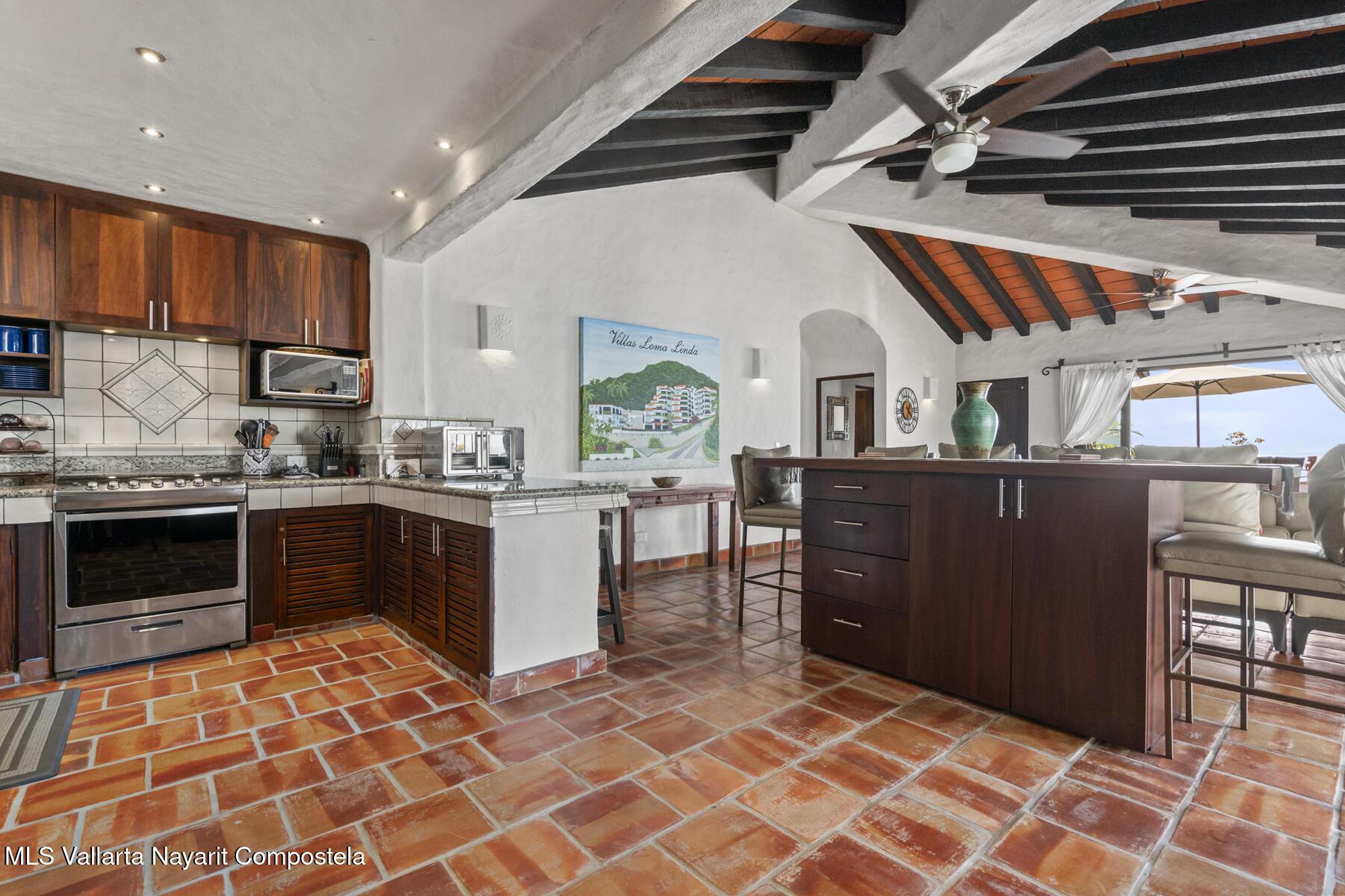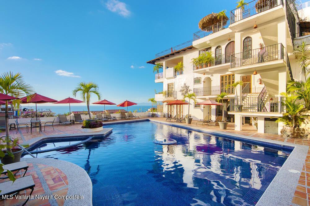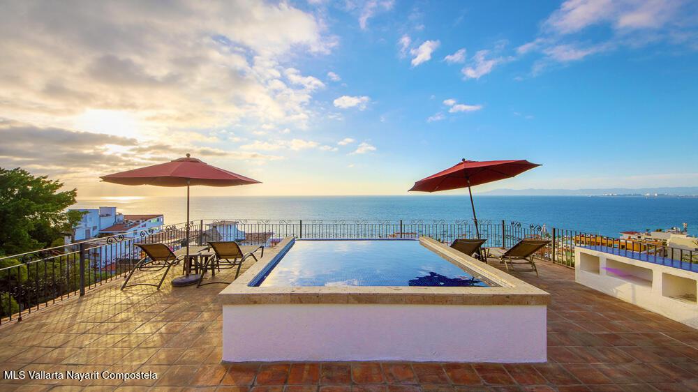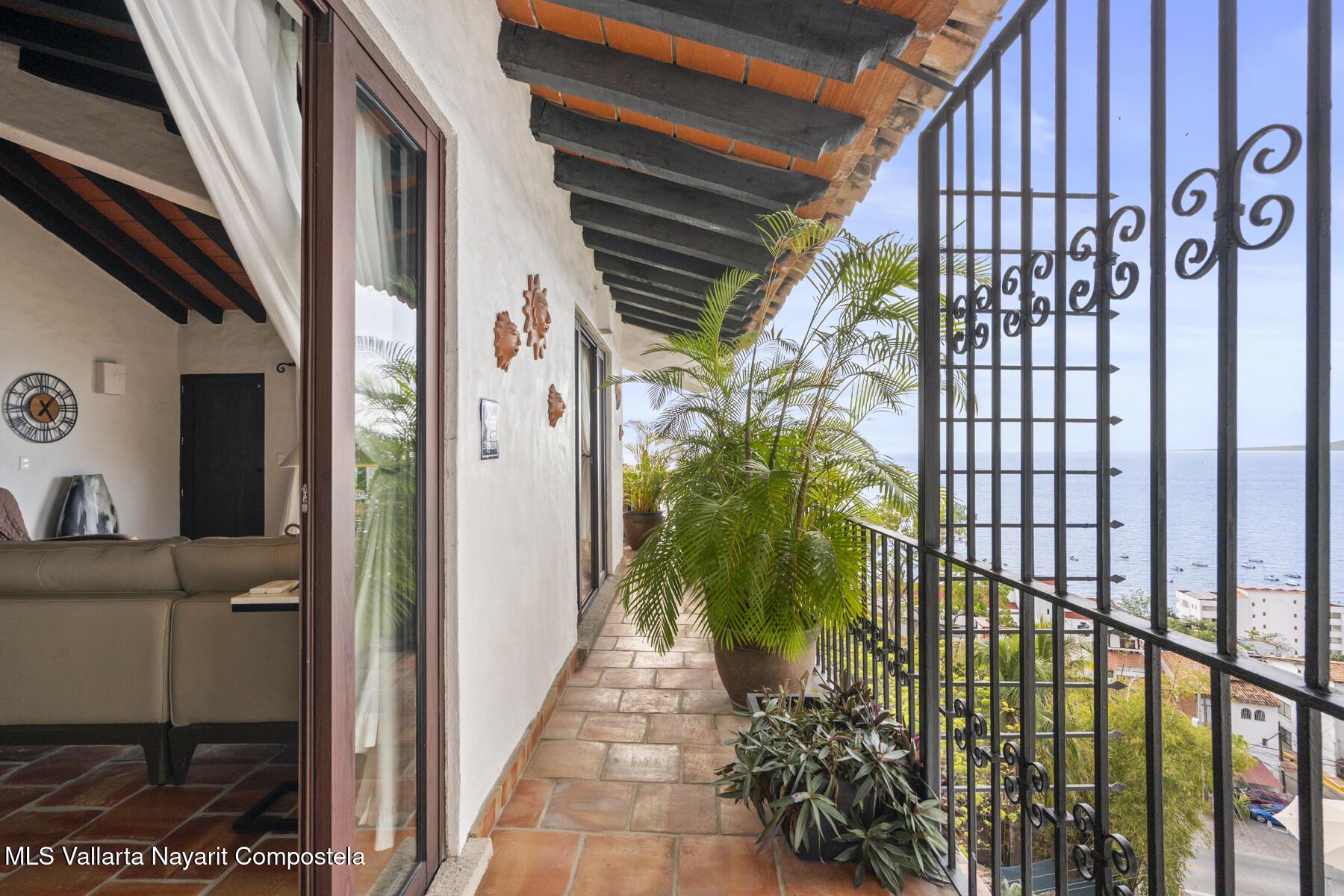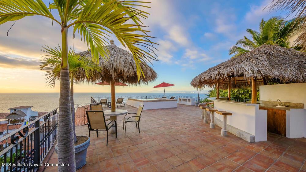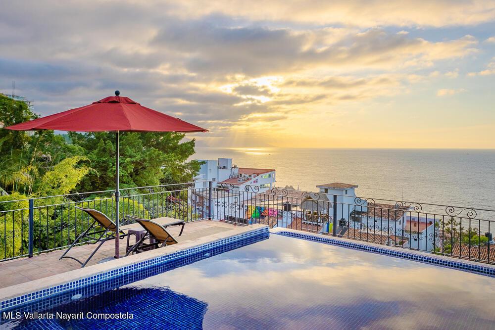 Perched atop Villas Loma Linda, this updated, charming penthouse offers sweeping ocean, sunset, and city views from every room including the luxuriously large terrace. This top-floor 2 bed, 2 bath exclusive residence features a spacious, open layout with beautifully remodeled kitchen and bathrooms, blending modern comfort with traditional character. The sought after complex also features two saltwater pools and plenty of sundeck space. Located in the desirable Amapas hillside neighborhood just above Zona Romantica, you'll enjoy both tranquility and easy access to Puerto Vallarta's vibrant dining, beaches, and nightlife. A rare opportunity to own a view-filled retreat in one of the area's most sought-after enclaves.