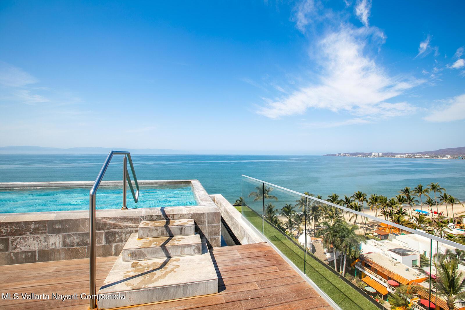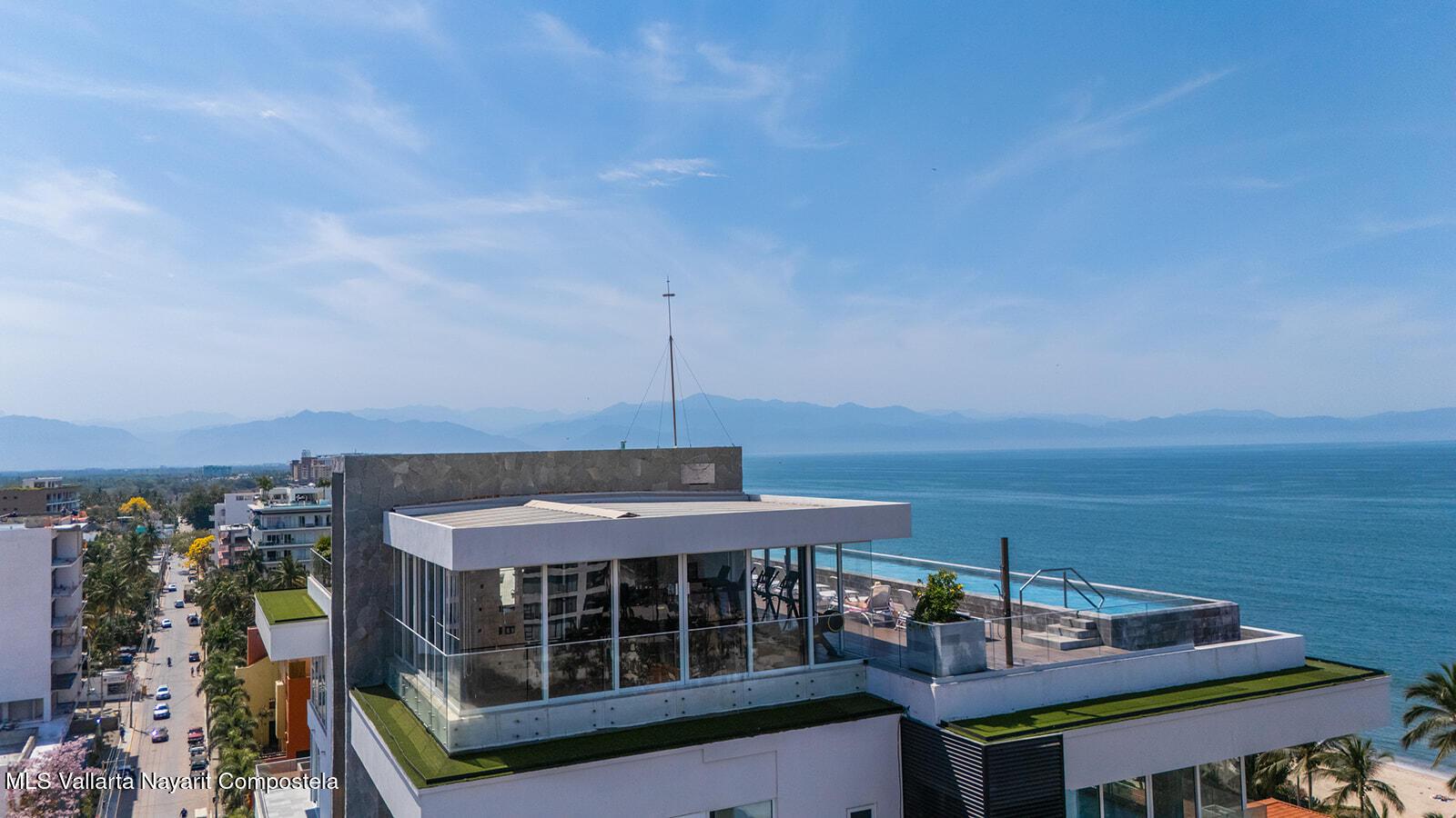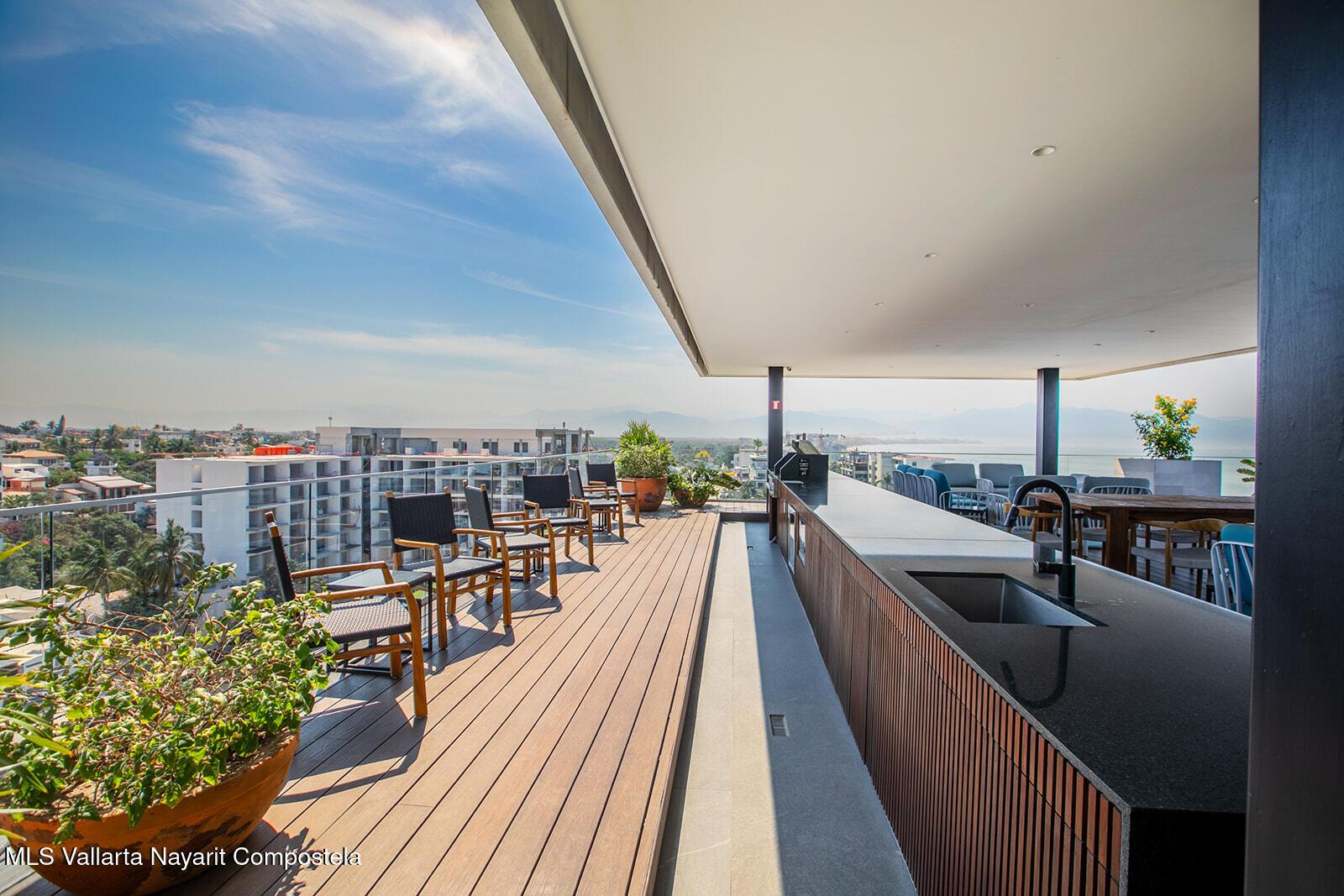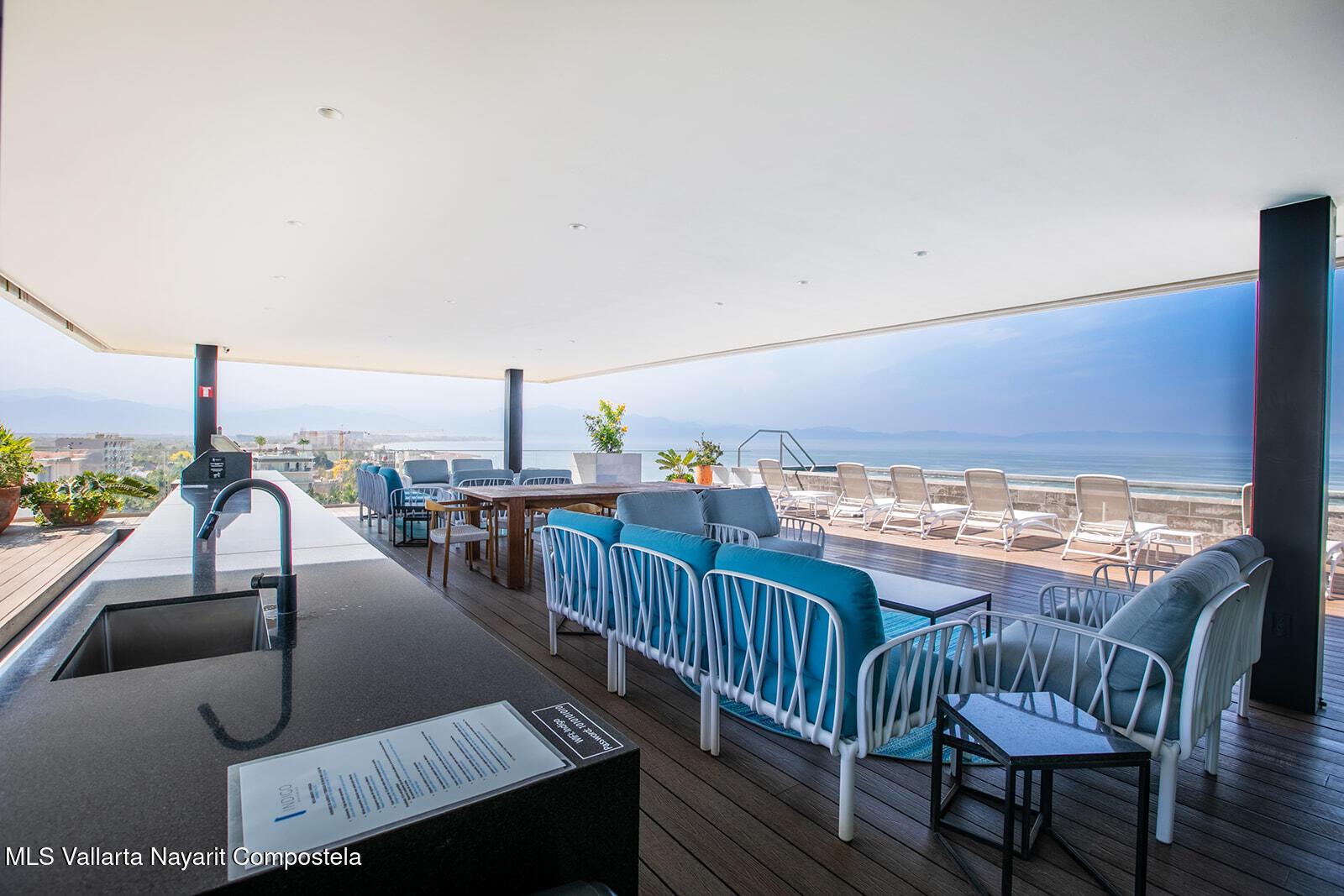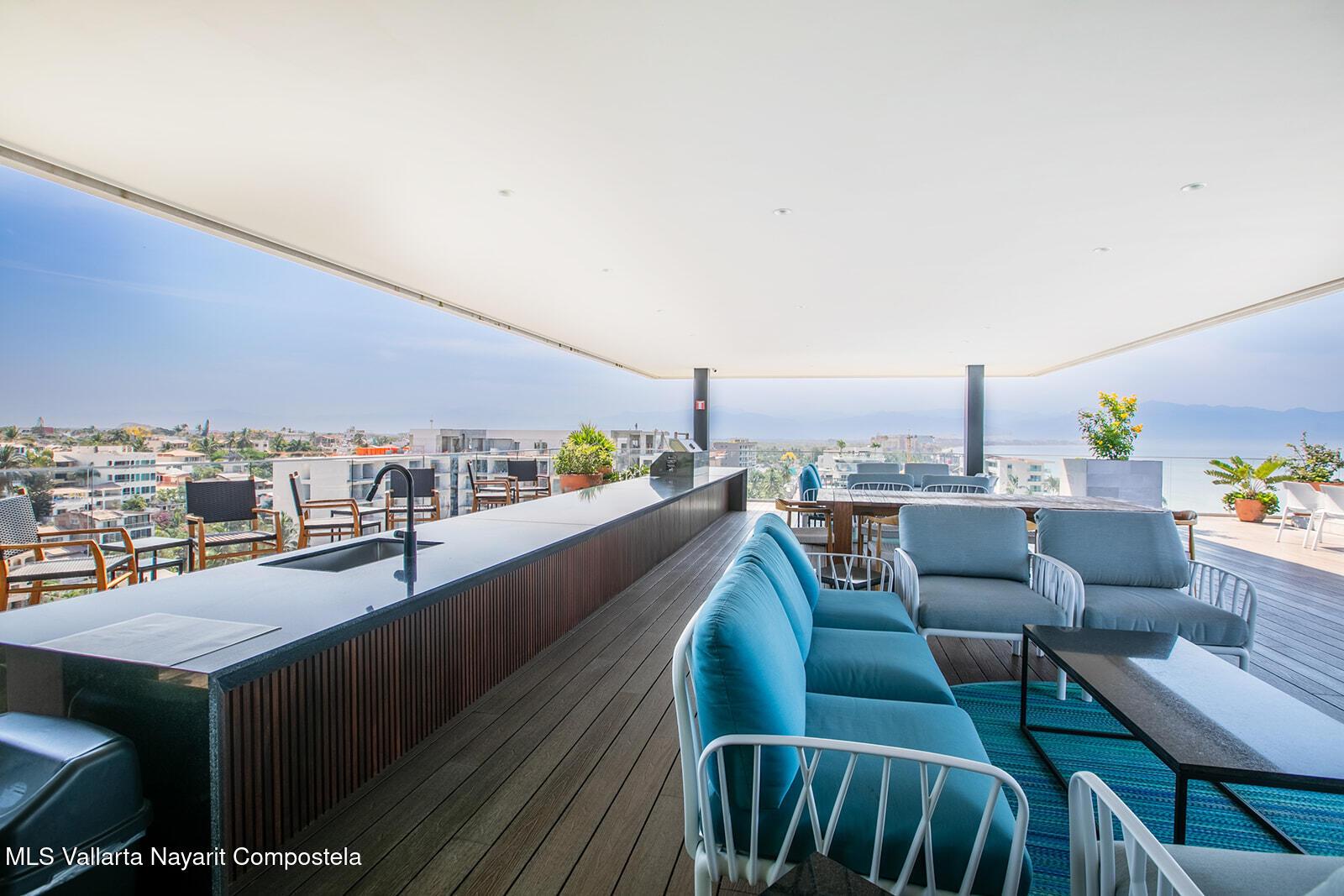 Oro Azul in the Bucerias Golden Zone is the pinnacle of elevated coastal luxury, just steps from the sand. This stunning 2 bed, 2.5 bath residence showcases exquisite detail and masterful craftsmanship throughout. A dramatic wraparound terrace with floor-to-ceiling glass floods the space with light and ocean breezes. The rooftop stuns with a 90-ft lap pool, panoramic views, gym, and top-of-the-line outdoor kitchen with chic lounge areas--moments from the best dining, galleries, and boutiques.****Oro Azul en la Zona Dorada, la mejor zona de Bucerias, ofrece lujo costero a pasos del mar. 2 recamaras, 2.5 banos, finos acabados y gran diseno. Terraza envolvente con ventanales de piso a techo, luz natural y brisa marina. Espectacular rooftop con alberca, vistas de 360, gym y cocina de alta gama