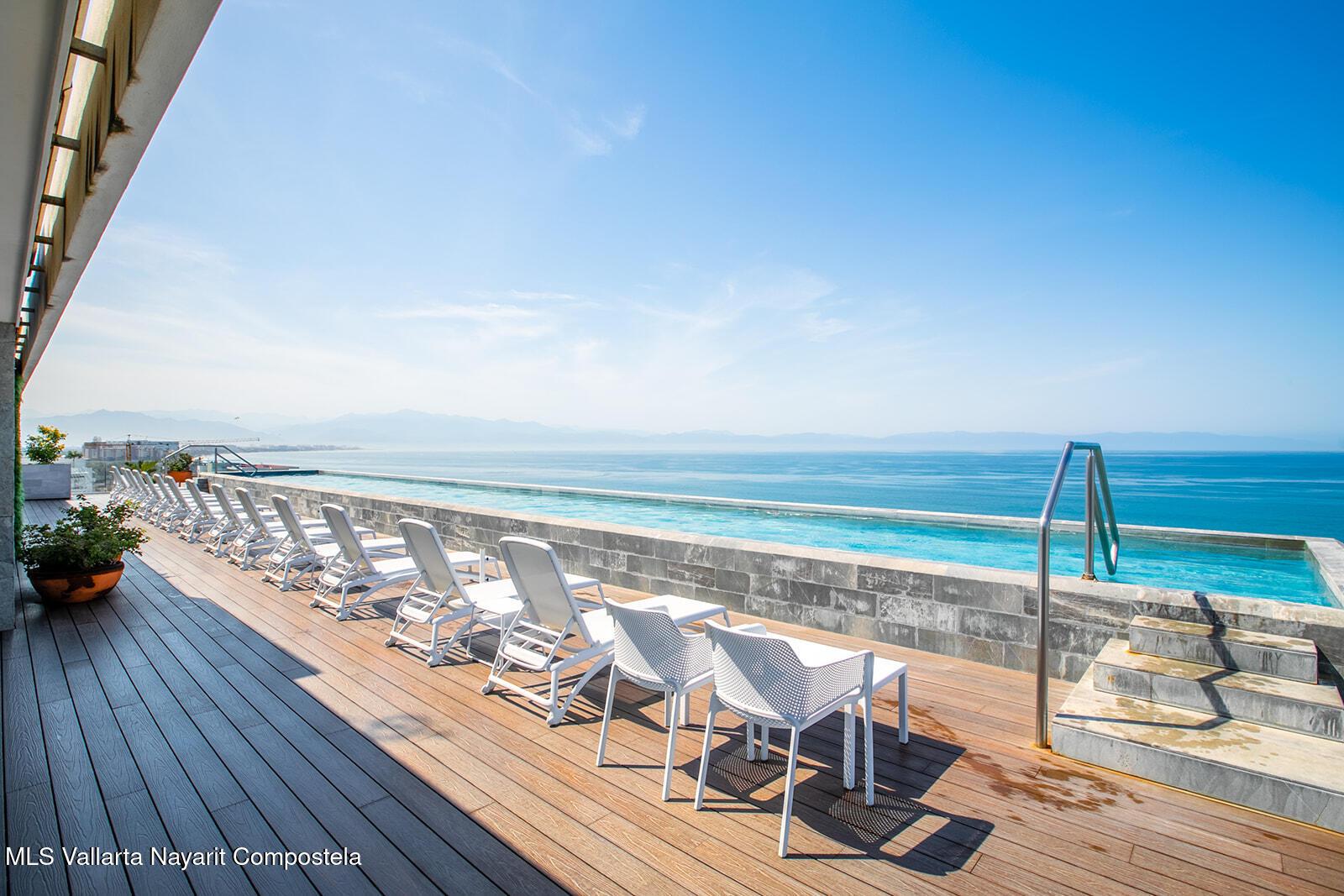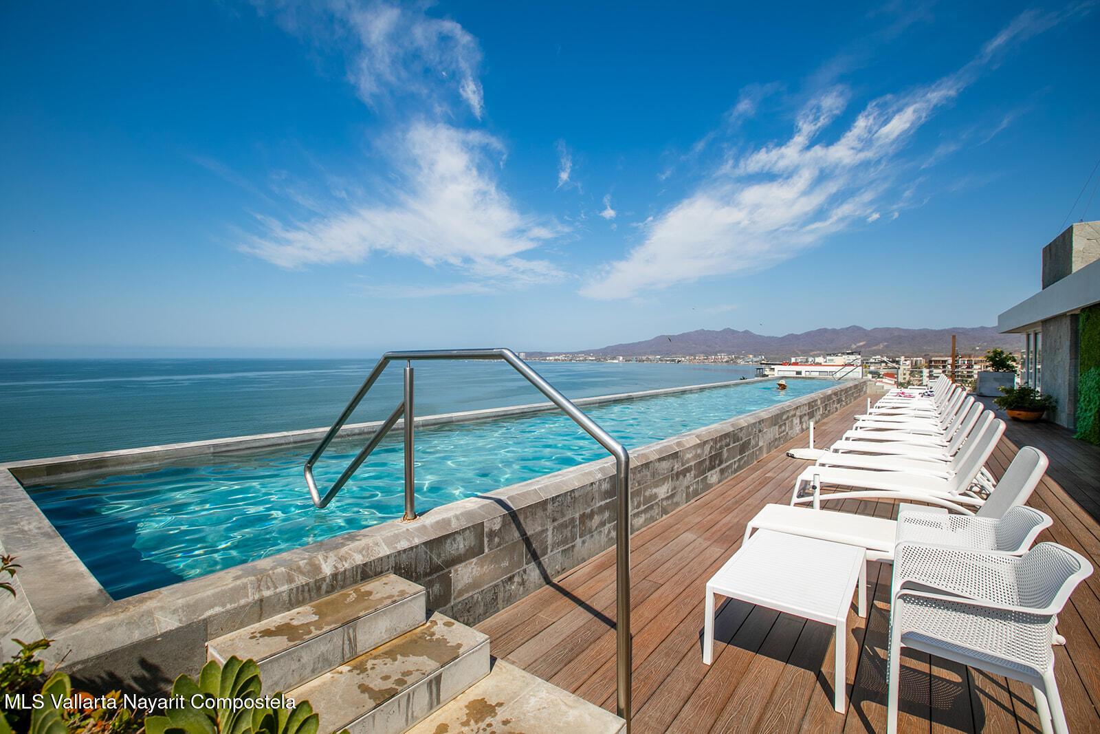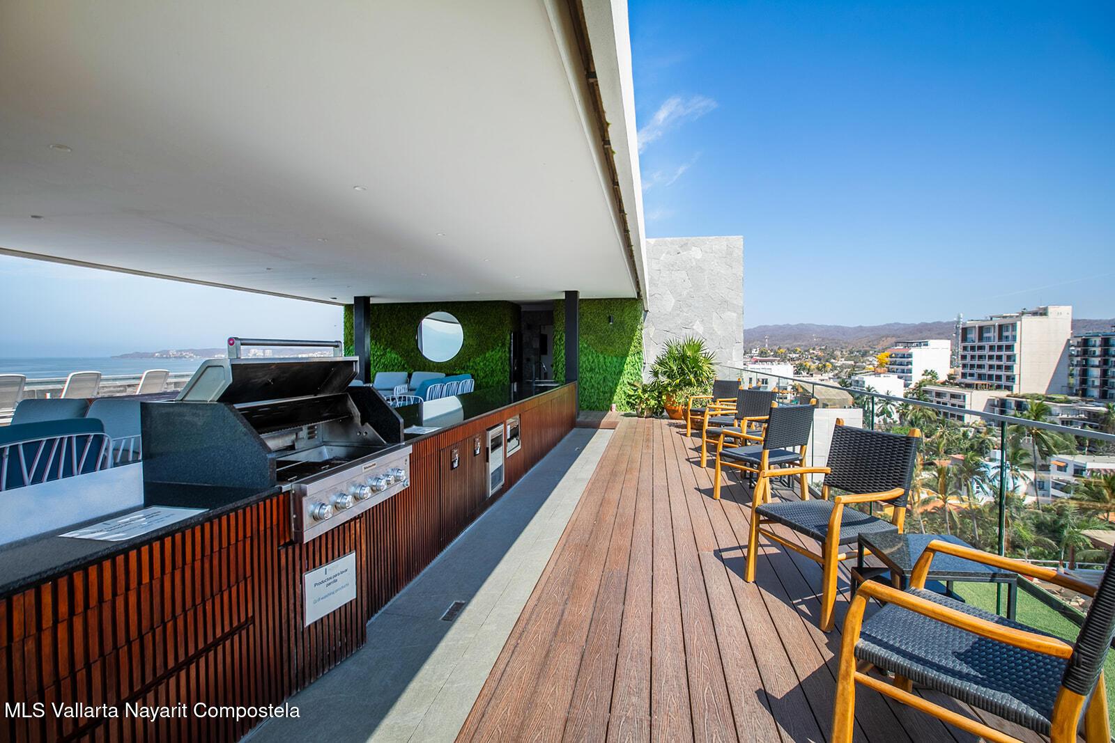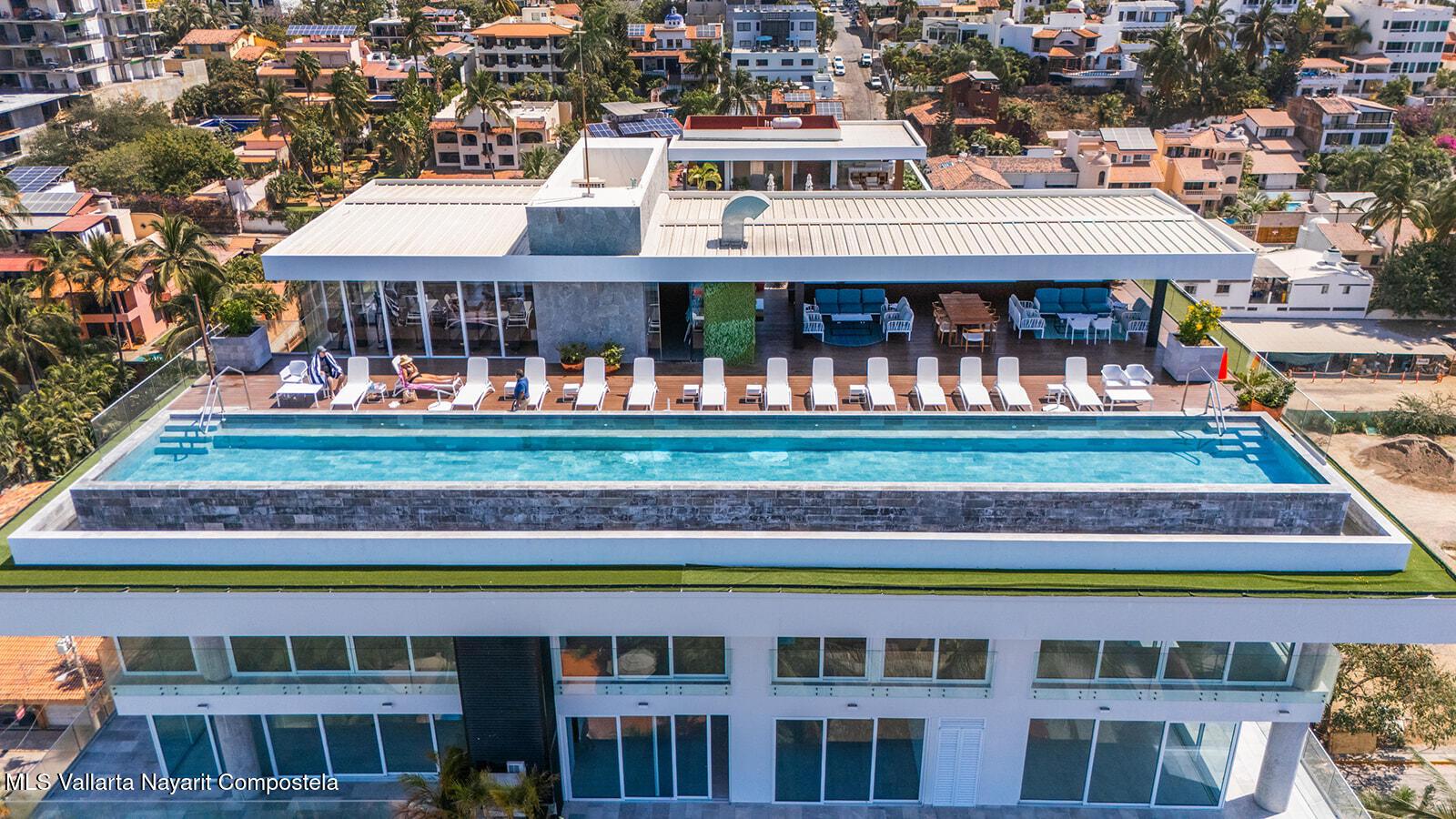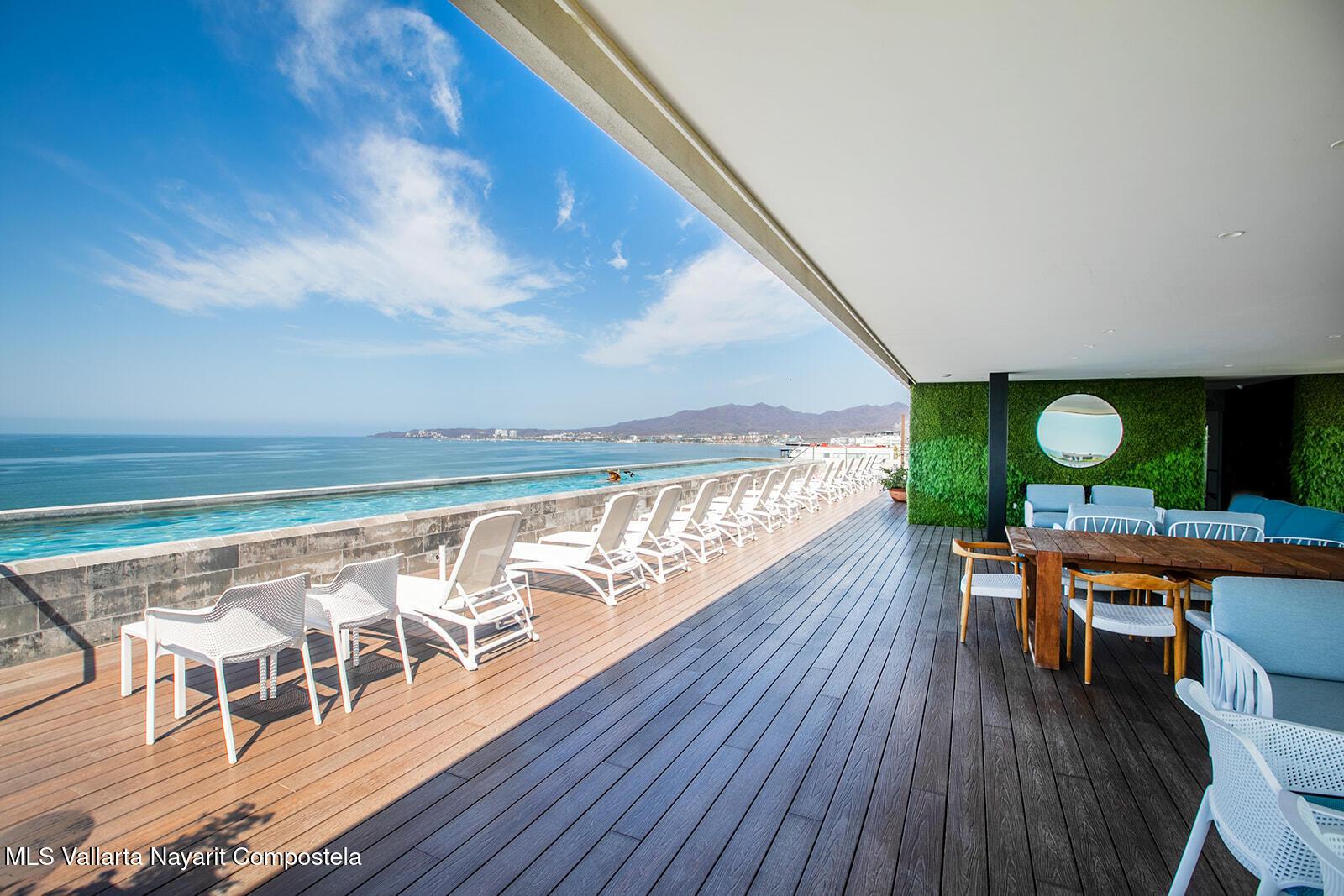 Oro Azul in the Bucerias Golden Zone is the pinnacle of elevated coastal luxury, just steps from the sand. This stunning 2 bed, 2.5 bath residence showcases exquisite detail and masterful craftsmanship throughout. A dramatic wraparound terrace with floor-to-ceiling glass floods the space with light and ocean breezes. The rooftop stuns with a 90-ft lap pool, panoramic views, gym, and top-of-the-line outdoor kitchen with chic lounge areas--moments from the best dining, galleries, and boutiques.****Oro Azul en la Zona Dorada, la mejor zona de Bucerias, ofrece lujo costero a pasos del mar. 2 recamaras, 2.5 banos, finos acabados y gran diseno. Terraza envolvente con ventanales de piso a techo, luz natural y brisa marina. Espectacular rooftop con alberca, vistas de 360, gym y cocina de alta gama