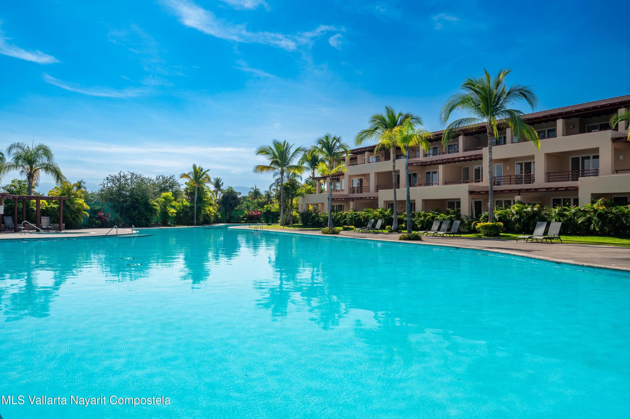 ISLA 208 is located at El Tigre Golf and Country Club Inside the ISLA PALMARES development in Nuevo Vallarta at the ISLA Building. The condo has 2 bedrooms, with private terrace and walk in closet, 2 bath. The social area: Kitchen, Living and Dining Room open to the terrace with the spectacular view of the pool. El Tigre gated community offers, 18 holes Golf course, Beach Club, Gym, Tennis , Padel and PickleBall courts, Yoga, Spining, Pilates, Spa, Pools, Kids areas and more.The price in pesos, calculated in dollars at an exchange rate of $18.90 pesos to the dollar.