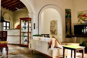 Hermosa Casa de estilo Colonial Mexicano, Construida en solo una planta en la que destaca los Arcos, Domos y Patios que le dan mucha luz y ventilacion, realmente una obra de arte, posee 3 Recamaras y 2.5 Banos. Completamente amueblada y con un precioso Patio interior, ademas dispone de Garaje para 2 carros pequenos.Beautiful Mexican Colonial-style house, built on a single floor, featuring stunning arches, domes, and patios that provide plenty of natural light and ventilation.Truly a work of art, it boasts 3 bedrooms and 2.5 bathrooms. Fully furnished with a gorgeous interior patio, it also includes a garage for 2 little cars.