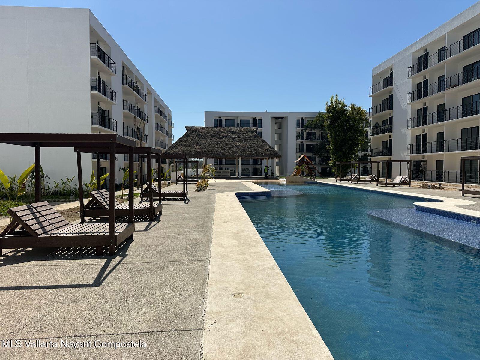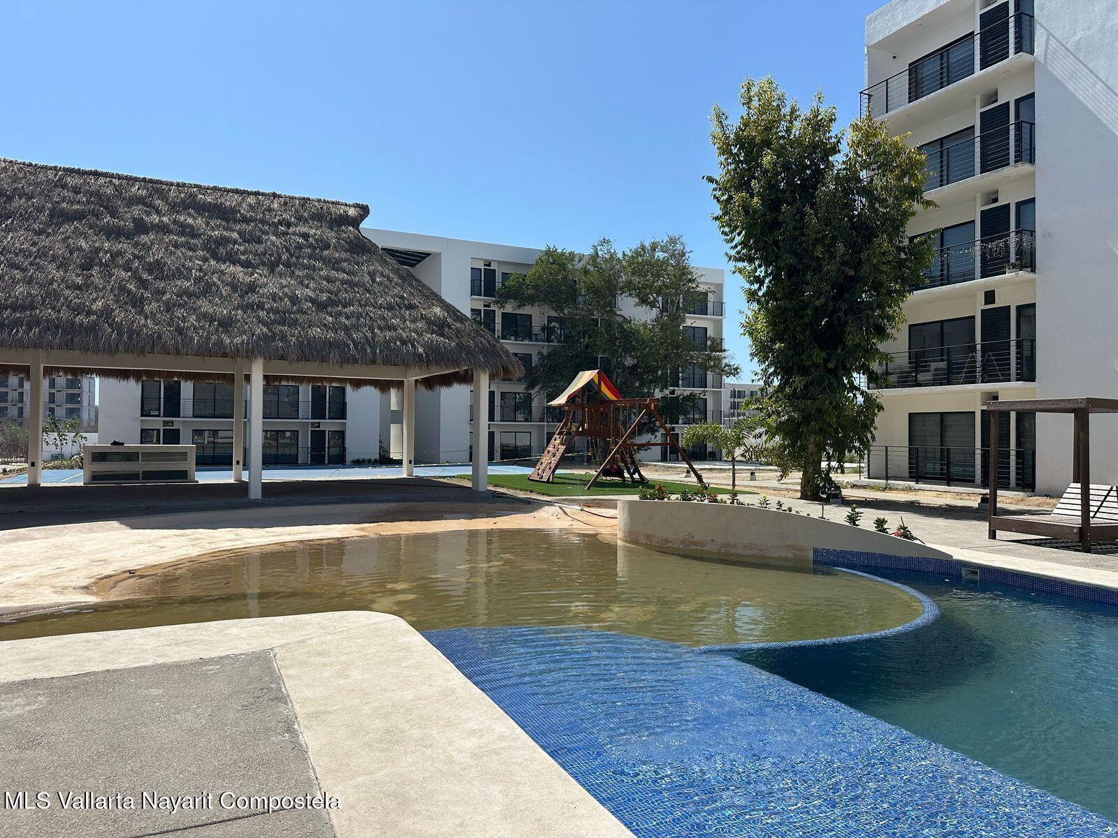 Departamento planta baja en !Aldea Hortus!Ubicado a 400mts de la carretera 200, principal via de movilidad en la zona, acceso a 15 minutos en automovil de las playas de bucerias o nuevo Vallarta en el FIBBA. Cerca de centros comerciales, restaurantes, bancos entre otros.Departamento cuenta con:2 recamaras + estudioCocina Sala - comedor Area de servicioTerraza privadaAmenidades:ElevadorAlberca semi - olimpicaCancha de tennisCanchas multiusosTerraza con palapa Banos y vestidores Area para ninos Doble caseta de seguridad con vigilancia 24/7